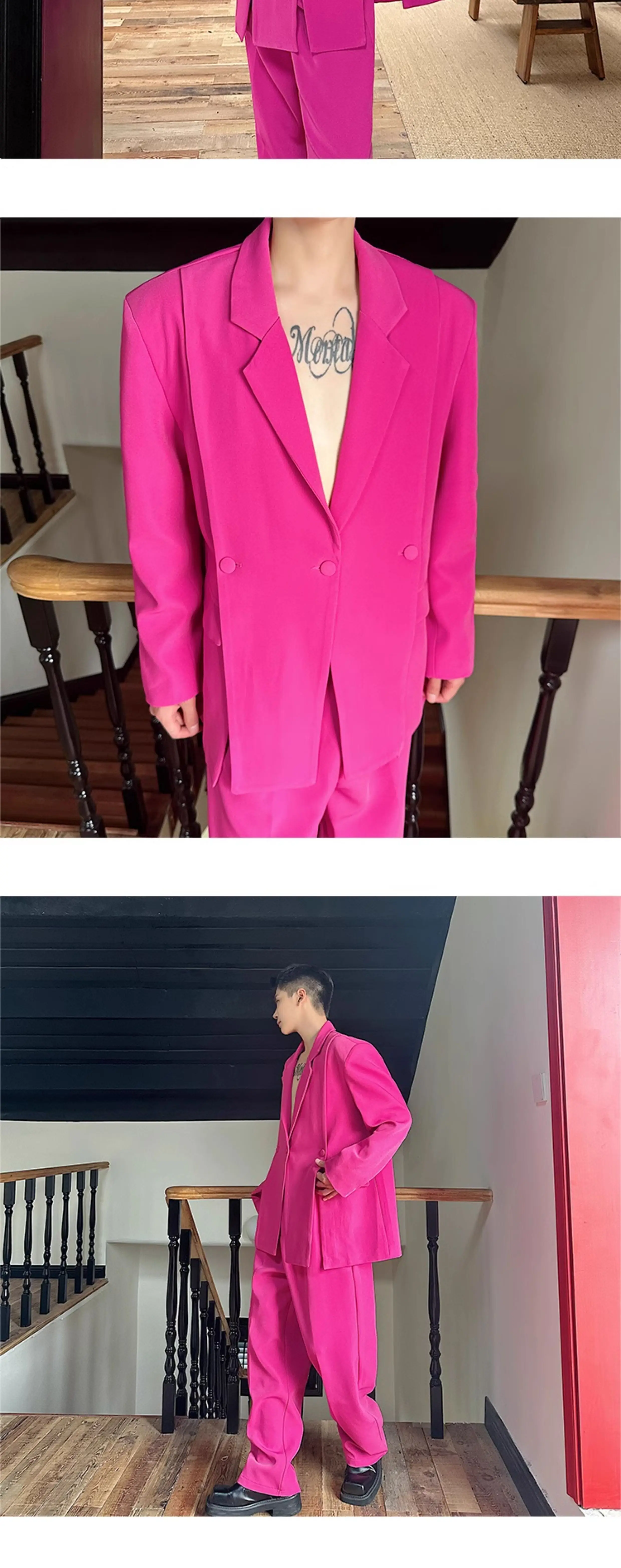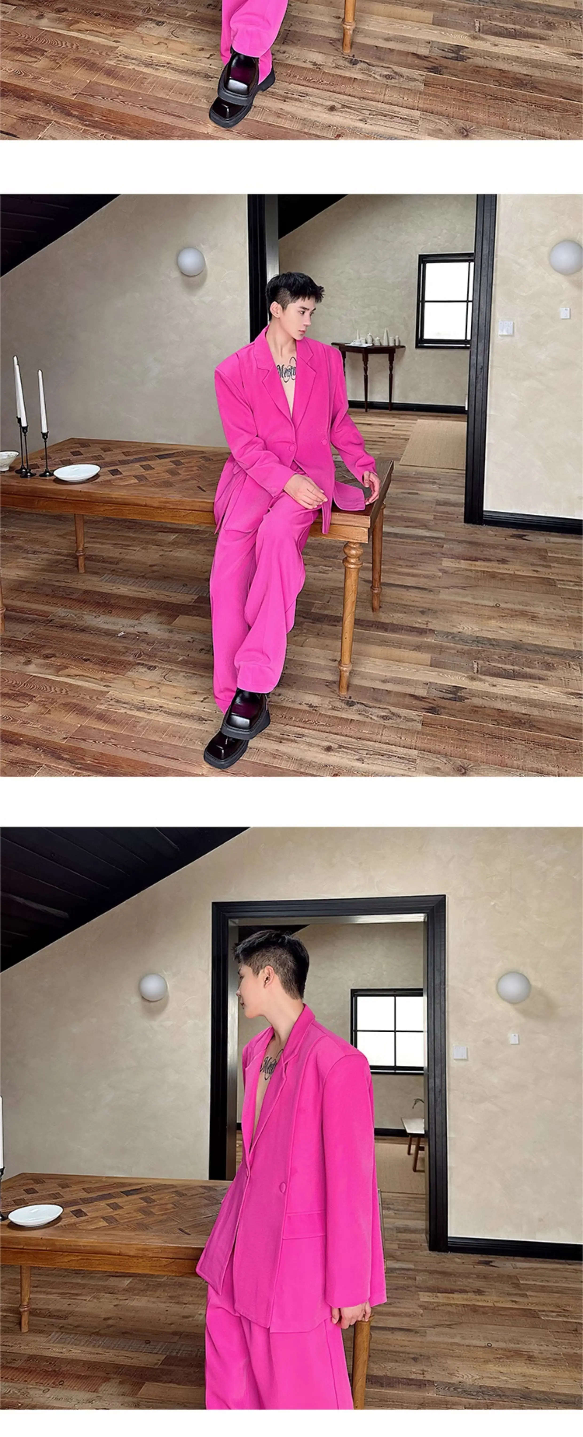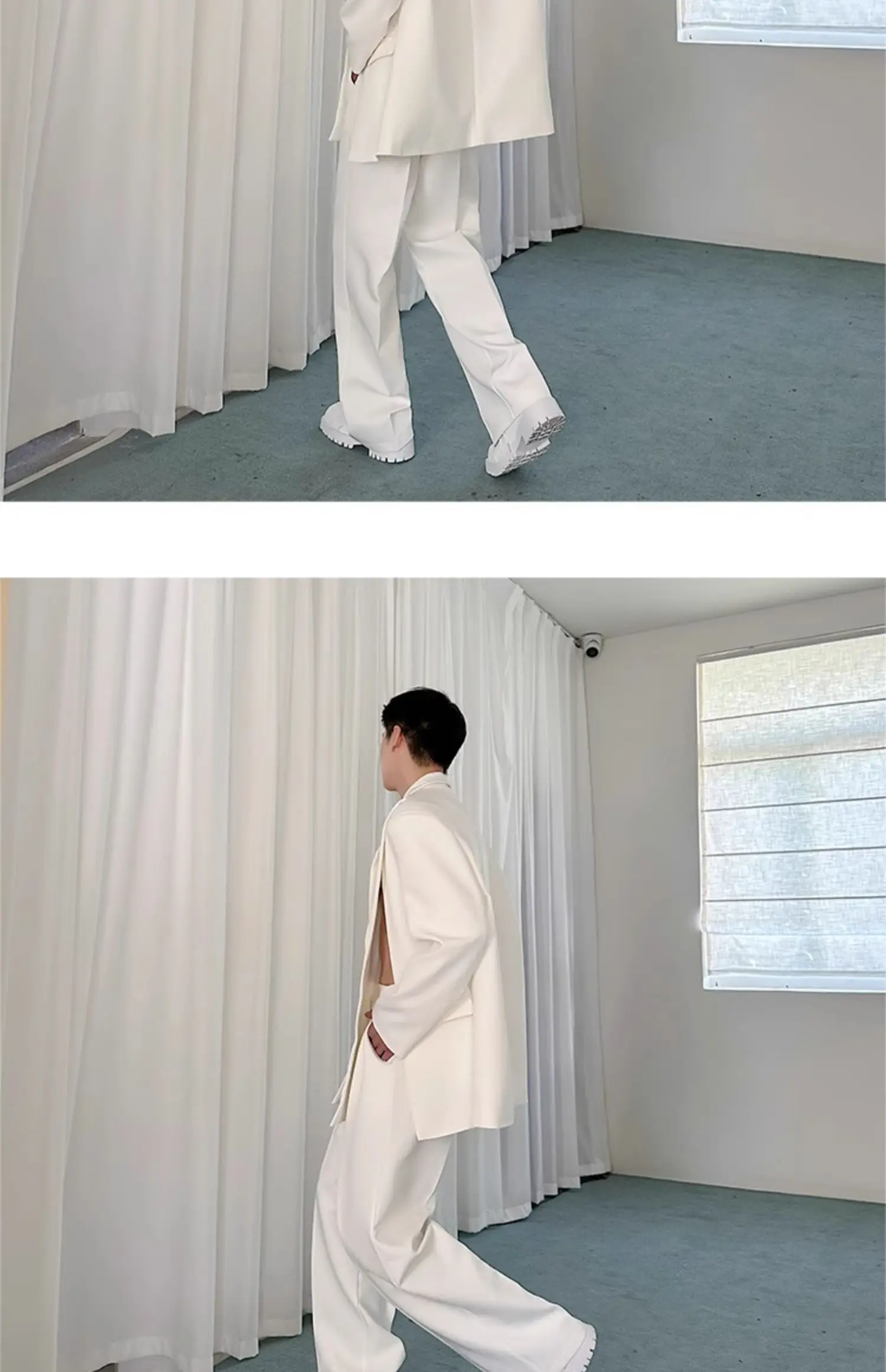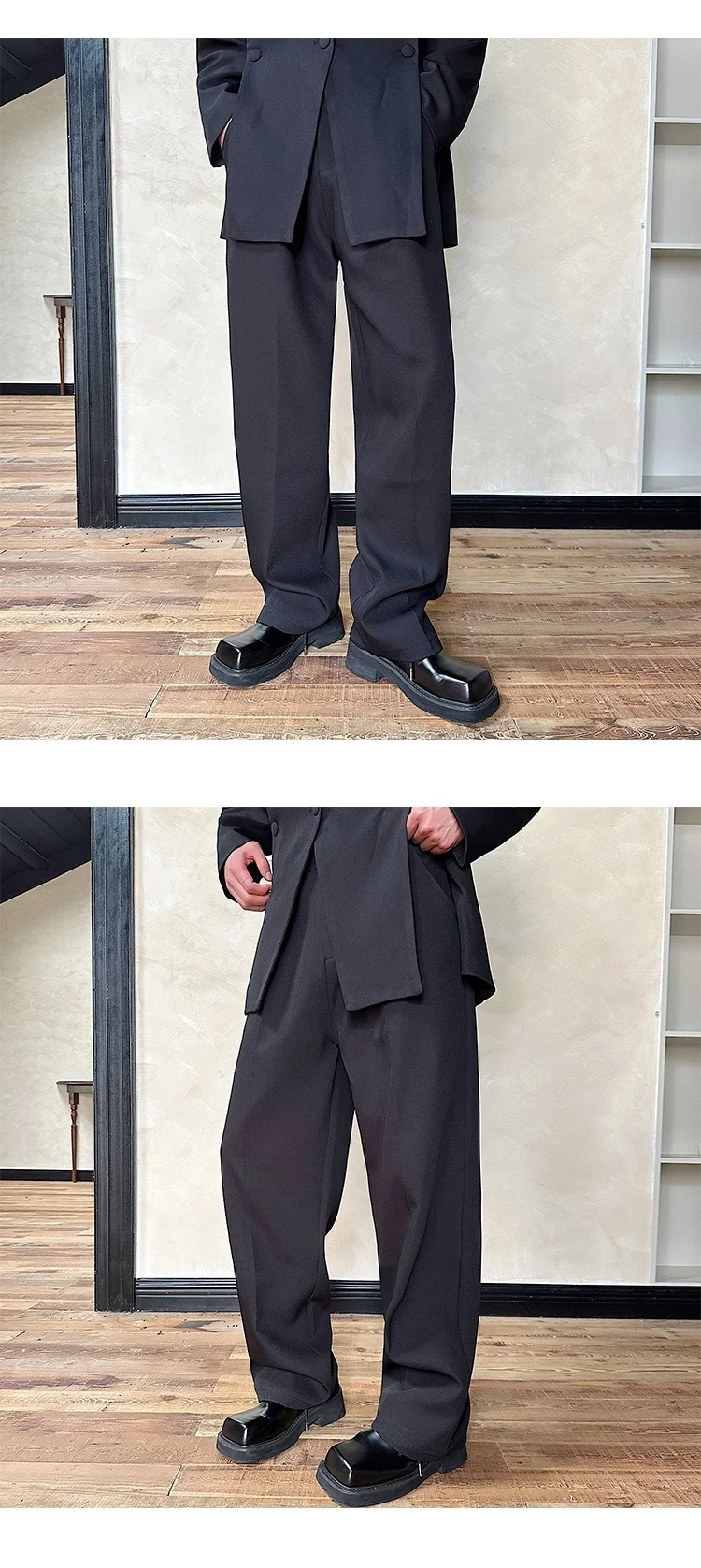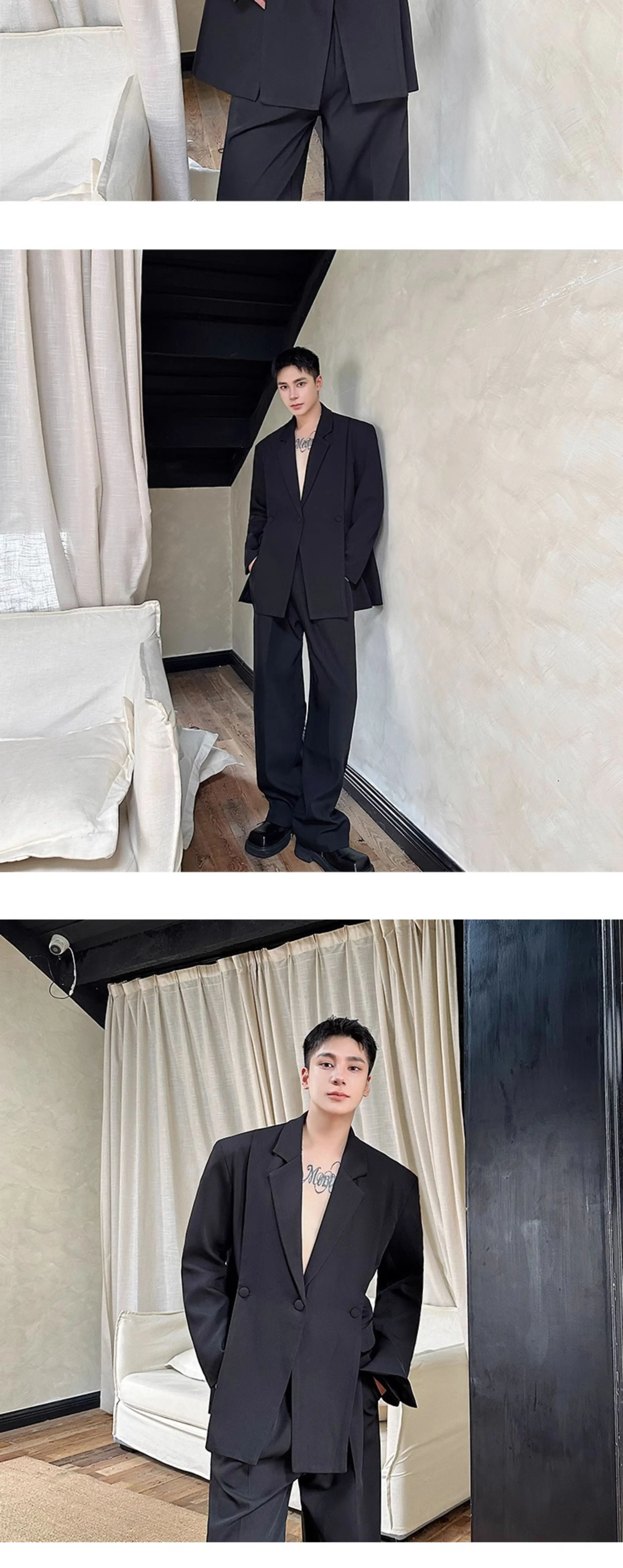 Korean Style Casual Male Two-Piece Set Slit Triple Breasted Solid Color Blazer Straight Leg Men's Pants Personalized 9C7239