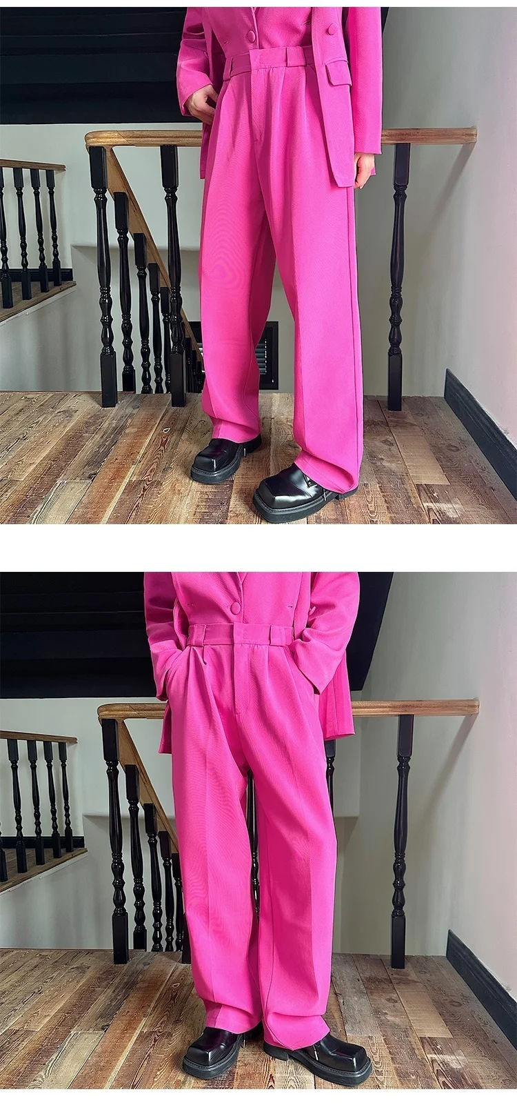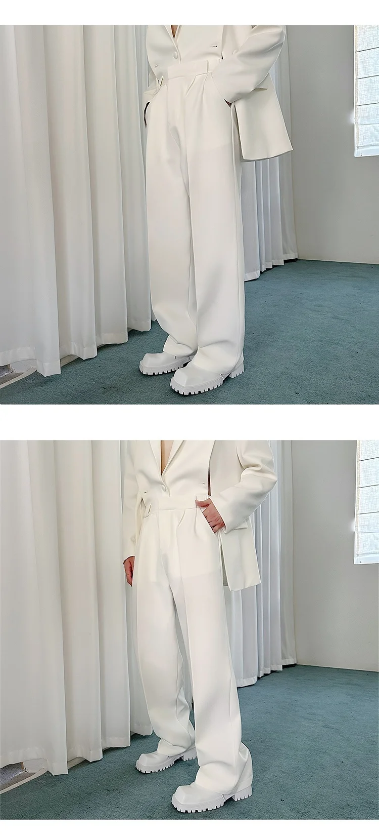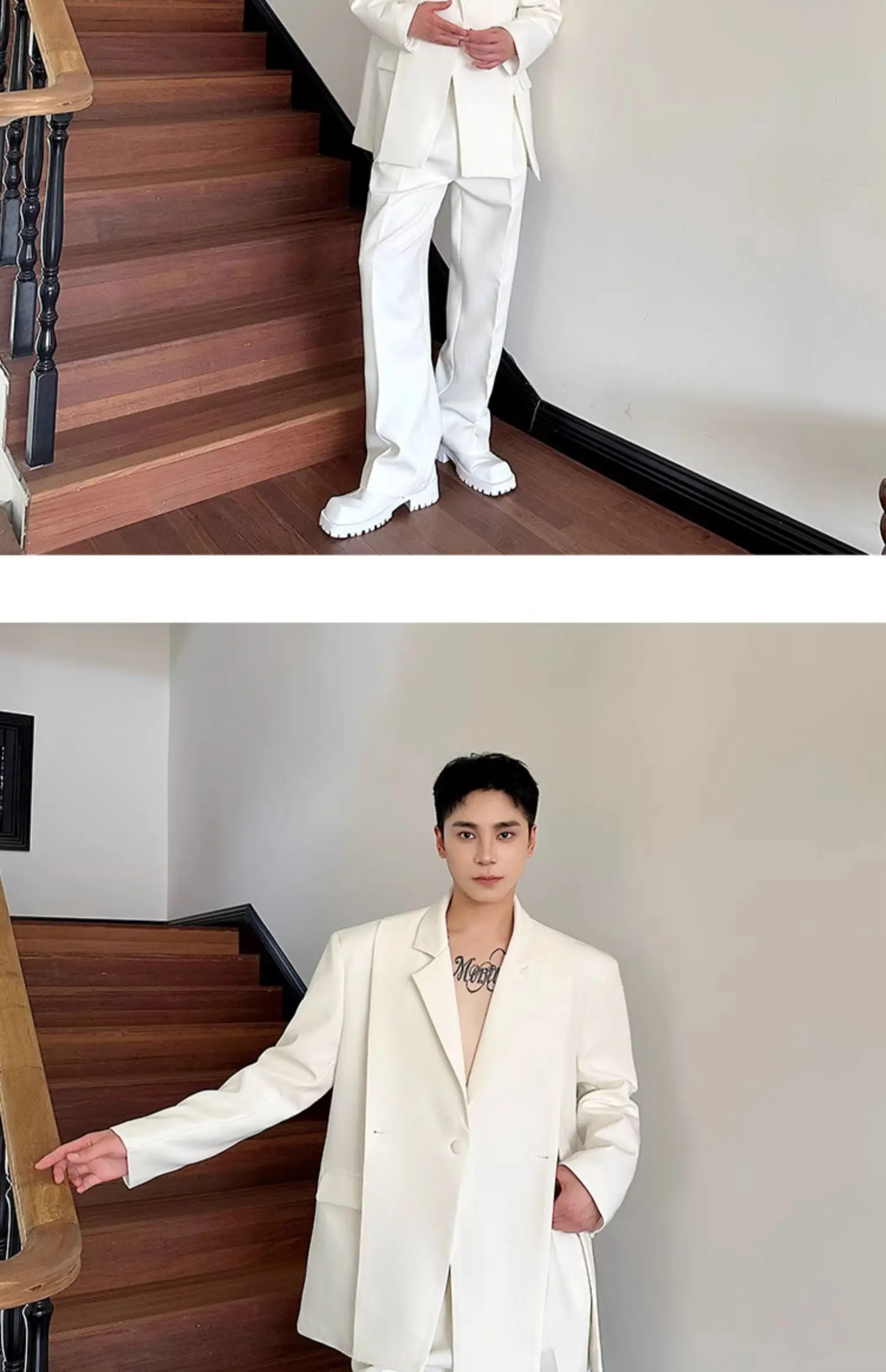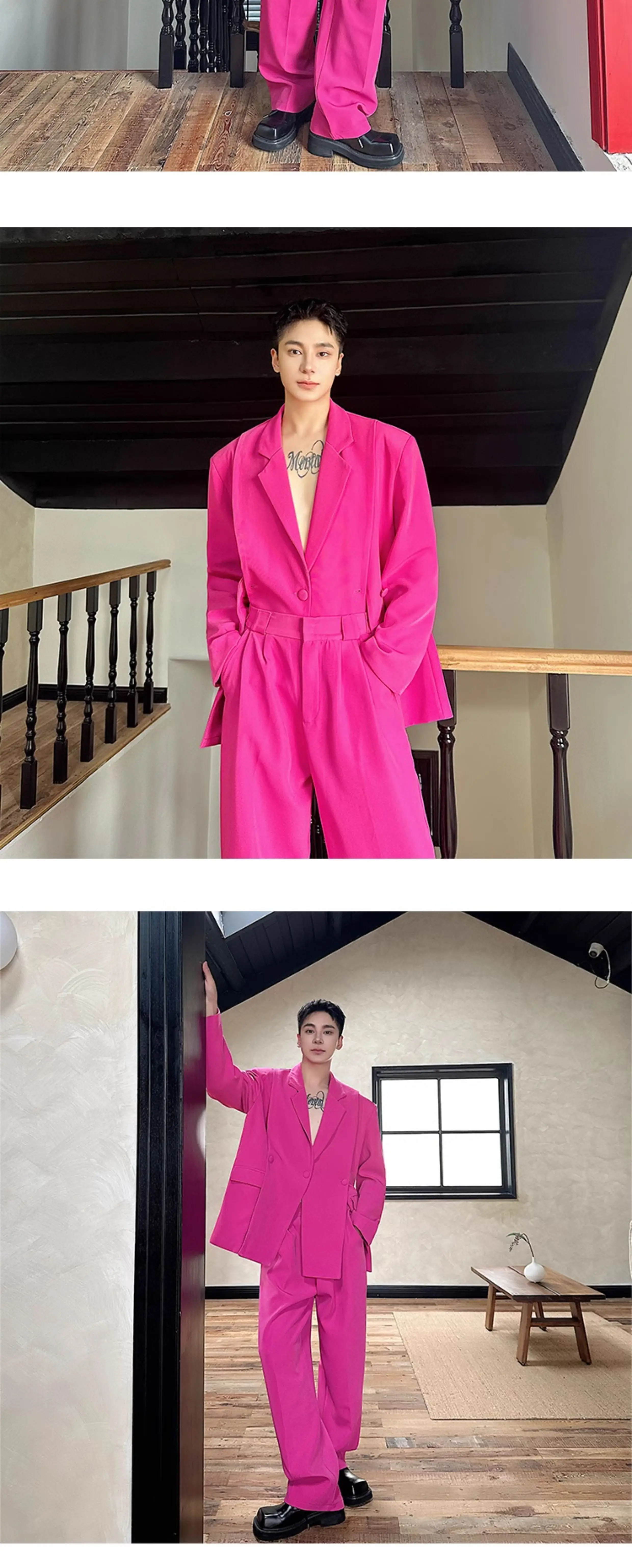 Korean Style Casual Male Two-Piece Set Slit Triple Breasted Solid Color Blazer Straight Leg Men's Pants Personalized 9C7239