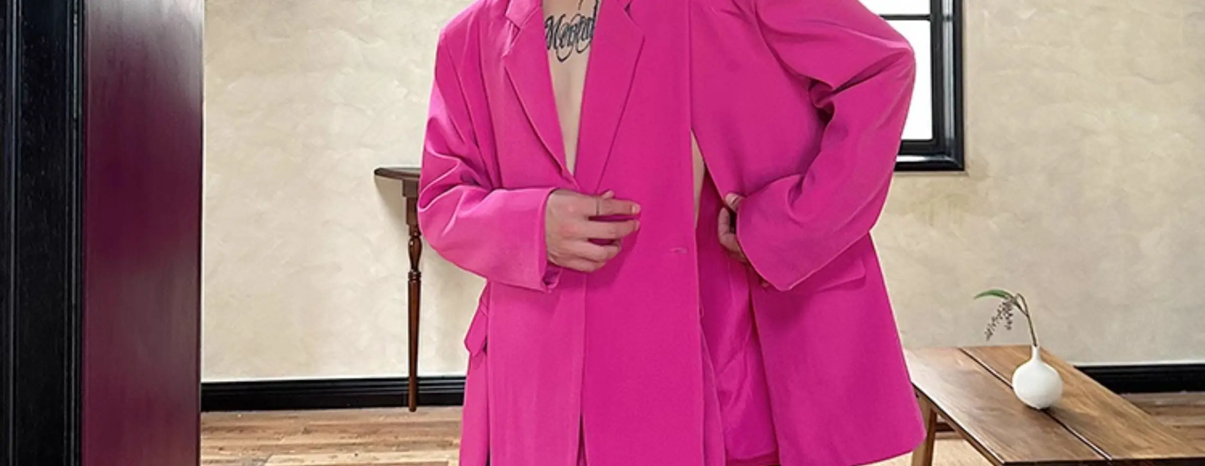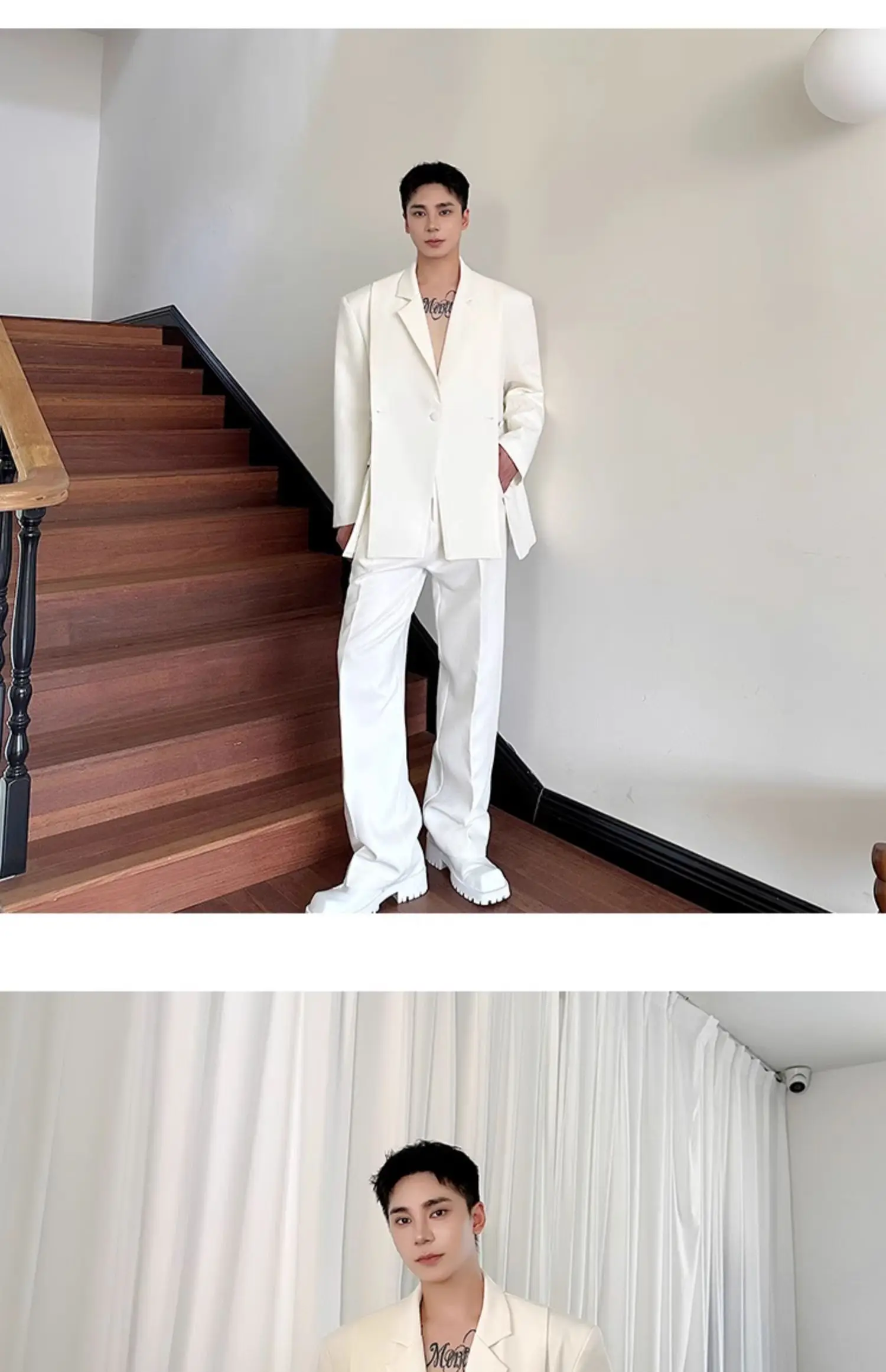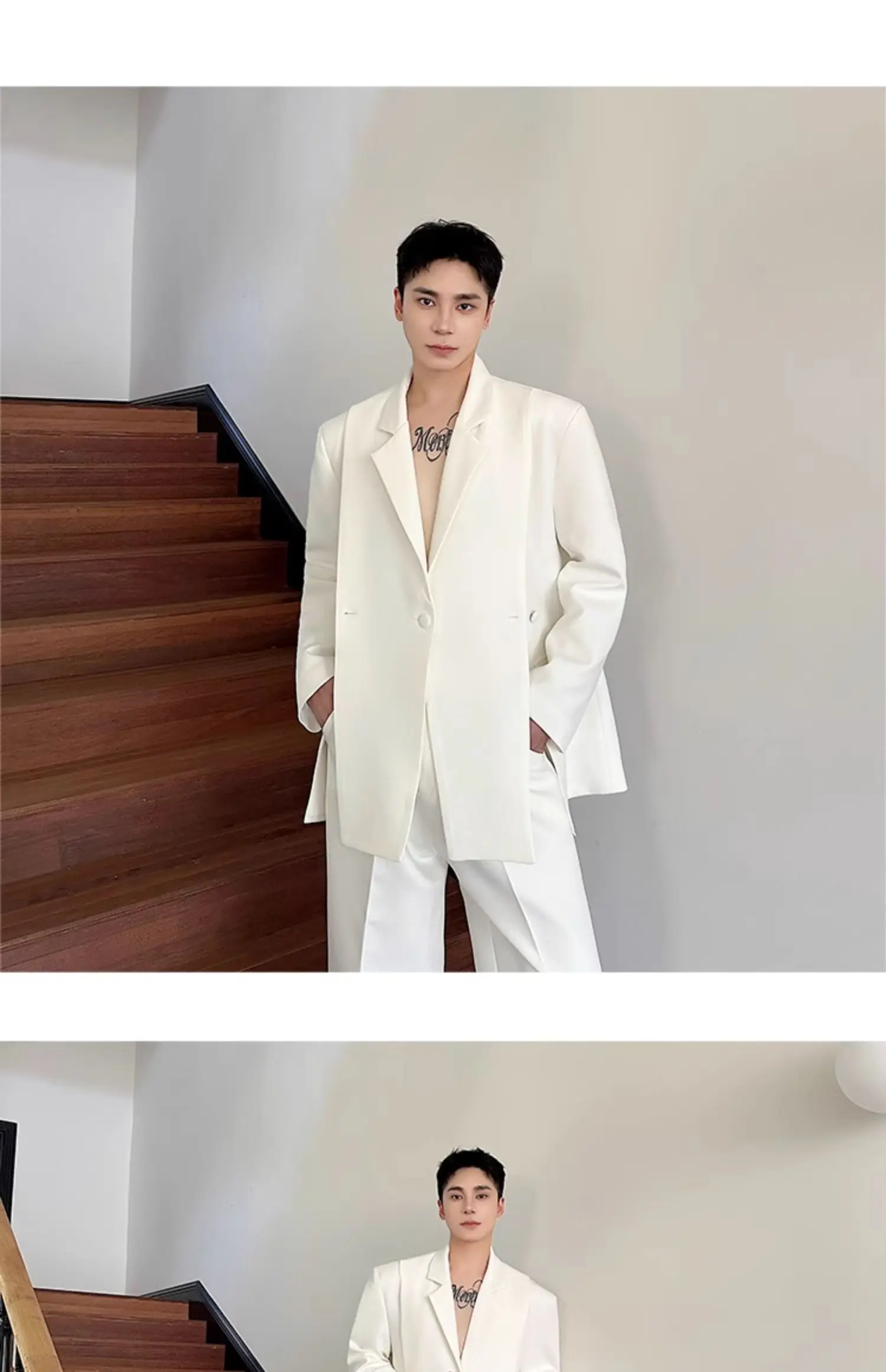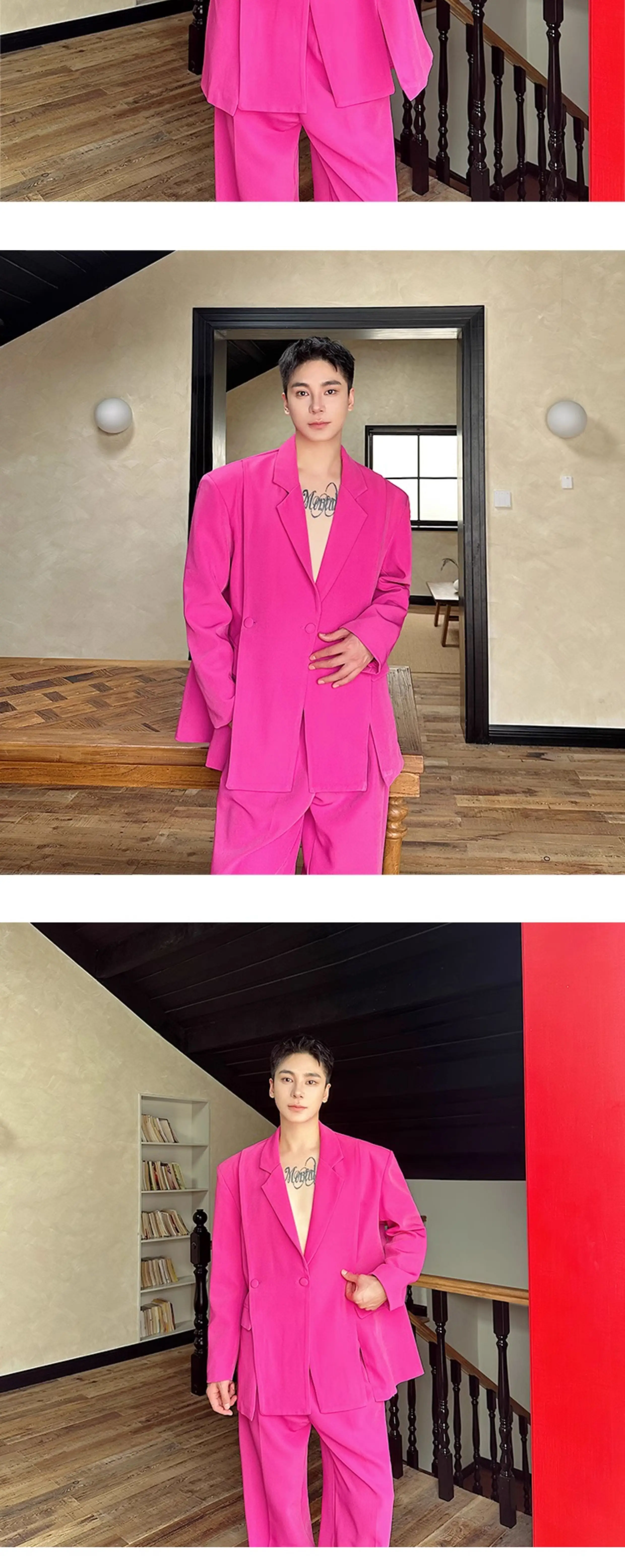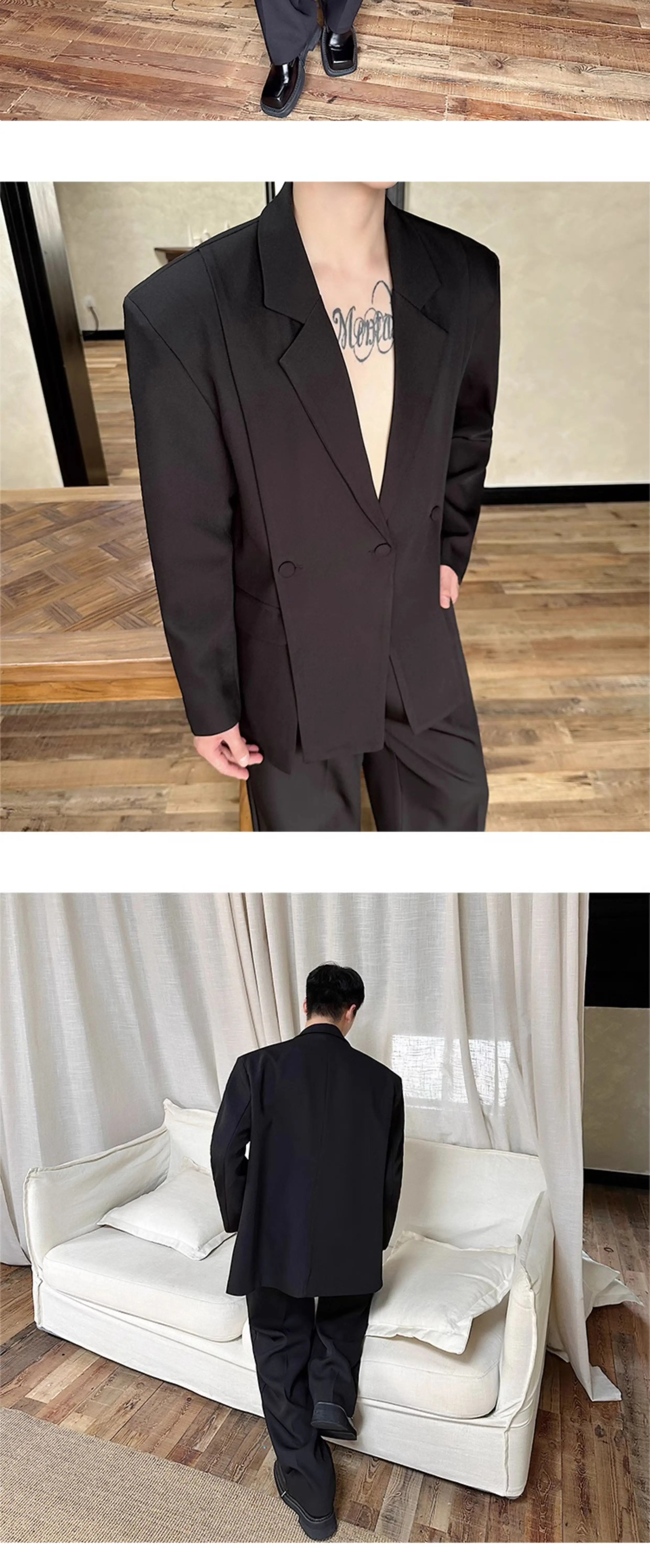 Korean Style Casual Male Two-Piece Set Slit Triple Breasted Solid Color Blazer Straight Leg Men's Pants Personalized 9C7239