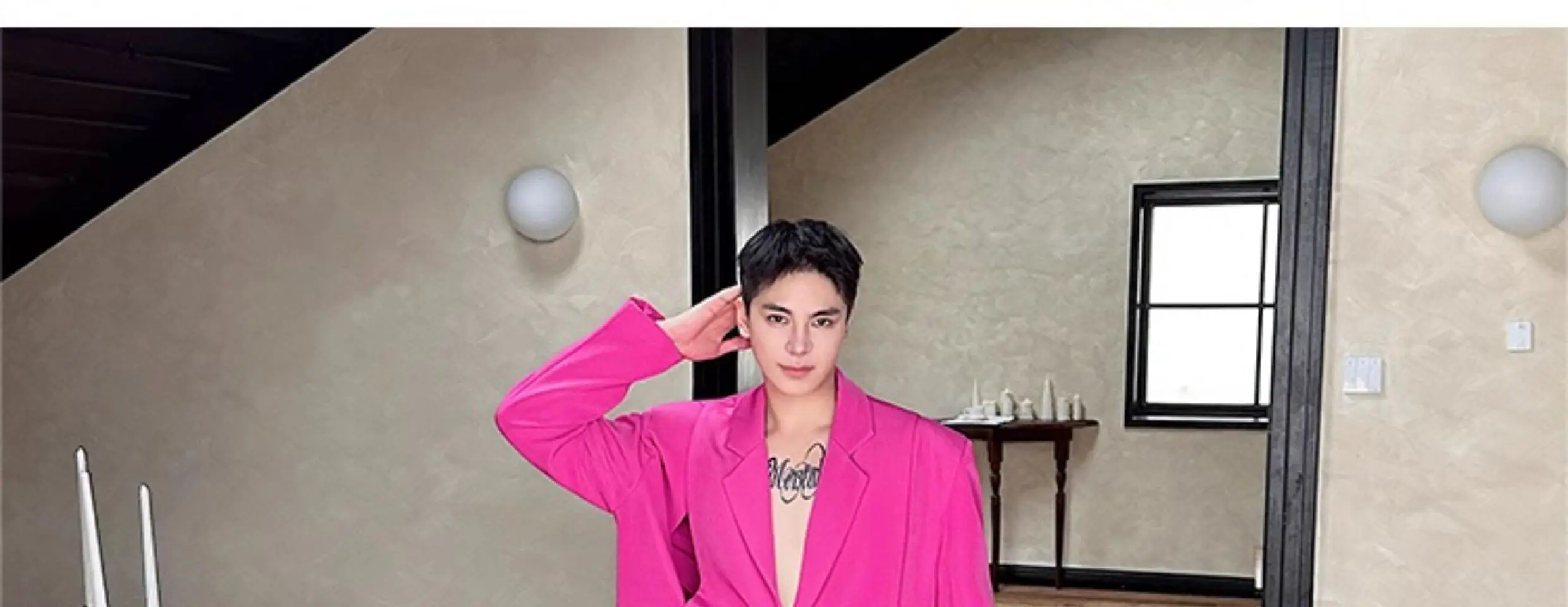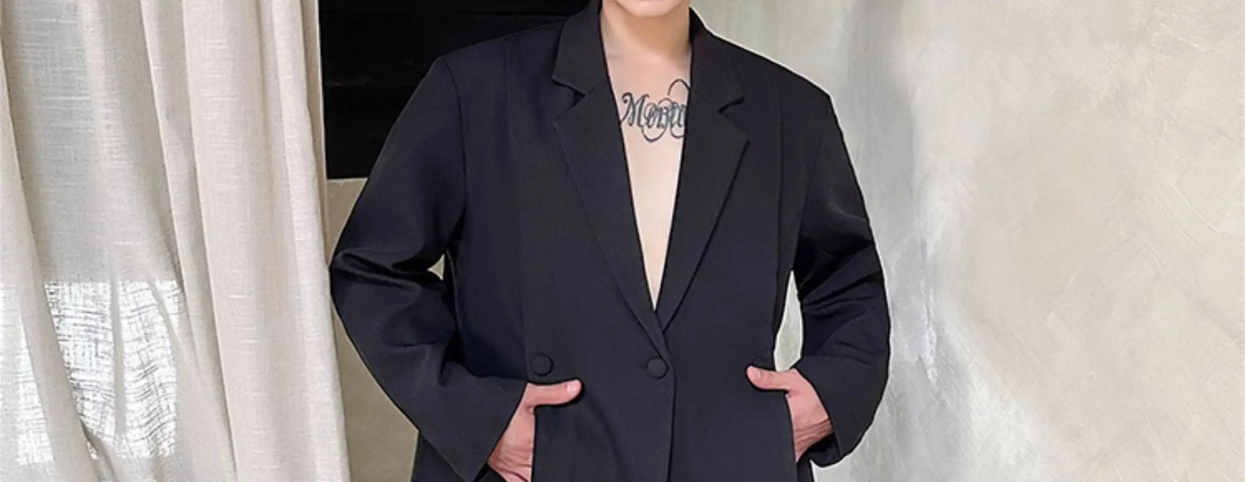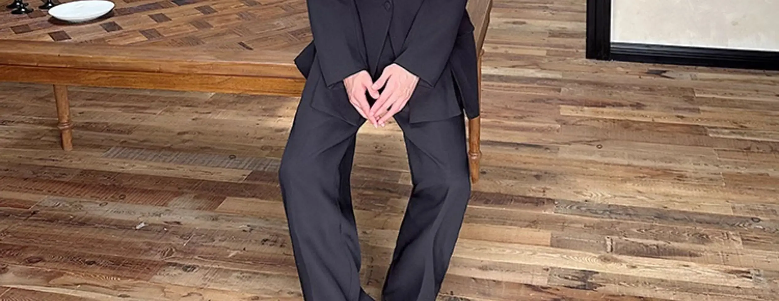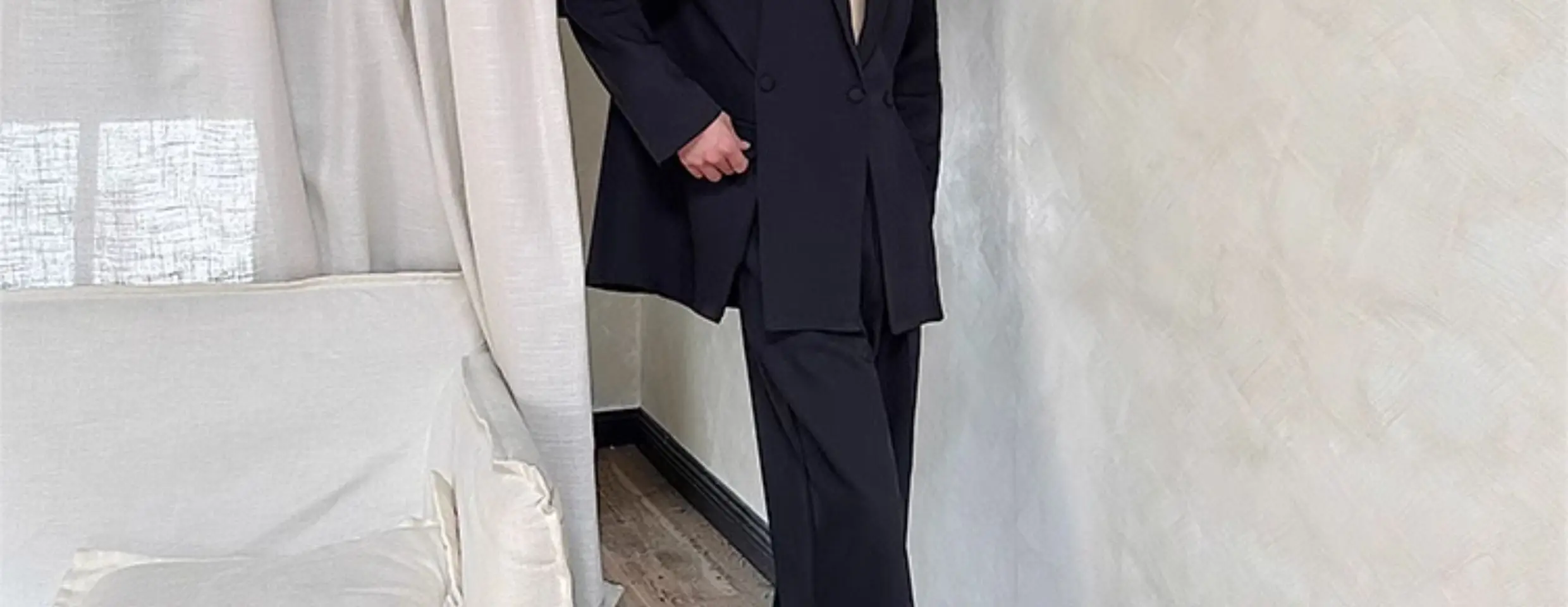 Korean Style Casual Male Two-Piece Set Slit Triple Breasted Solid Color Blazer Straight Leg Men's Pants Personalized 9C7239