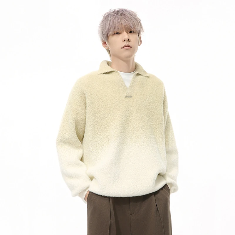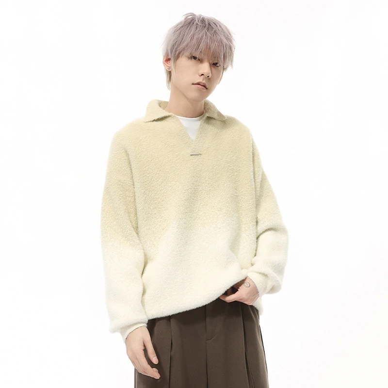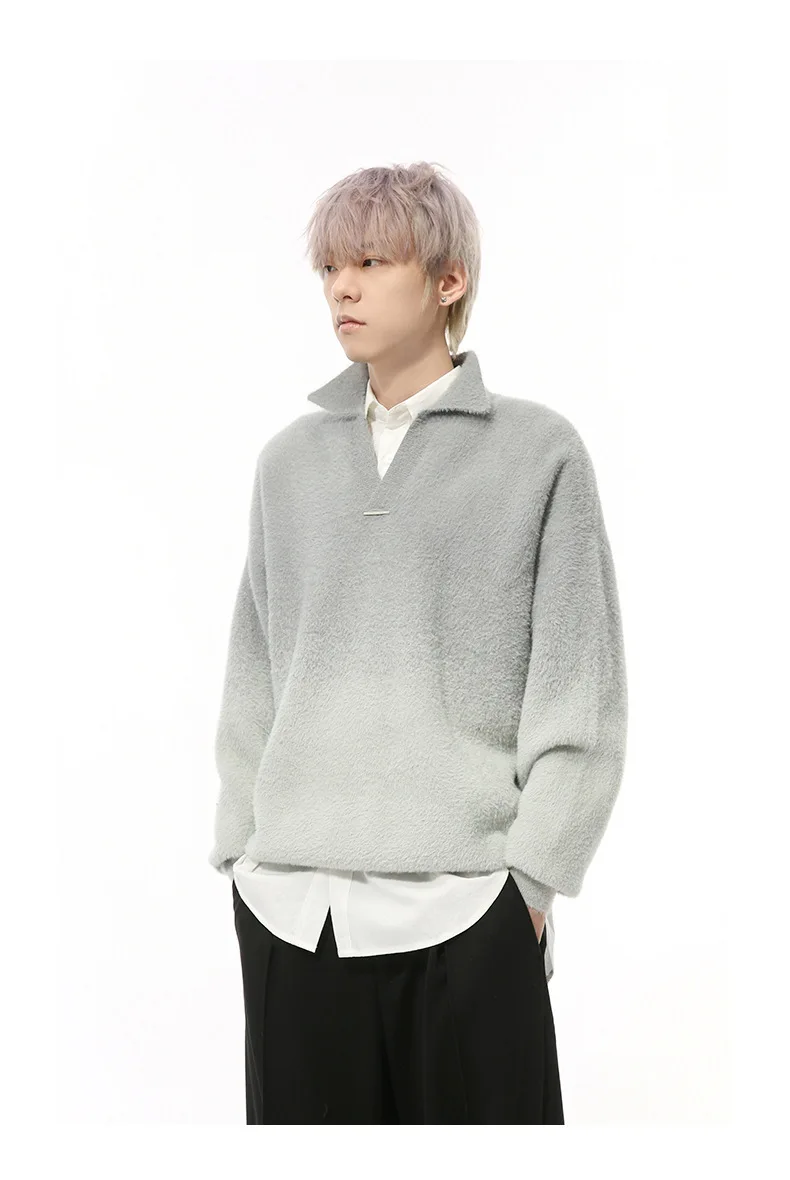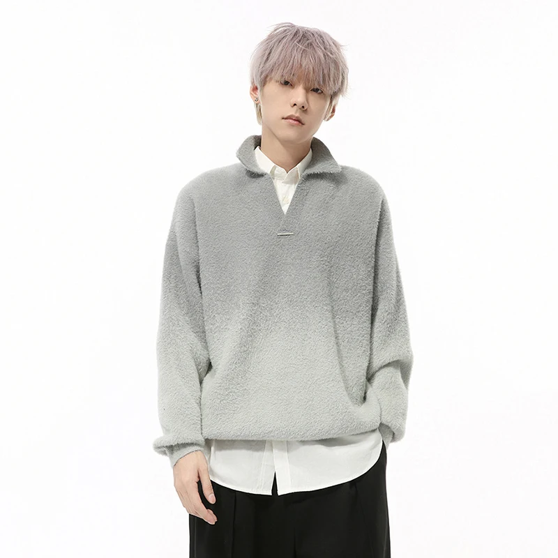 Korean Style Men Sweaters Turn-down Collar Gradient Color Casual Tops Knitting Loose Pullover Male Knits New Autumn 9C9348