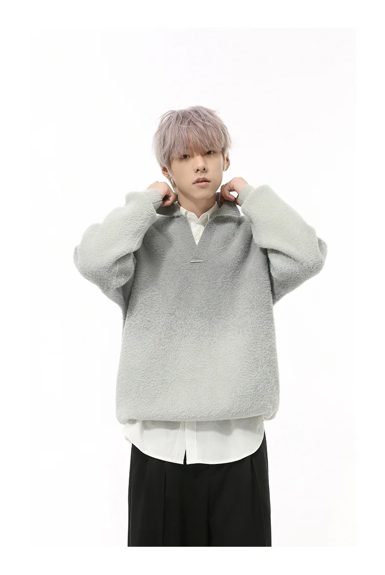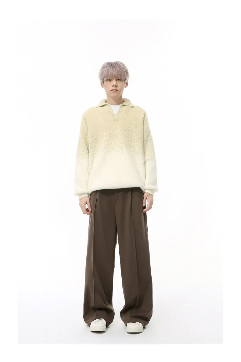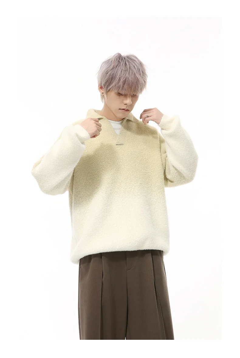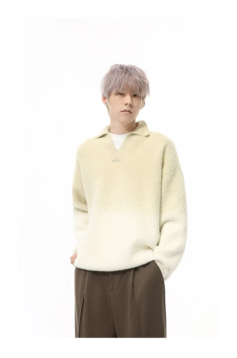 Korean Style Men Sweaters Turn-down Collar Gradient Color Casual Tops Knitting Loose Pullover Male Knits New Autumn 9C9348