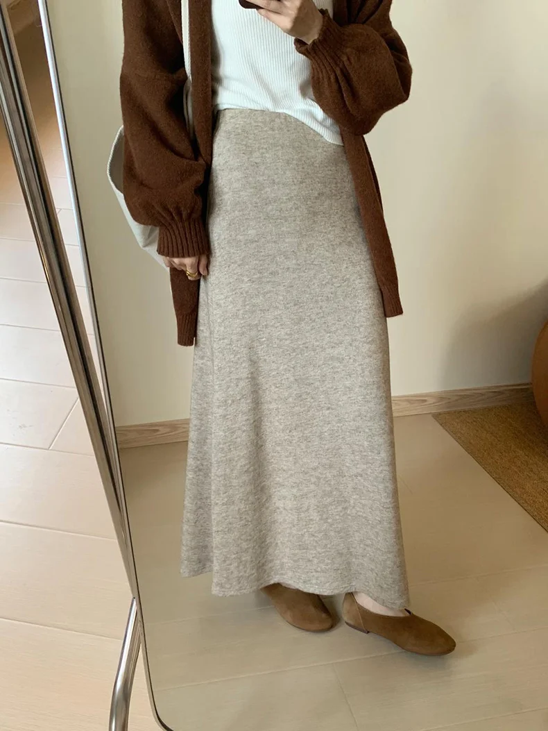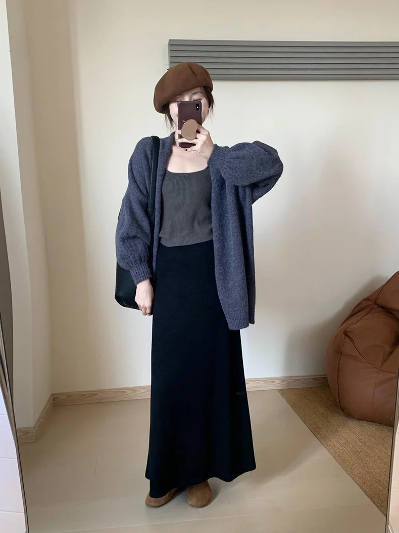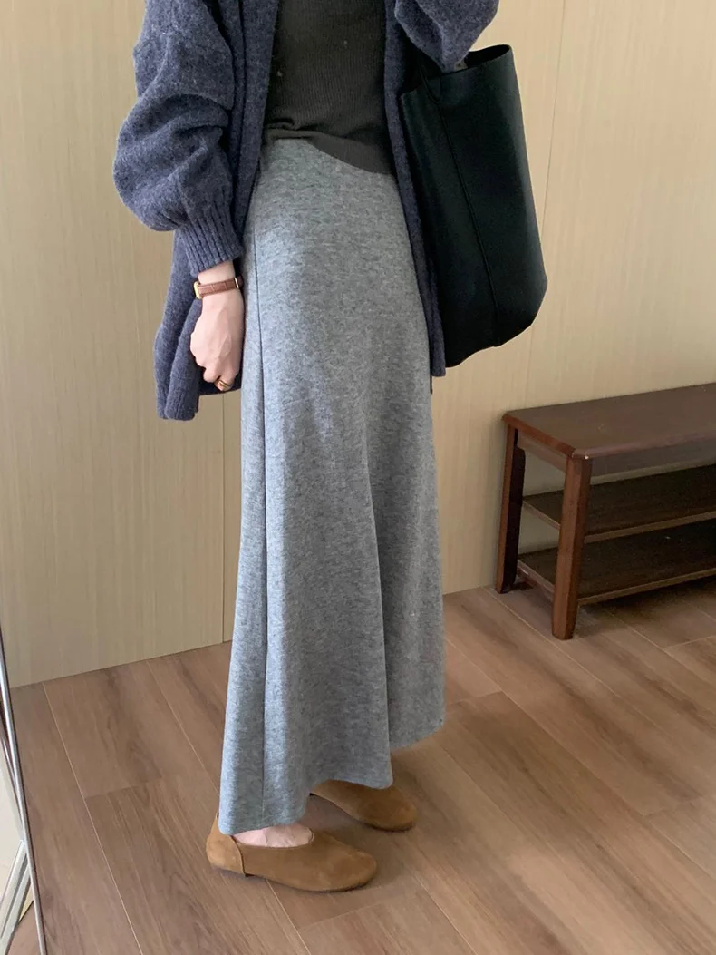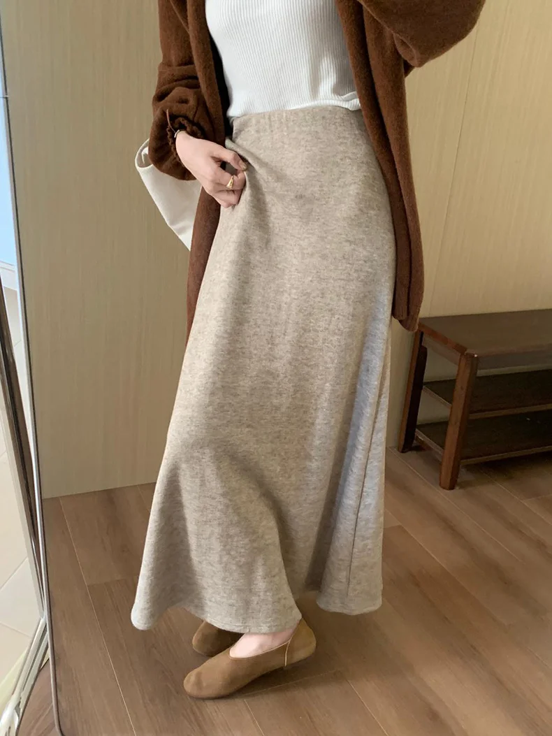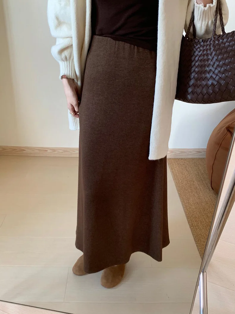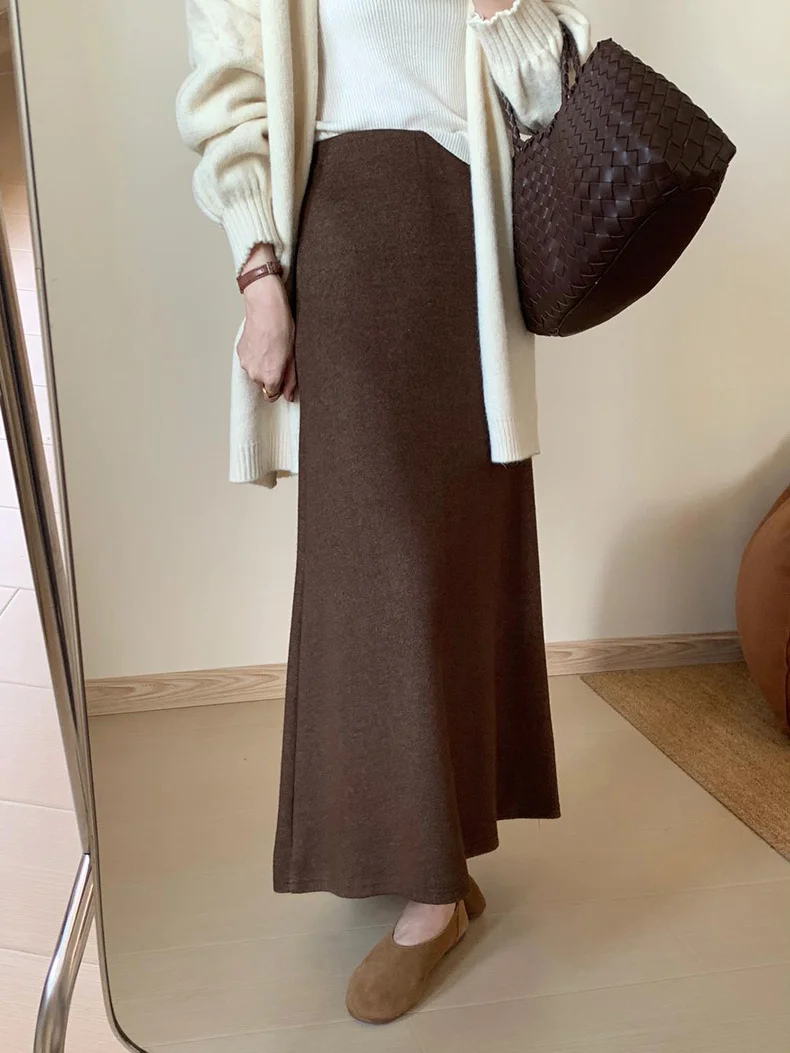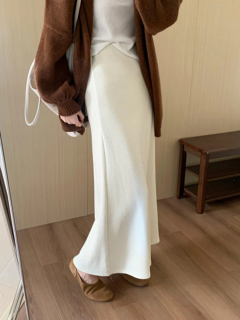 Korean Version 2024 Solid High Waist Versatile Slim Long Skirts For Women Autumn Office Elegant Festival Skirt Simplicity Street