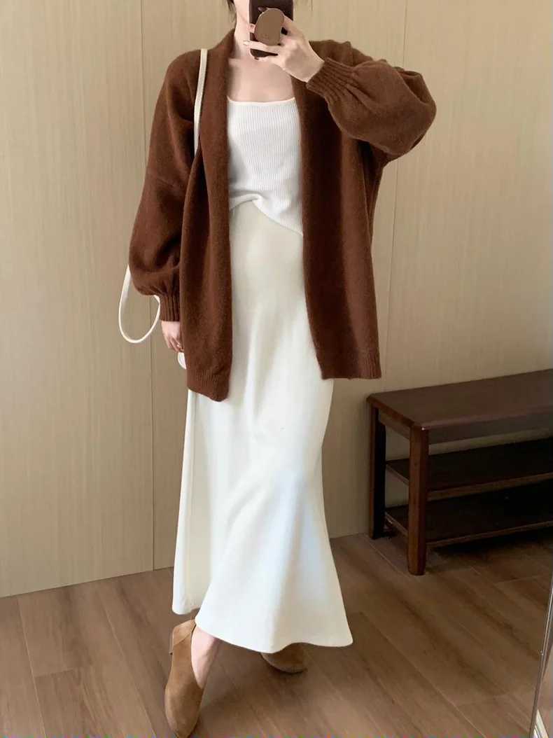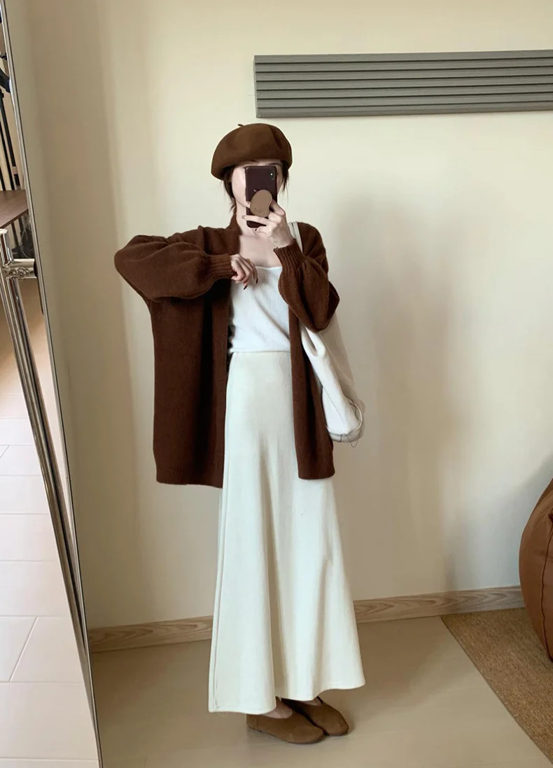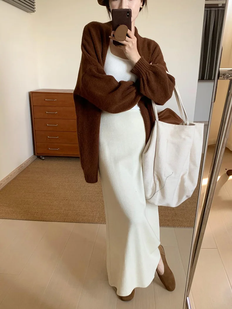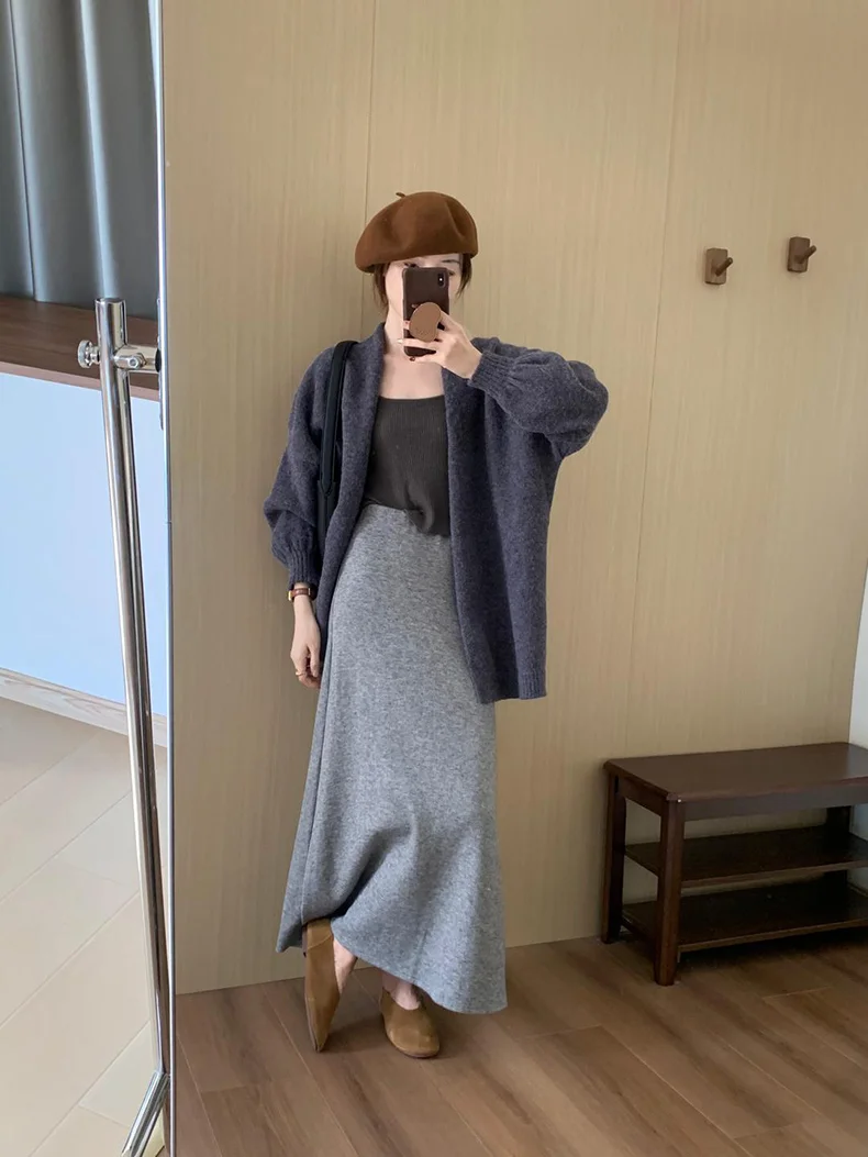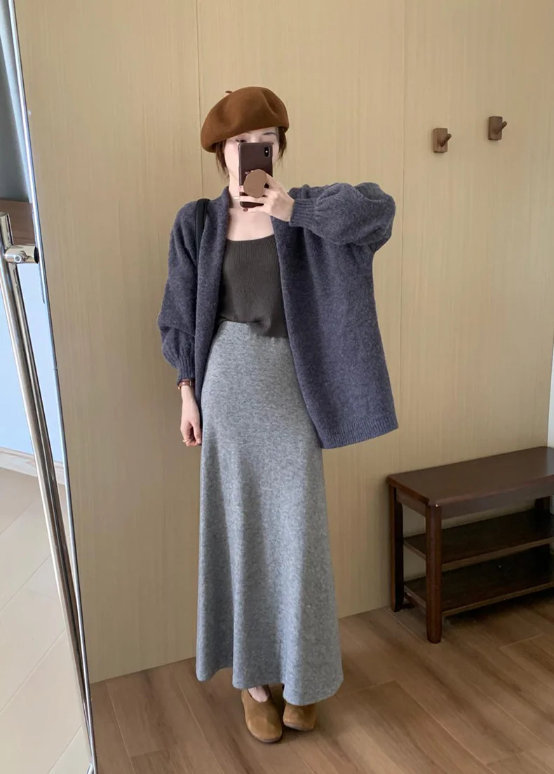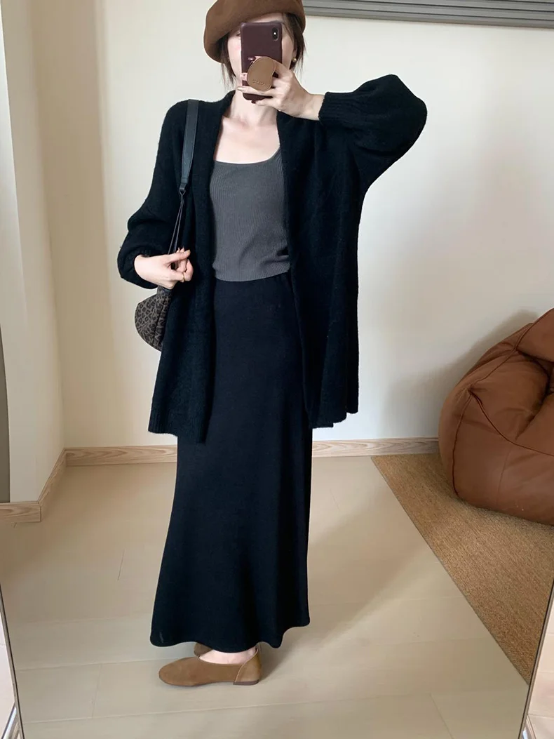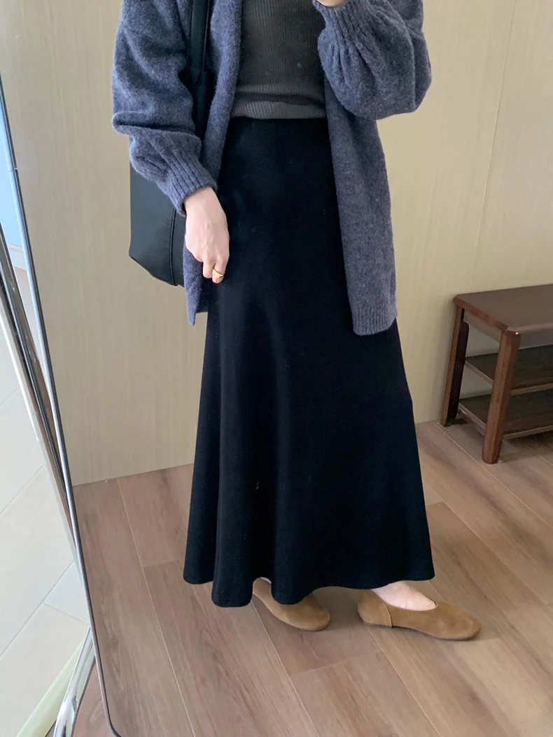 Korean Version 2024 Solid High Waist Versatile Slim Long Skirts For Women Autumn Office Elegant Festival Skirt Simplicity Street