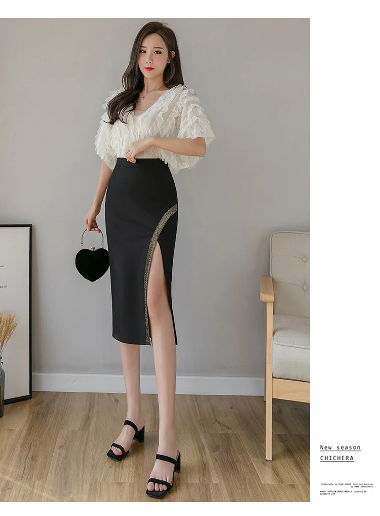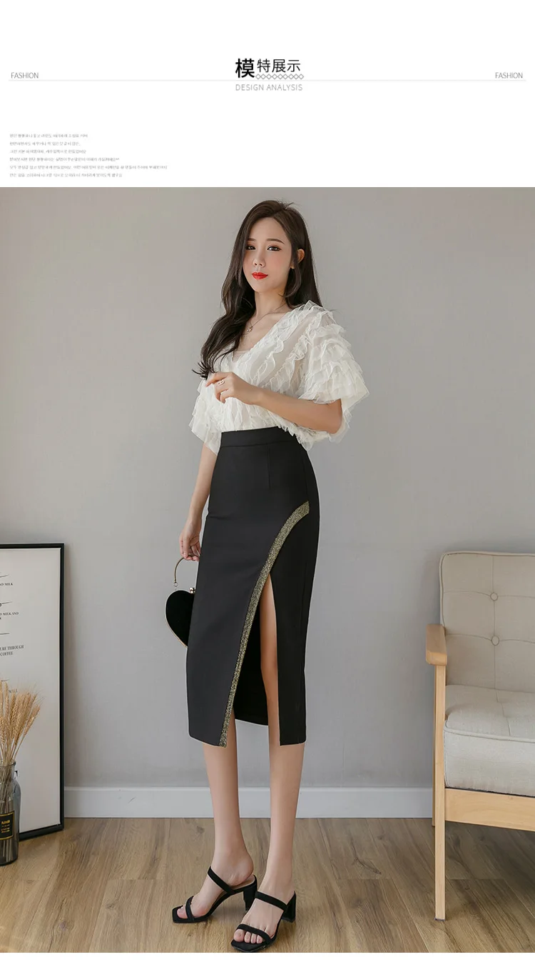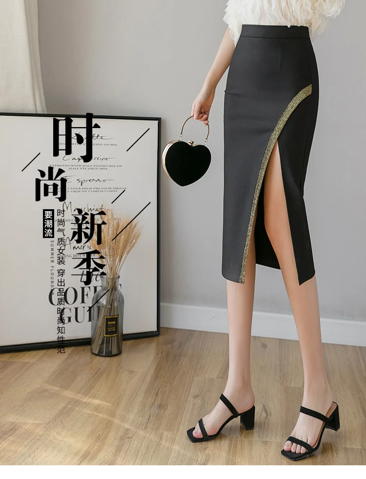 Korean Version Spring Summer Women Patchwork High Waist Midi Skirt Streetwear Popular Sexy Oversized Wrap Hip Split Skirt Trendy