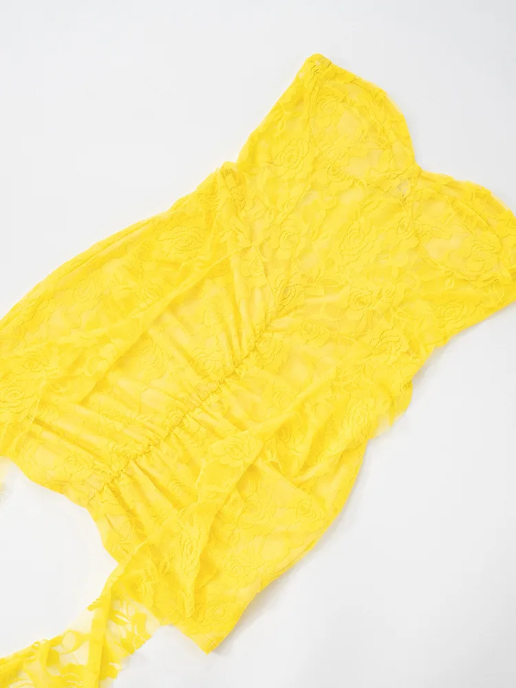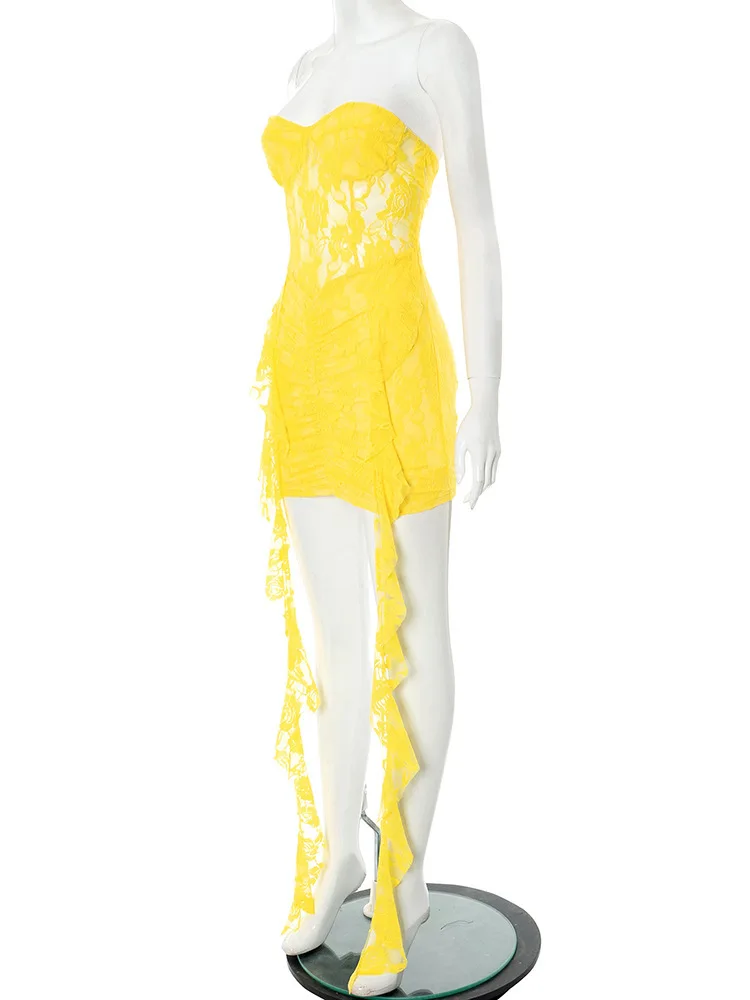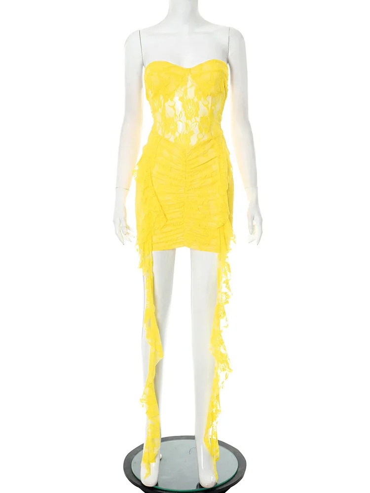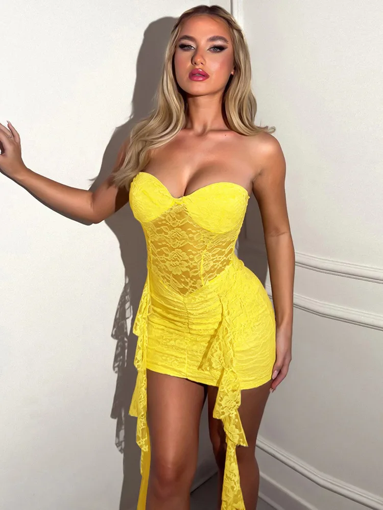 Lace Ruffle Sexy Mini Dress Women Summer New Off-shoulder Backless Sleeveless Draped Ruched Beach Club Long Dress