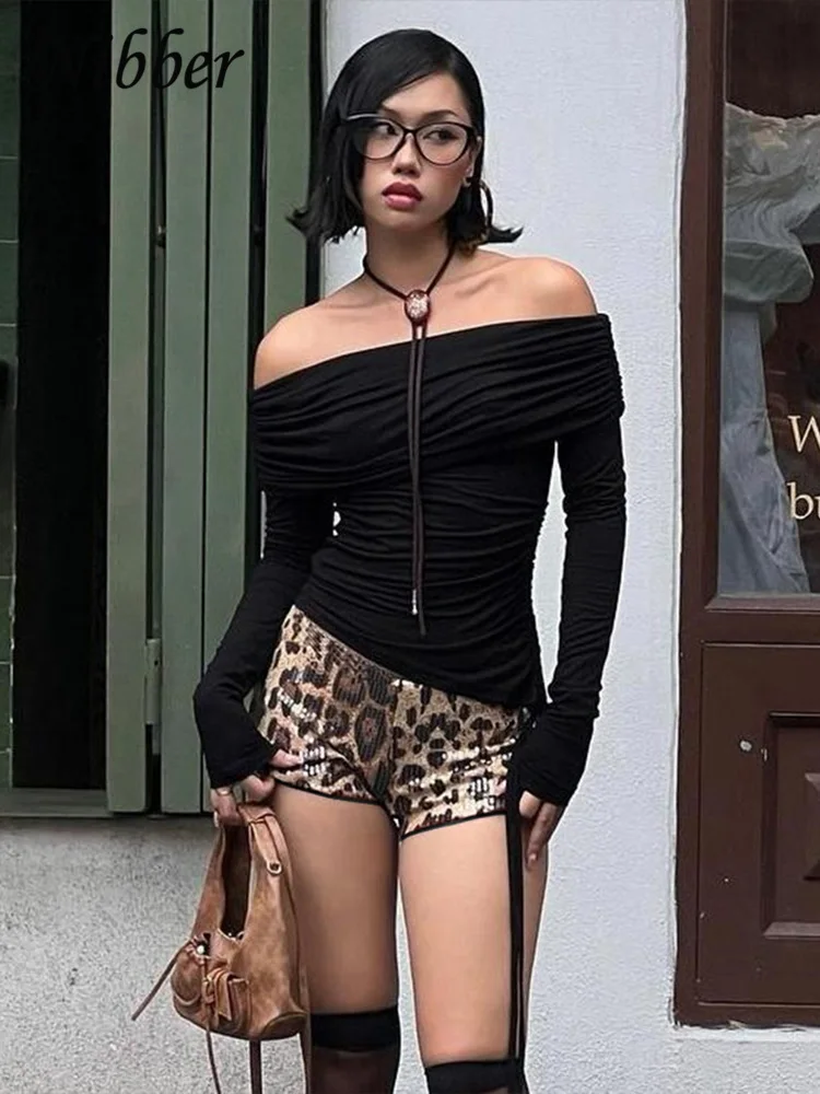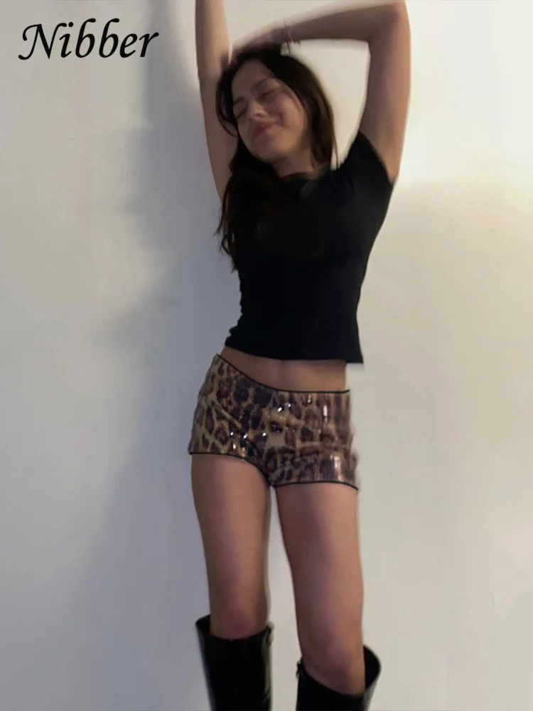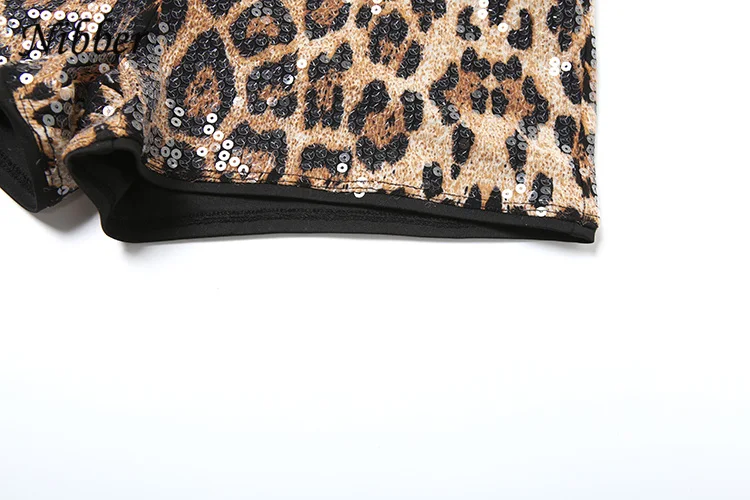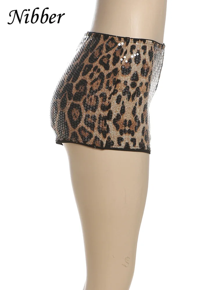Leopard Print Mini Hot Shorts Women Sequins Patchwork Wild Skinny Stretch Streetwear Autumn Midnight Sexy Trend Buttoms