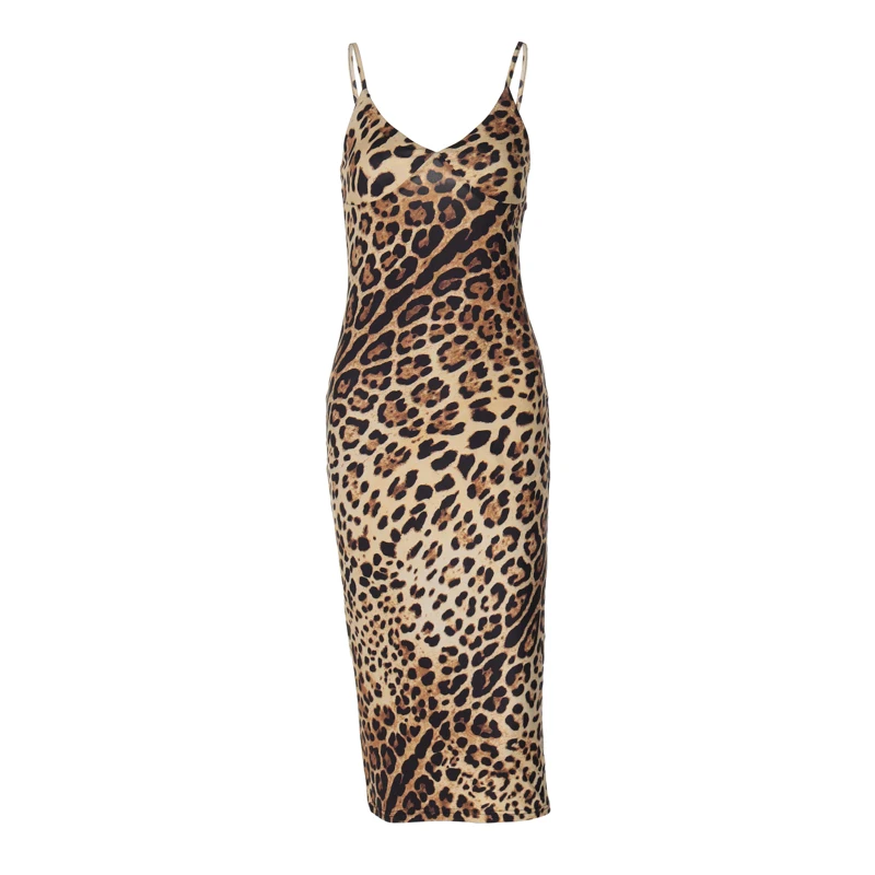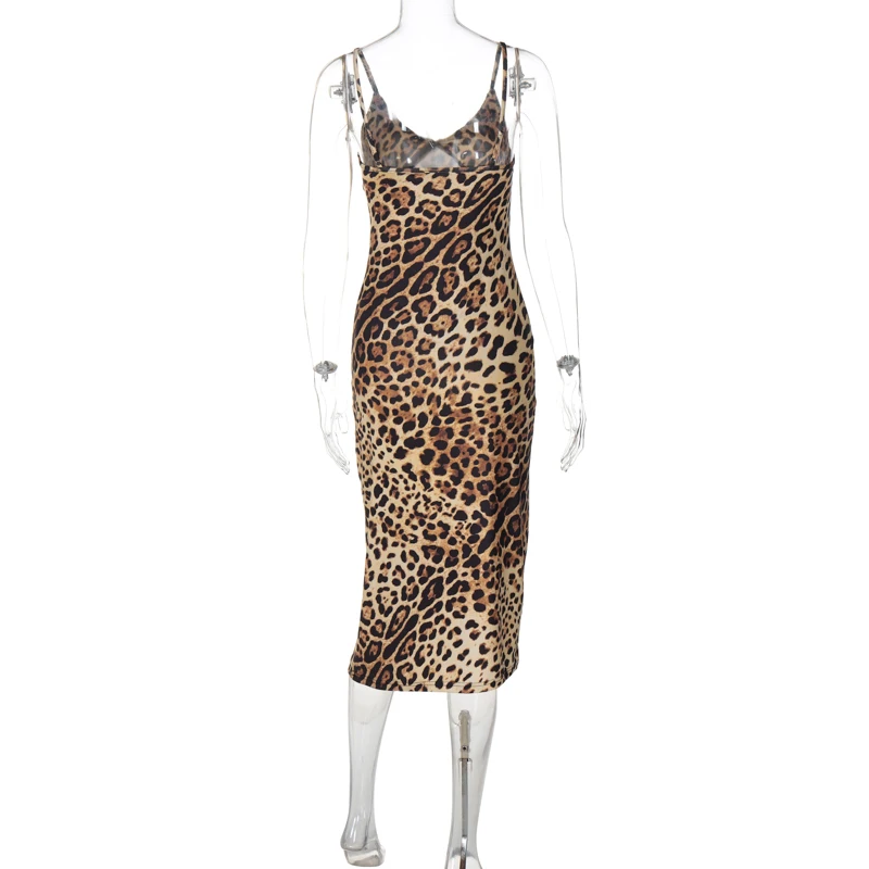 Leopard Print Slips Backless Sexy Bodycon Maxi Dress Summer Women Fashion Y2K Clothes Beach Festival Nightclub