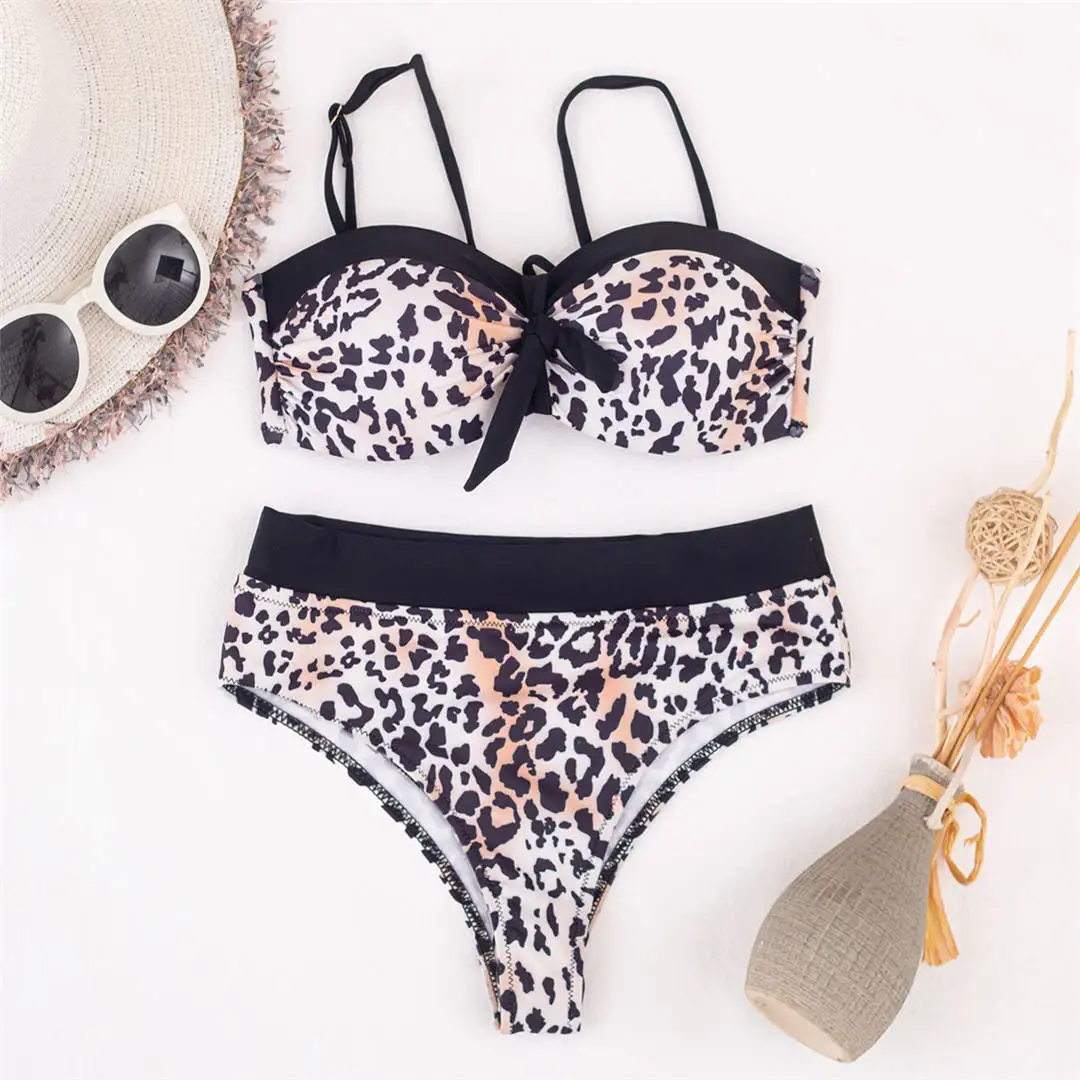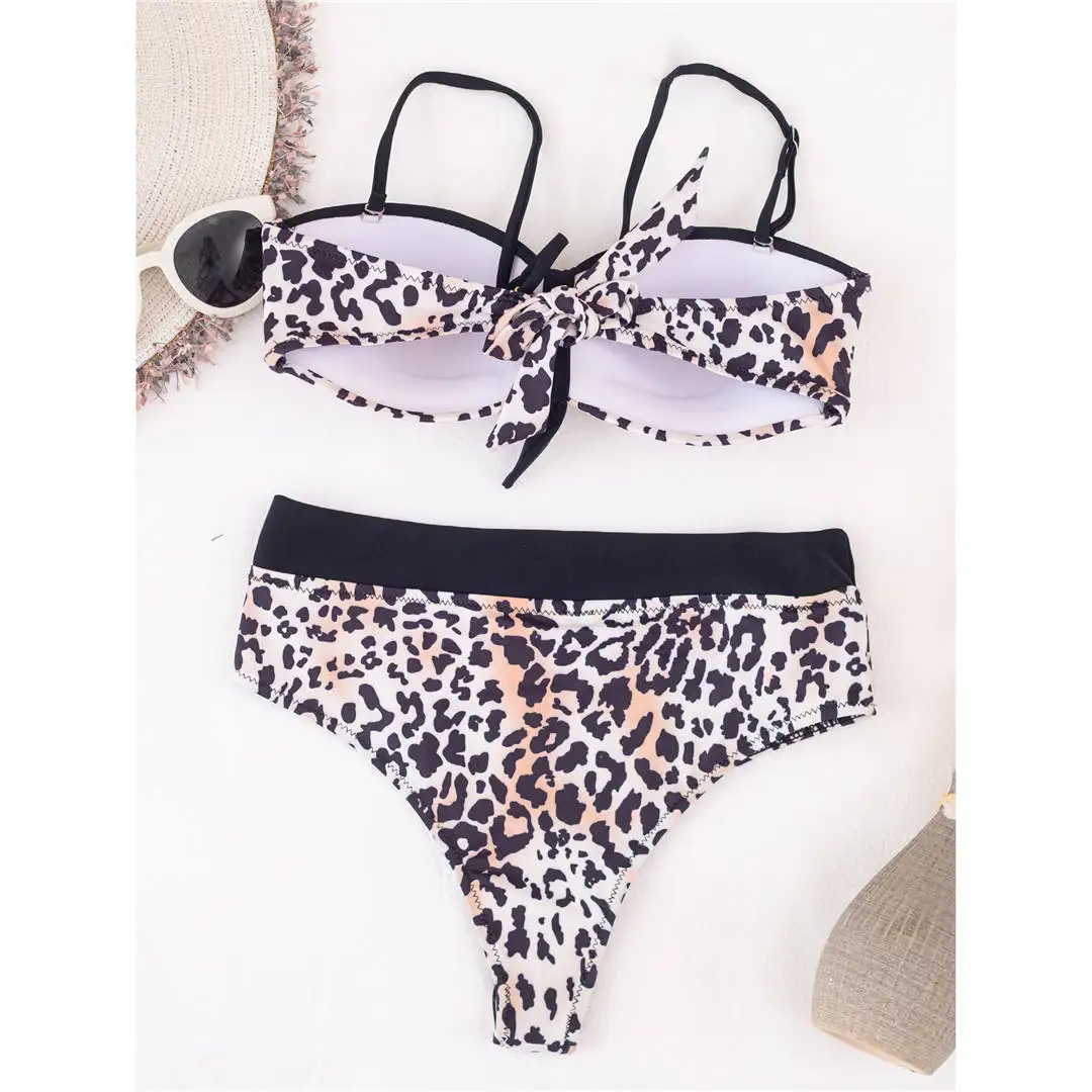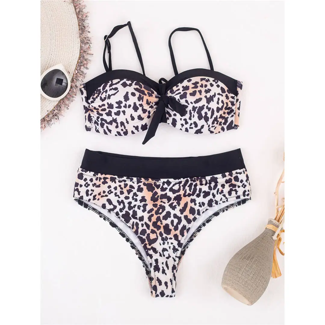 Leopard Push Up Swimsuit Female Swimwear Women Two-pieces Bikini set With Bra Cup High Waist Bather Bathing Suit Swim V2892