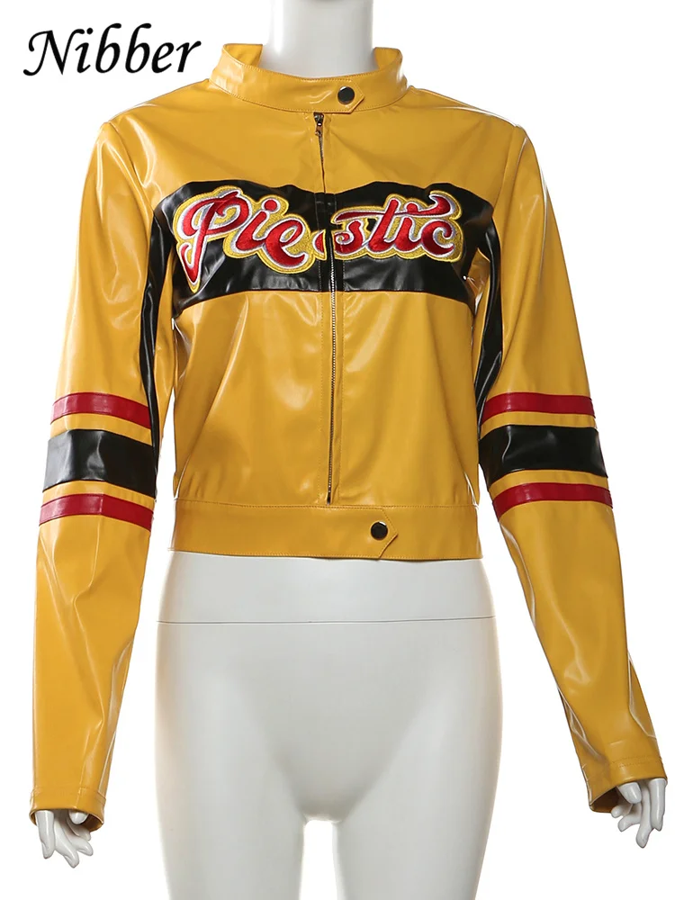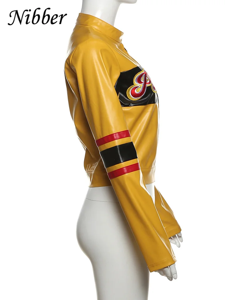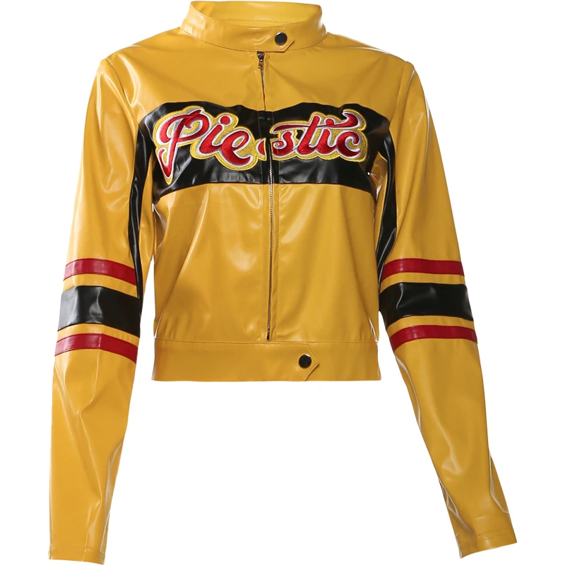 Letter Embroidery Varsity Jacket Women Patchwork Leather Faux Full Sleeve Wild Street Hipster Autumn Zip Uniform Coat