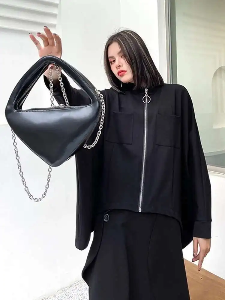 Loose Fit Black Big Size Casual Jacket New Stand Collar Long Batwing Sleeve Women Coat Fashion Spring Autumn 2025 1DF0668