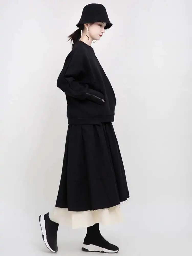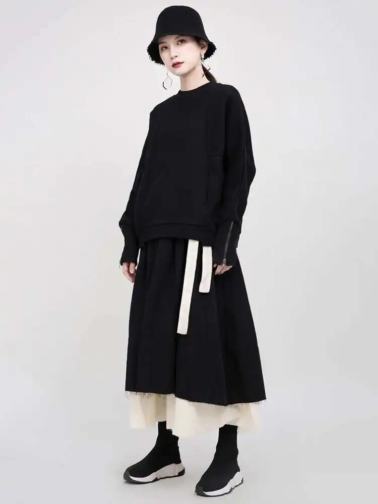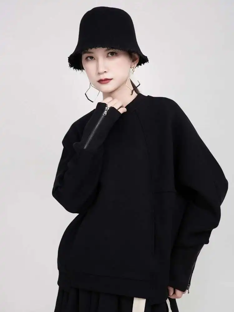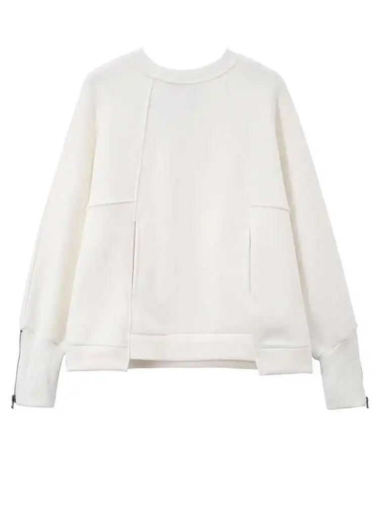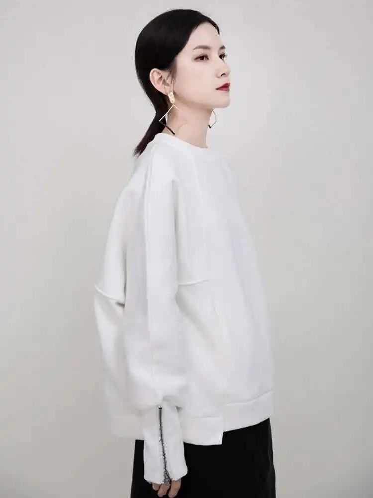 Loose Fit White Cuff Zipper Sweatshirt New Round Neck Long Sleeve Women Big Size Fashion Spring Autumn 2025 1DD5133