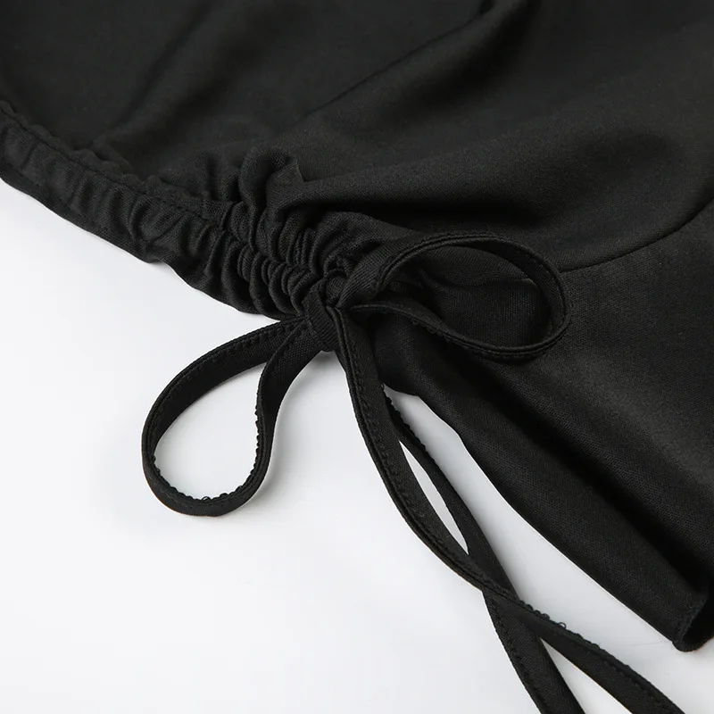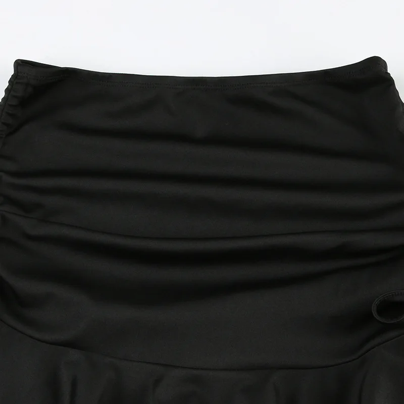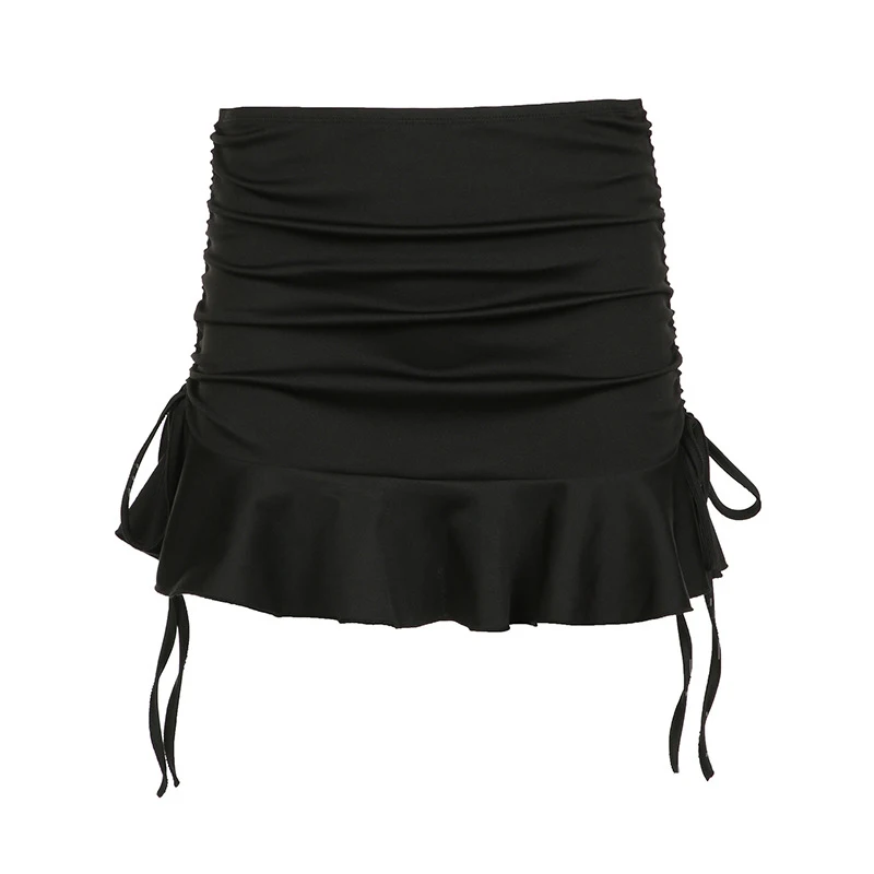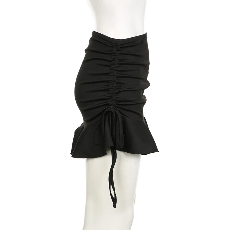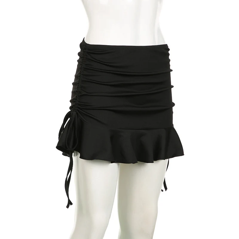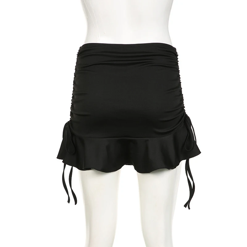 Low Waisted Ruffles Mini Skirt Black Skinny Drawstring Sexy Y2K Short Skirts Fashion Summer Casual Outfits Ladies