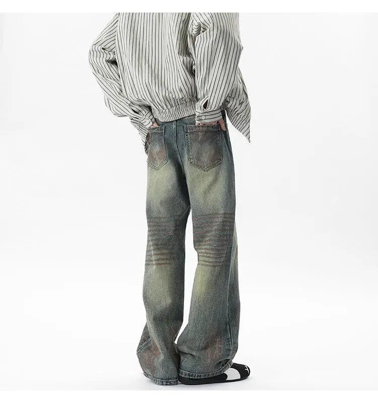 Load image into Gallery viewer, Male Jeasn Splashed Ink Glitter Design New American Style Straight Wide Leg Worn-out Stylish Men's Summer Bottoms 9W1854