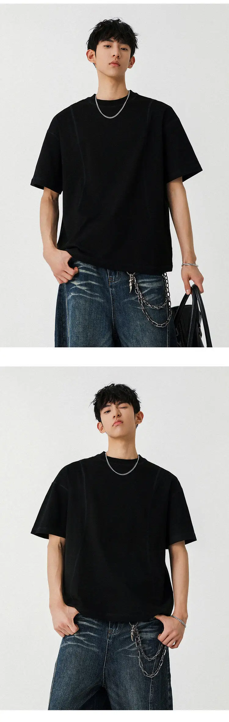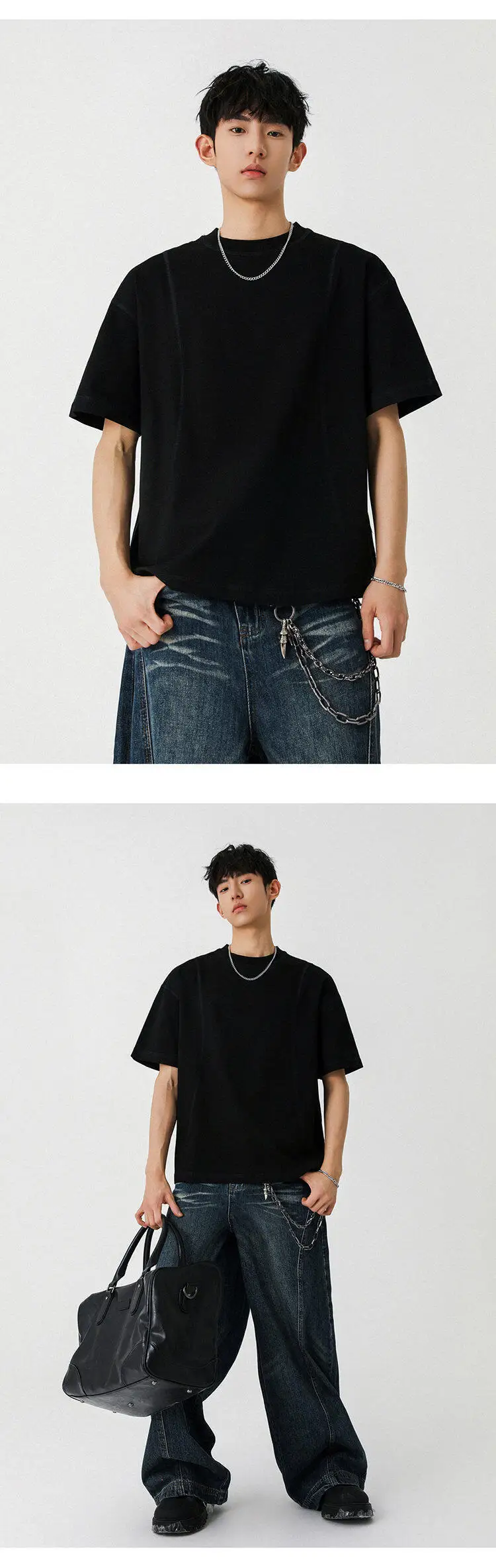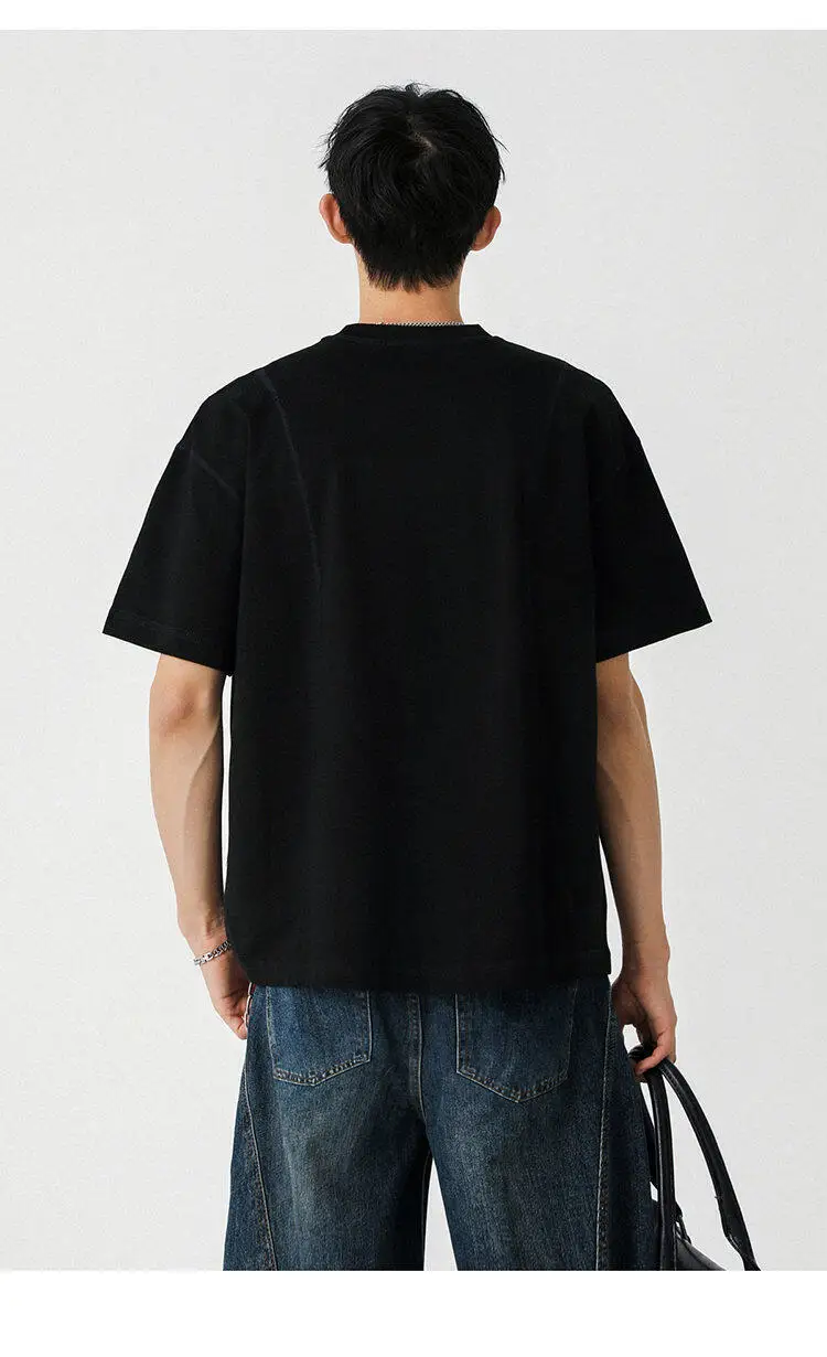 Male T-shirt American Style Short Sleeve Pullover Solid Color O-neck Spring Summer Men's Tees Pullover Top 9W1300