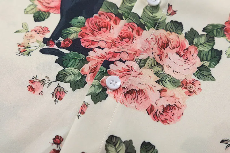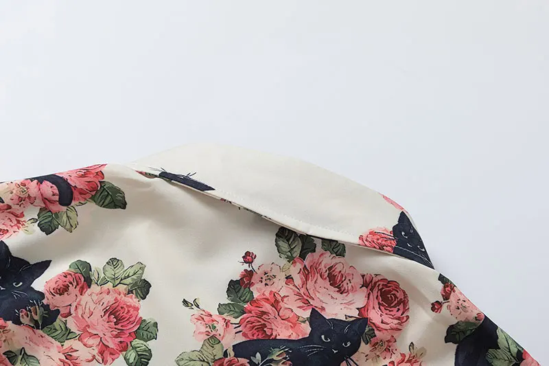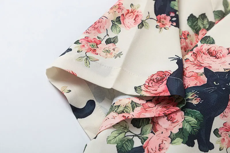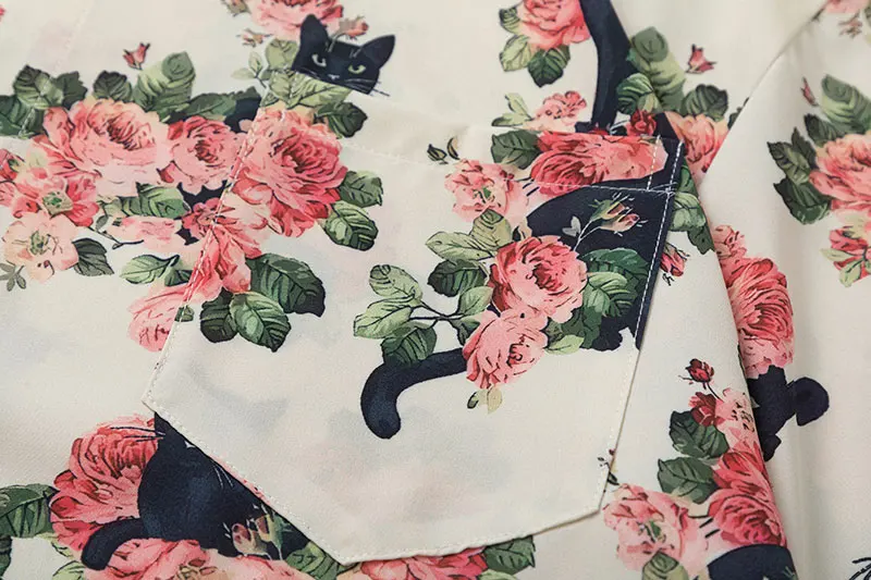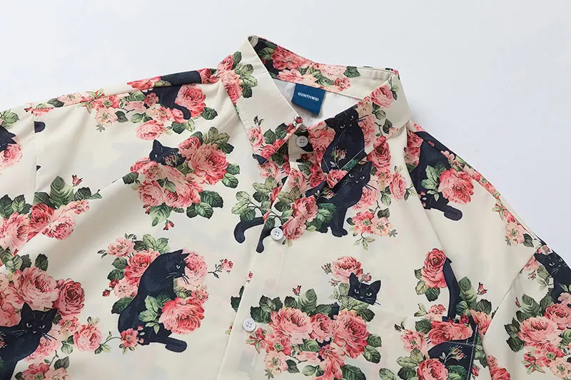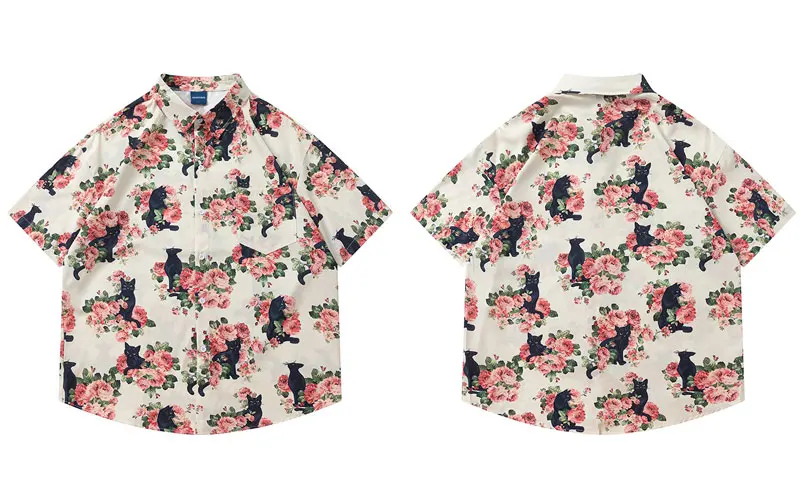Men Oversized Hawaiian Shirts Black Cat Floral Graphic Print Button Up Blouse 2024 Harajuku Loose Short Sleeve Summer Beach Tops
