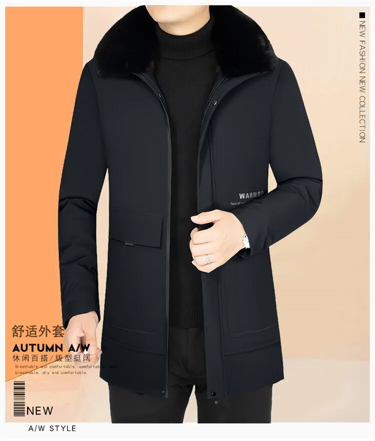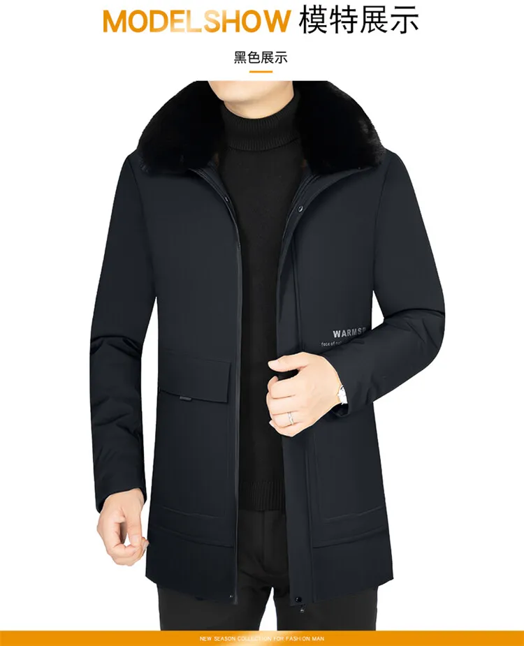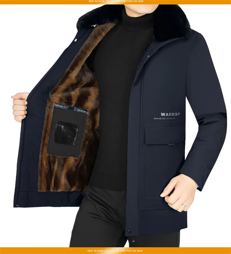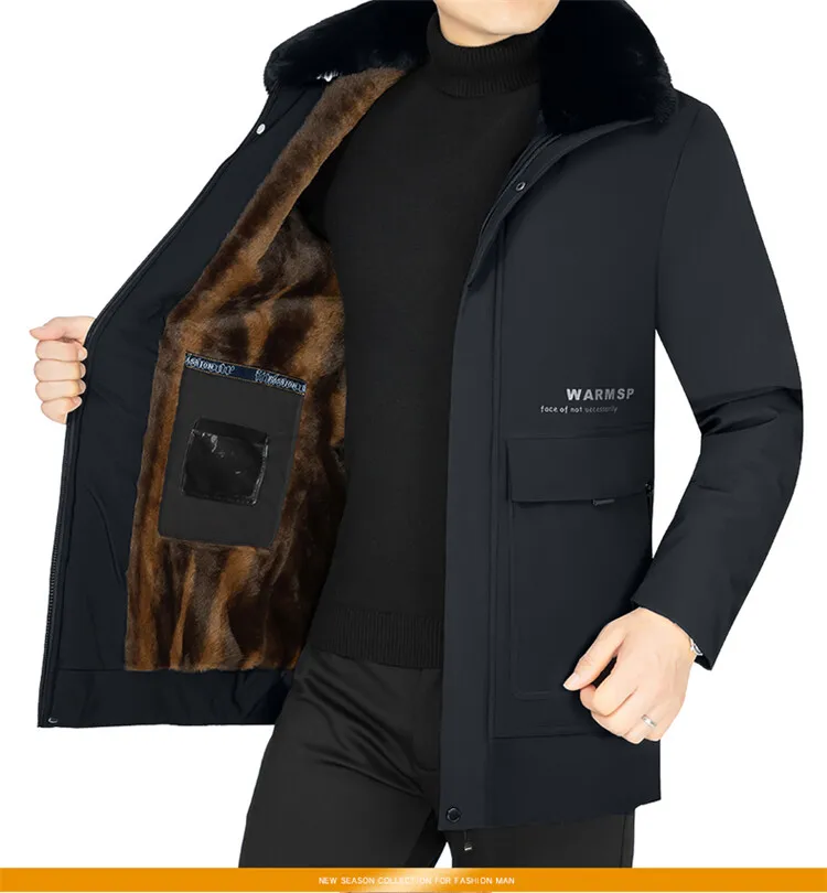 Men Solid Hooded with Fur Winter Outwear Loose Waterproof Warm Thick Fleece Parkas Vintage Streetwear Classic Jacket