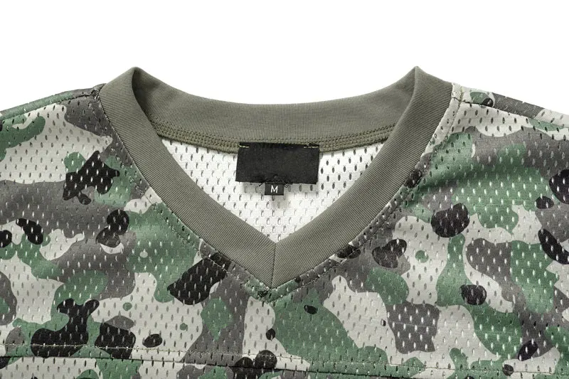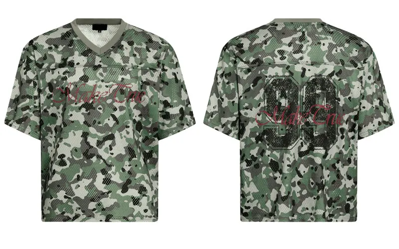 Men Vintage Mesh Jersey T-Shirt Y2K Graphic Printed Camouflage Tshirt Streetwear Hip Hop Punk Gothic V-Neck Breathable Top Tee