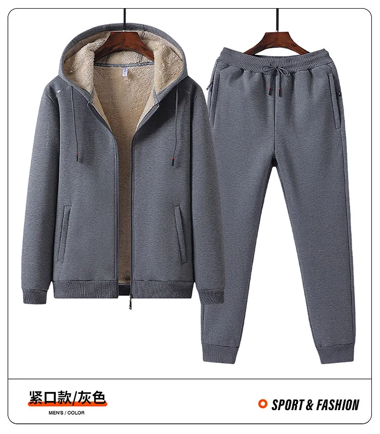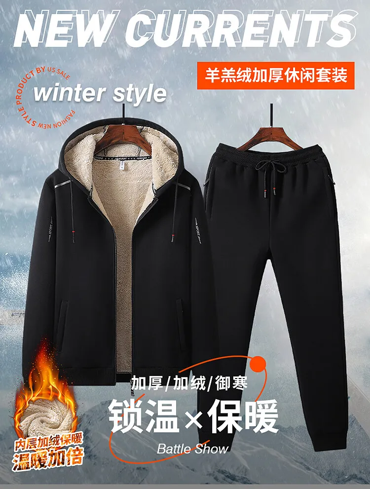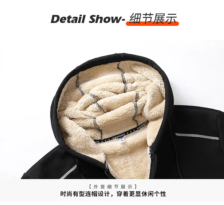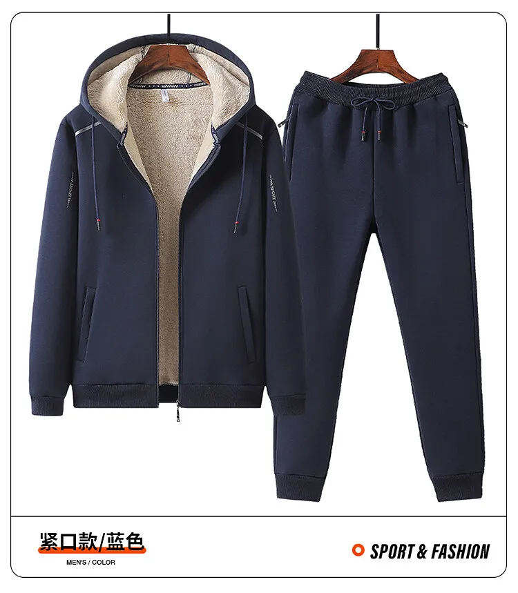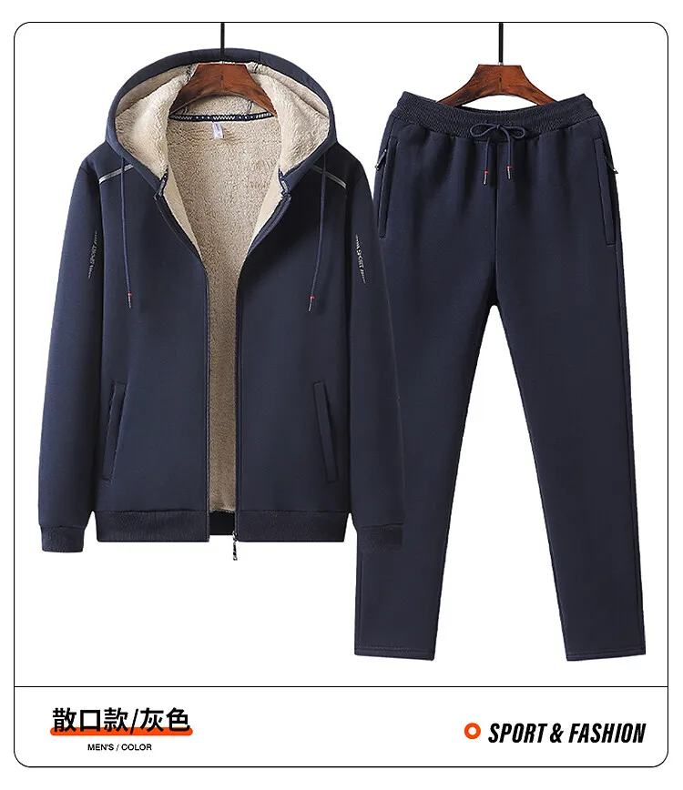 Men Winter Warm Hooded Fashion Winter Set Men Casual Tracksuit Thick Sweatshirt+Pants Sportswear Suit Outerwear Suit
