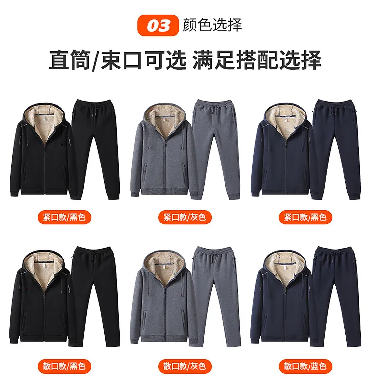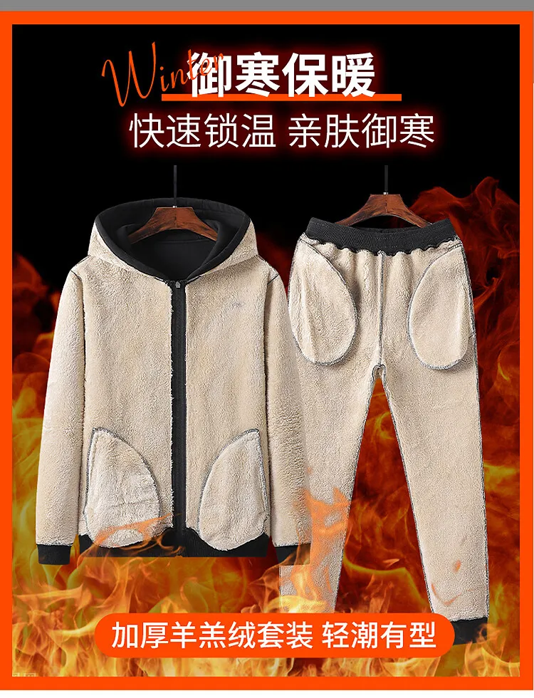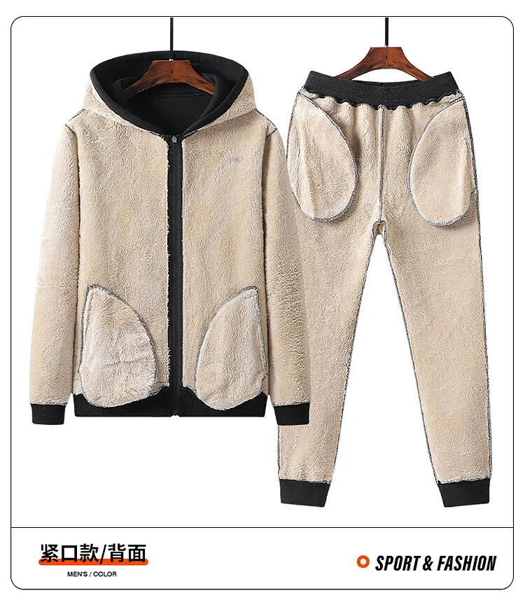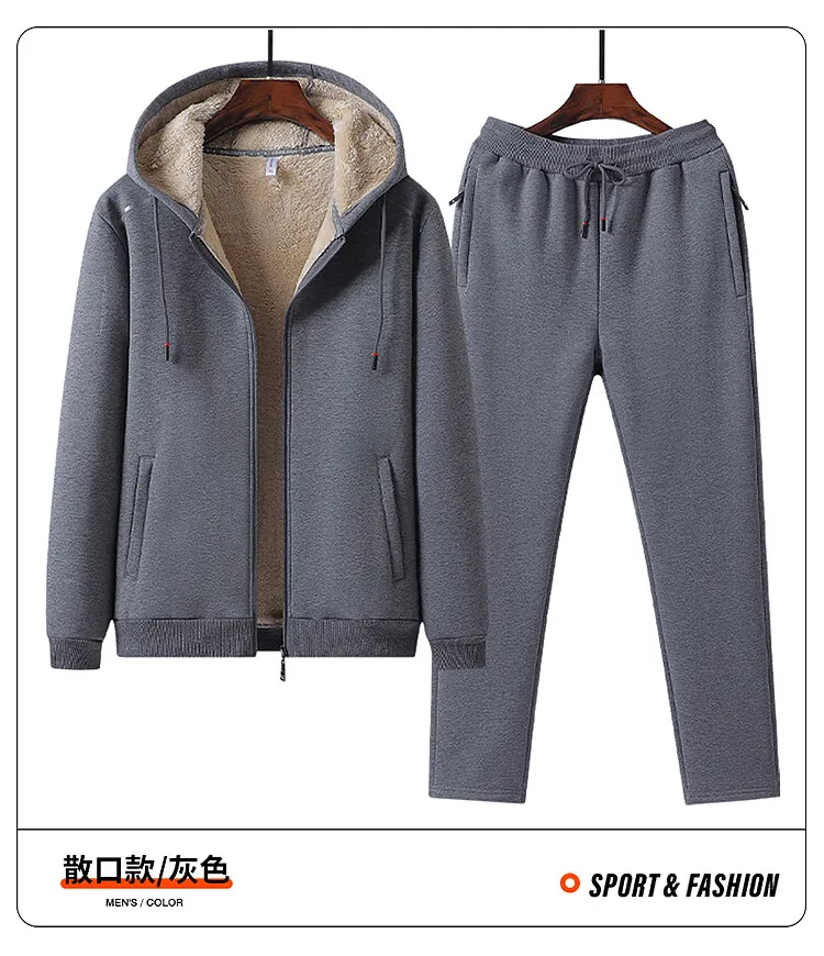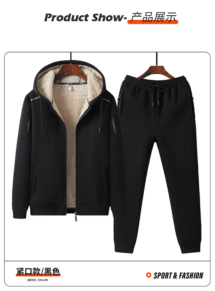 Men Winter Warm Hooded Fashion Winter Set Men Casual Tracksuit Thick Sweatshirt+Pants Sportswear Suit Outerwear Suit