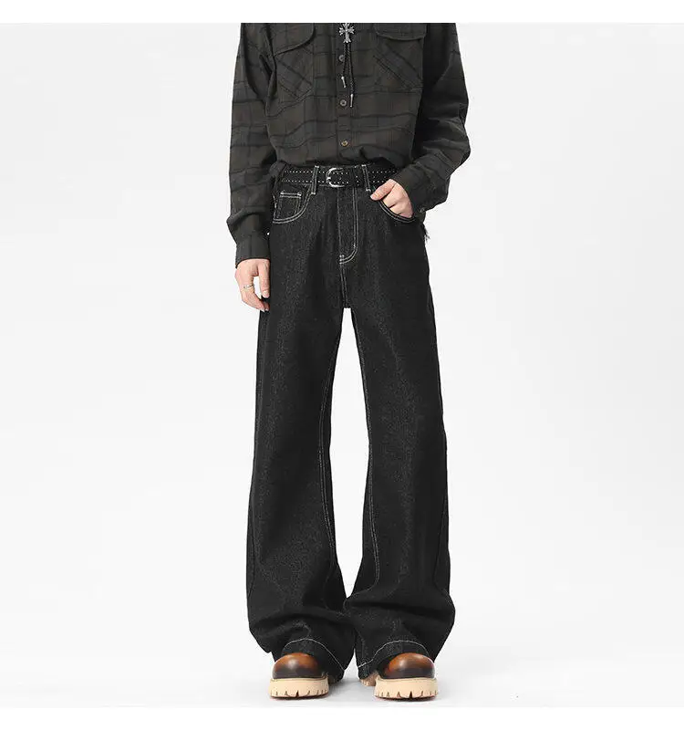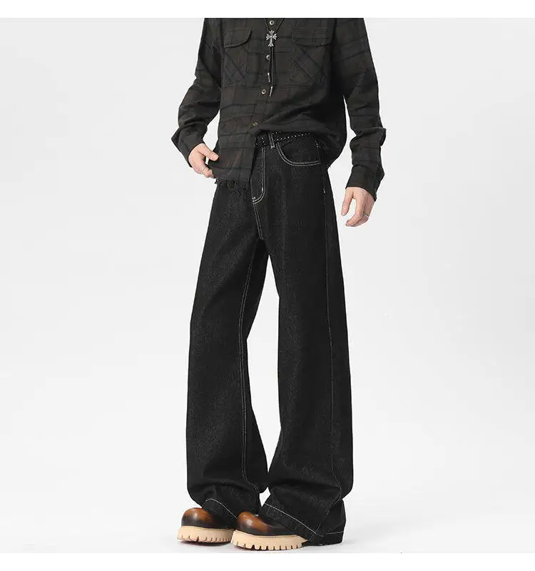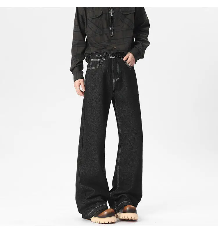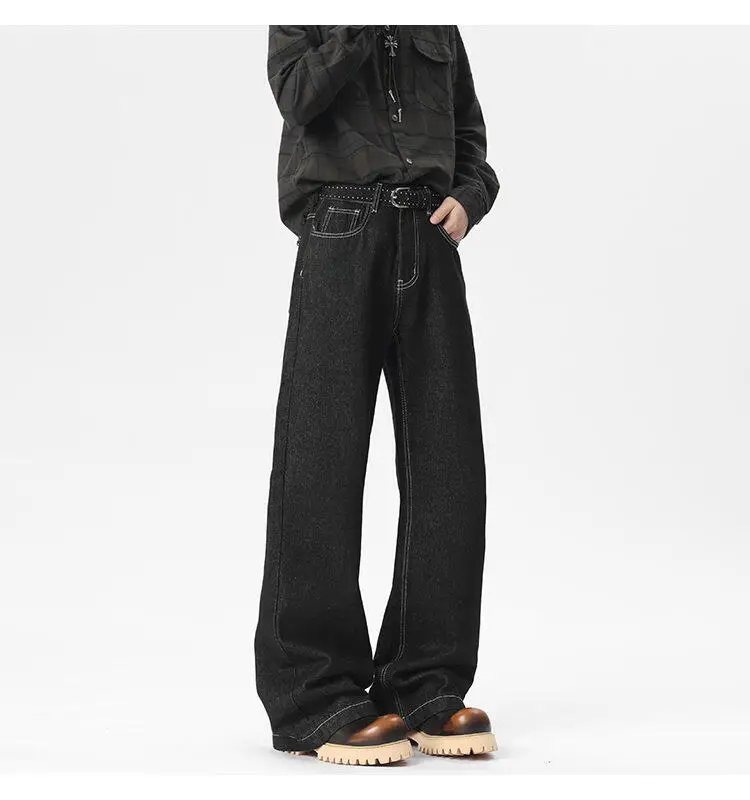 Men's Baggy New American High Steet Solid Color Decoration Straight Leg Trousers Spring Casual Male Trendy 2025 9W1539