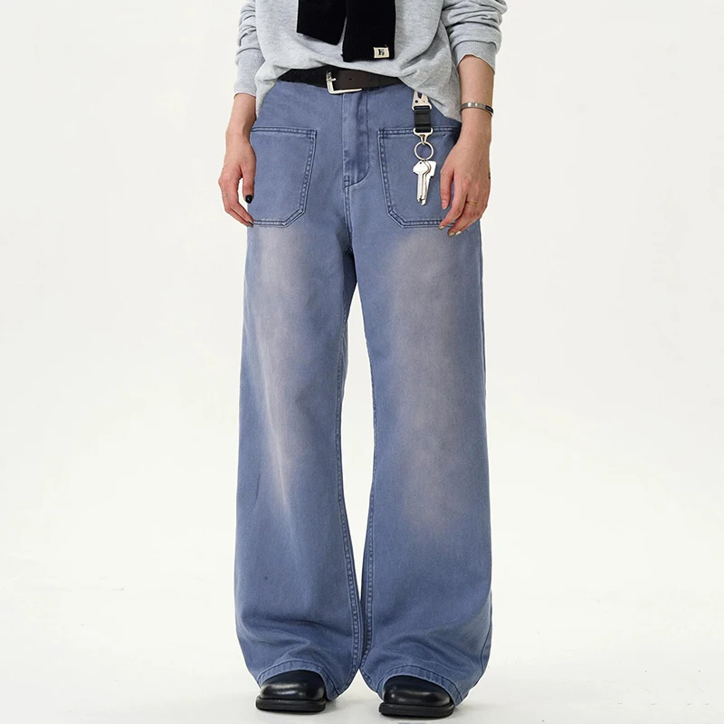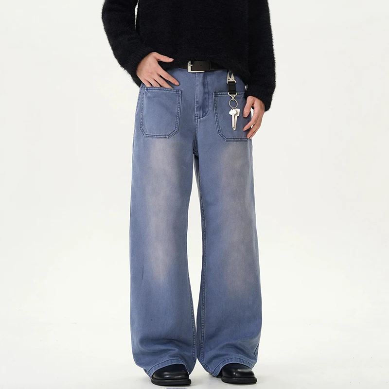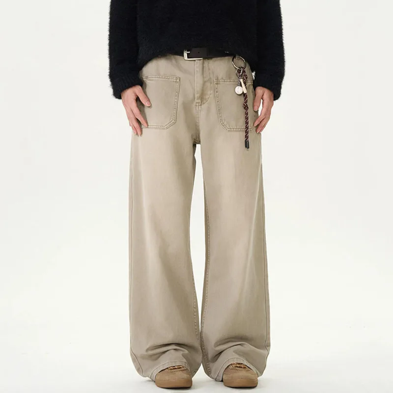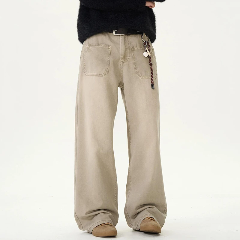 Men's Cargo Pants American Handsome Niche Solid Color Style Straight Leg Multi Pockets Trendy Male Trousers 9W1463