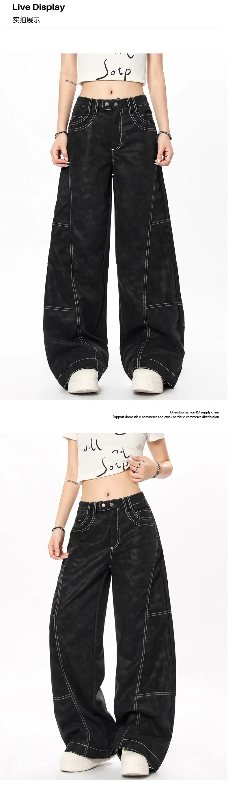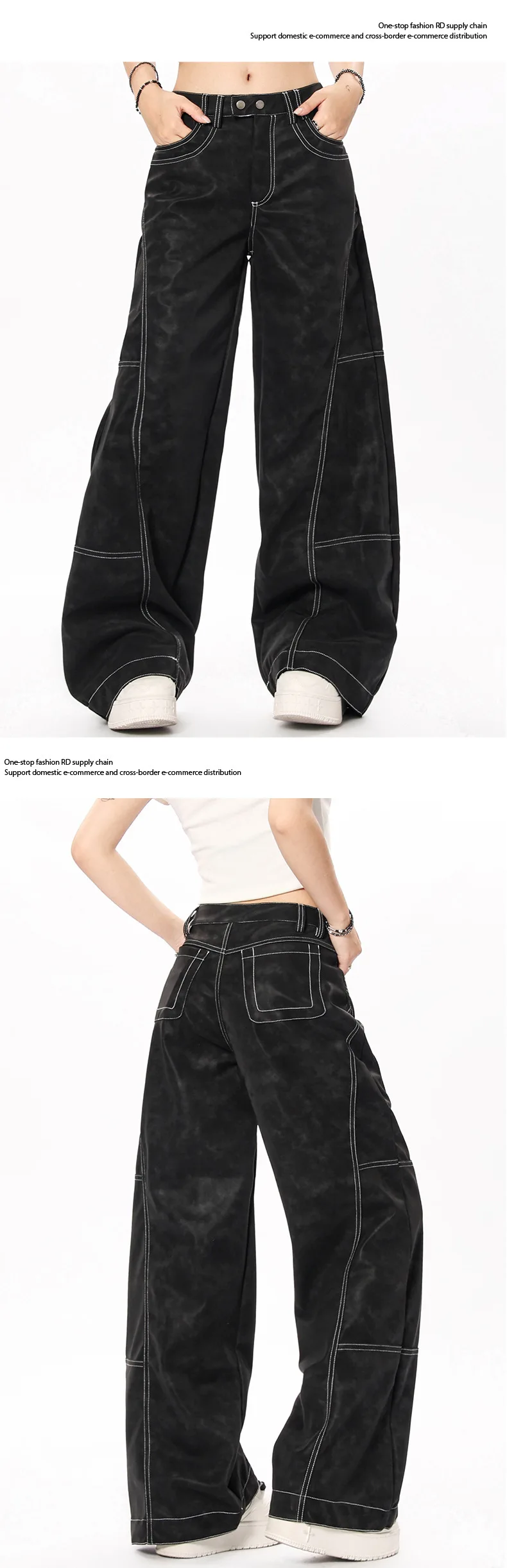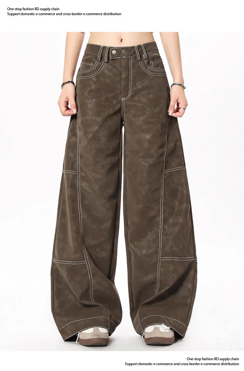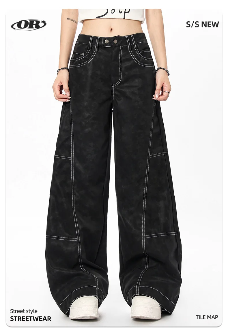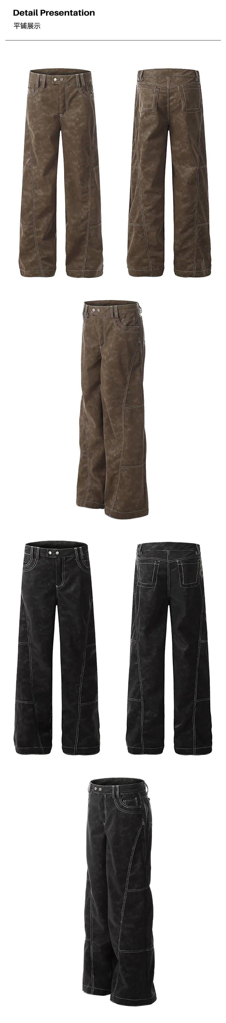 Men's Cargo Pants Line Splicing Design Straight Wide Leg New American Style Solid Color Trendy Male Trousers Summer 9W1856