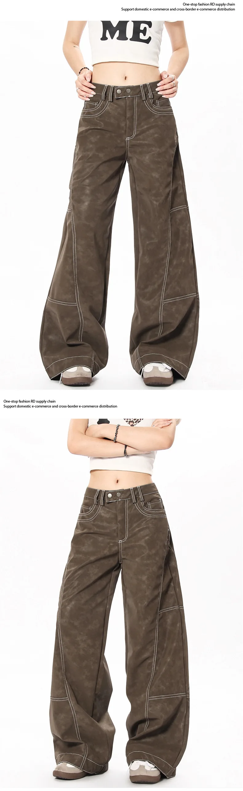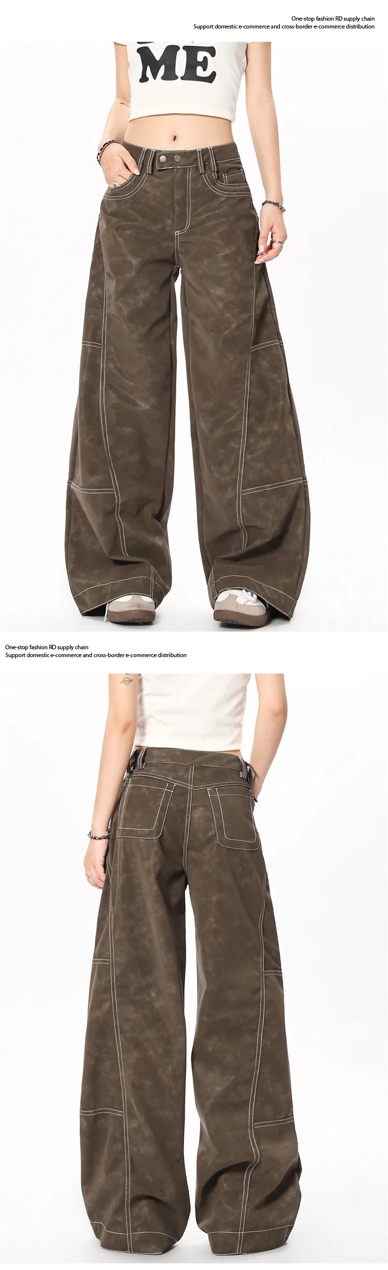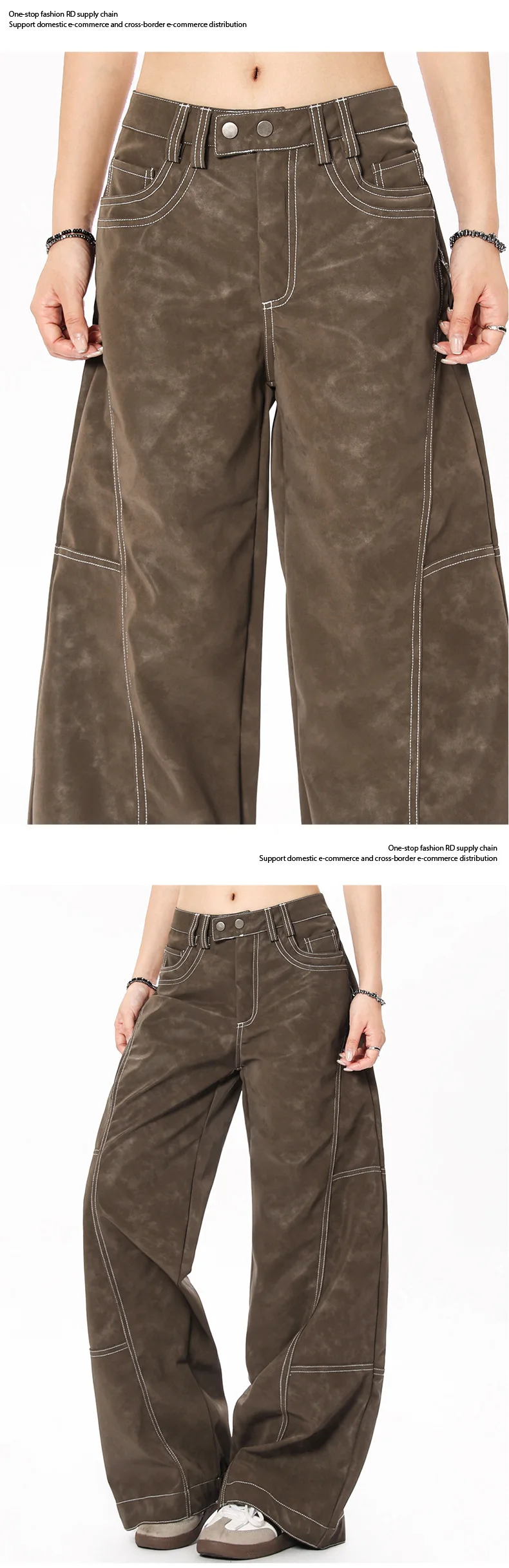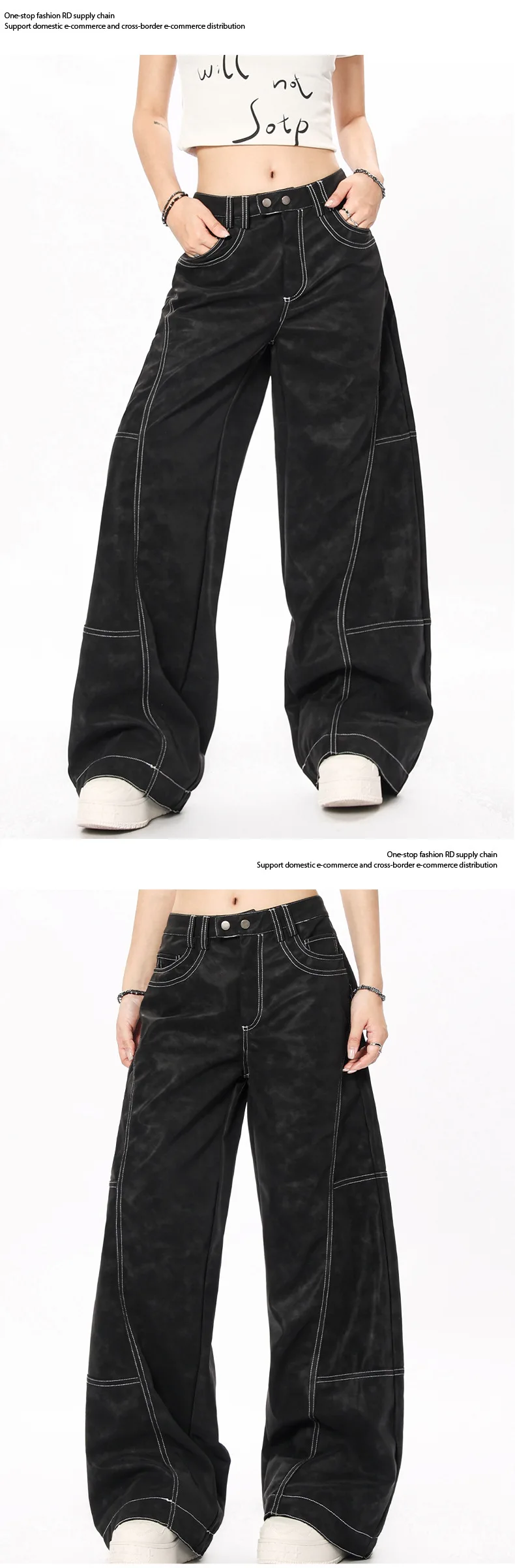 Men's Cargo Pants Line Splicing Design Straight Wide Leg New American Style Solid Color Trendy Male Trousers Summer 9W1856