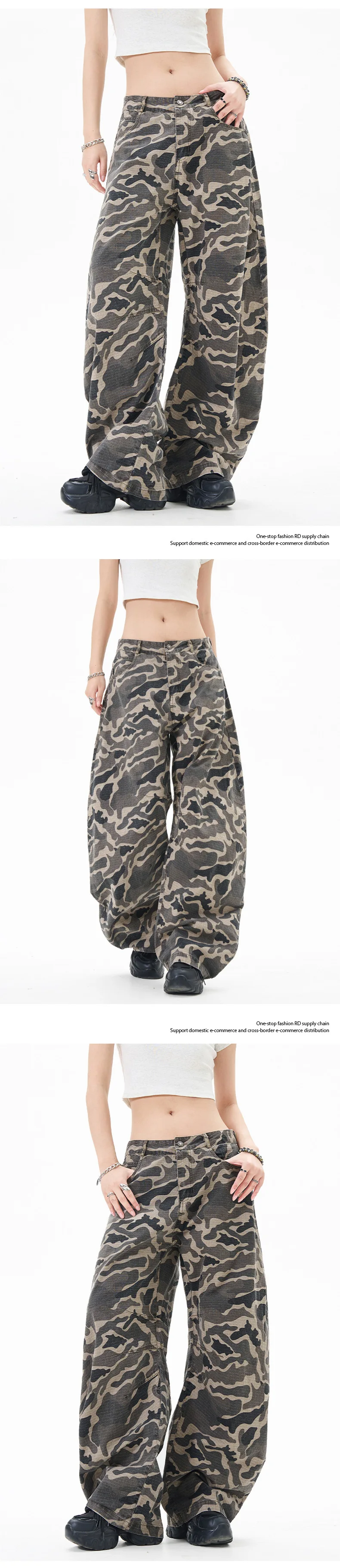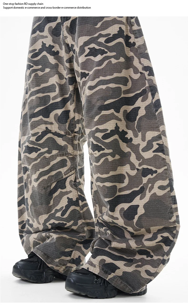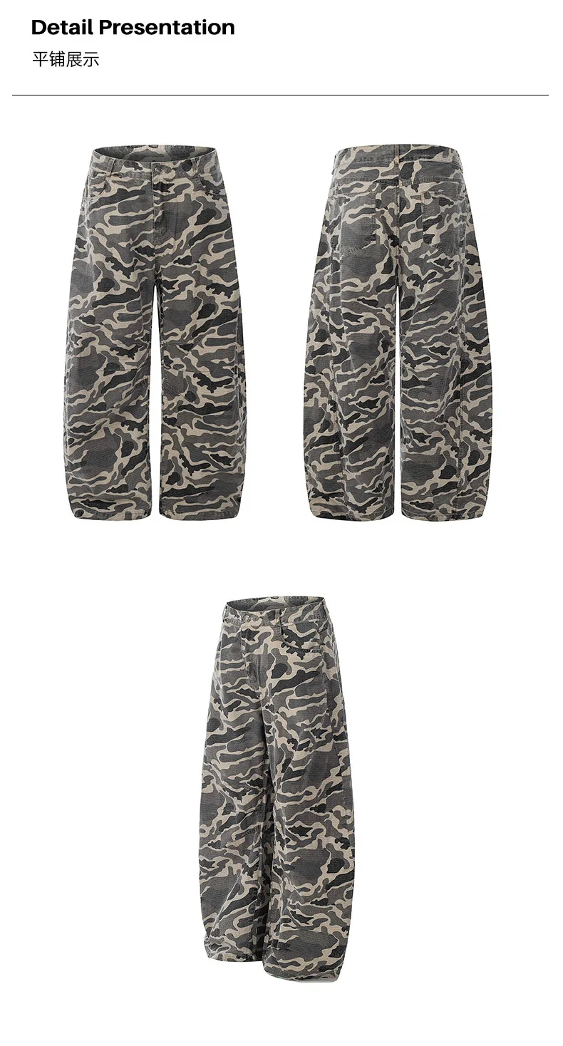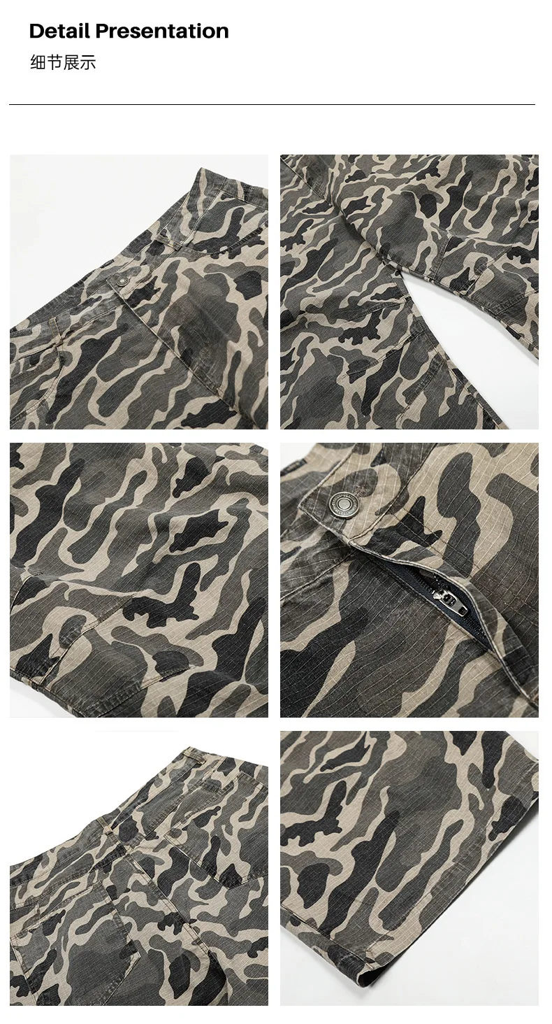 Men's Cargo Pants New American Style Curved Knife Trendy Distressed Washed Silhouette Stylish Male Casual Trousers 9W1919