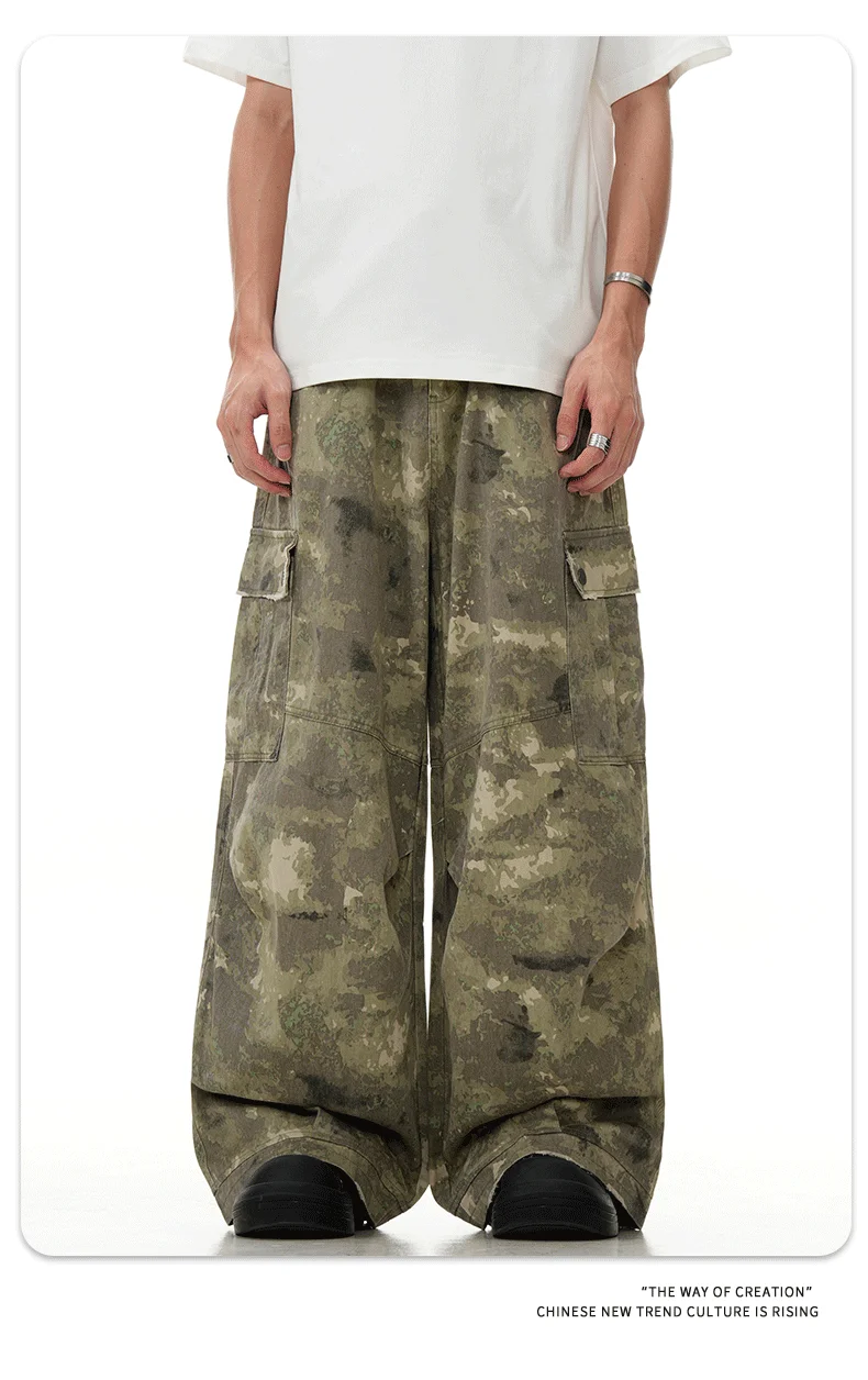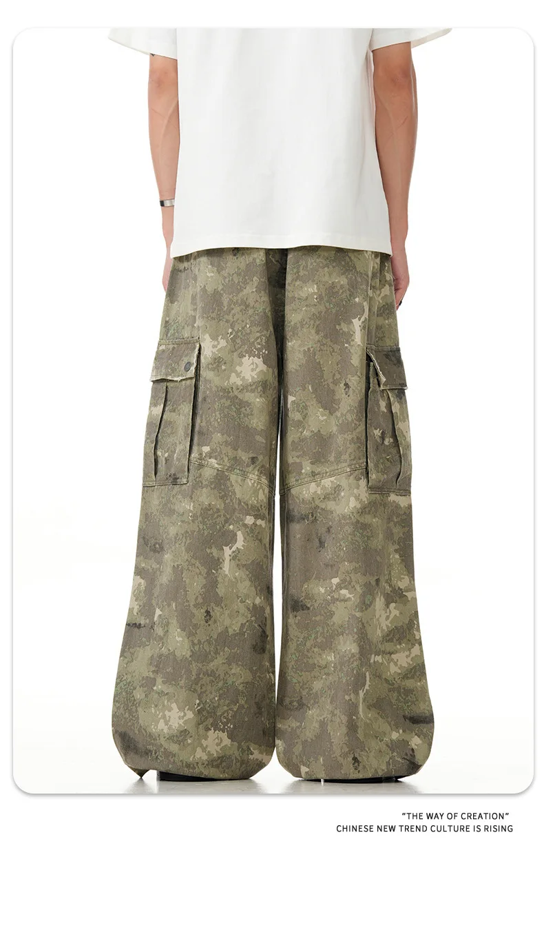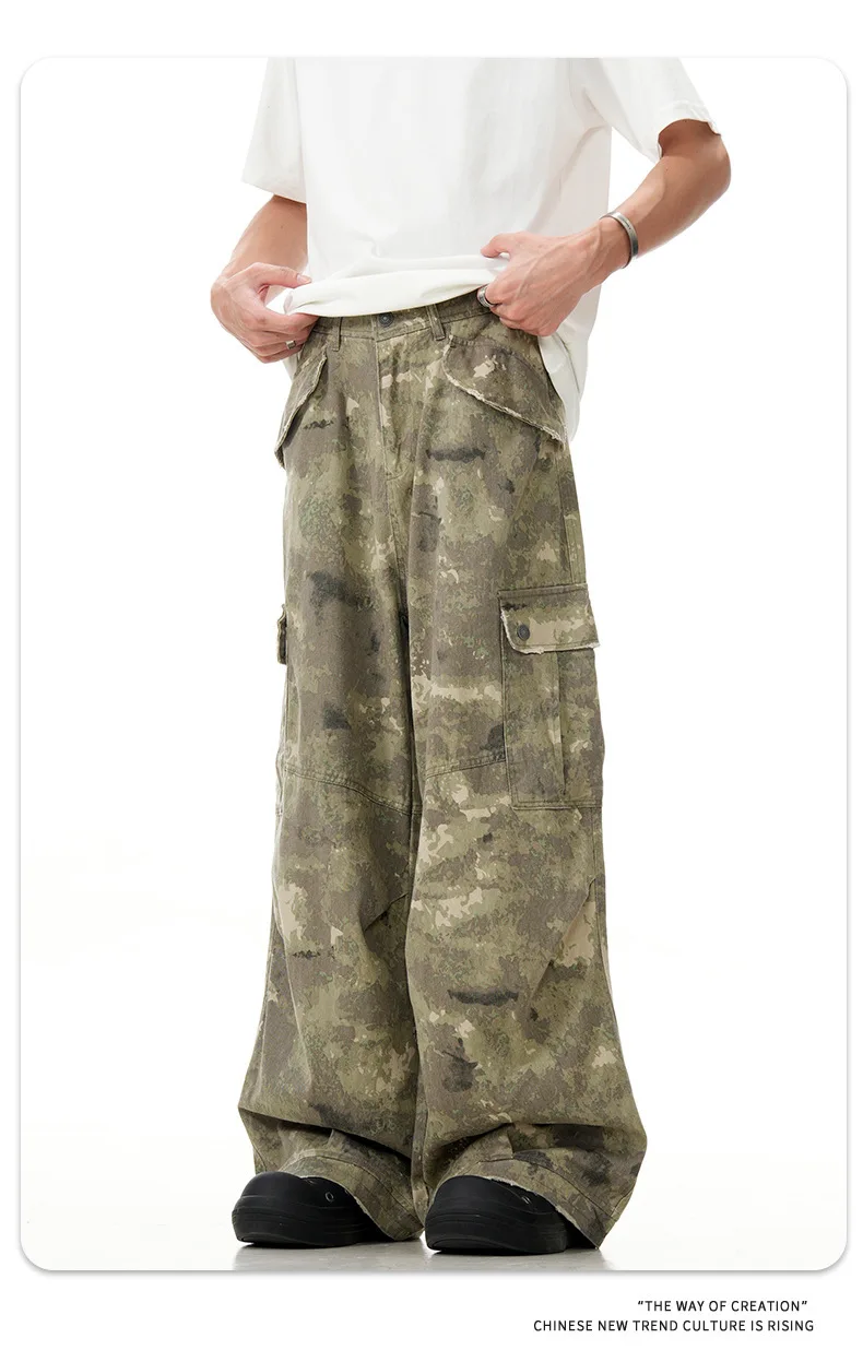 11KN American retro multi pocket overalls camouflage wide leg China-Chic sweatpants lovers casual pants cross-border