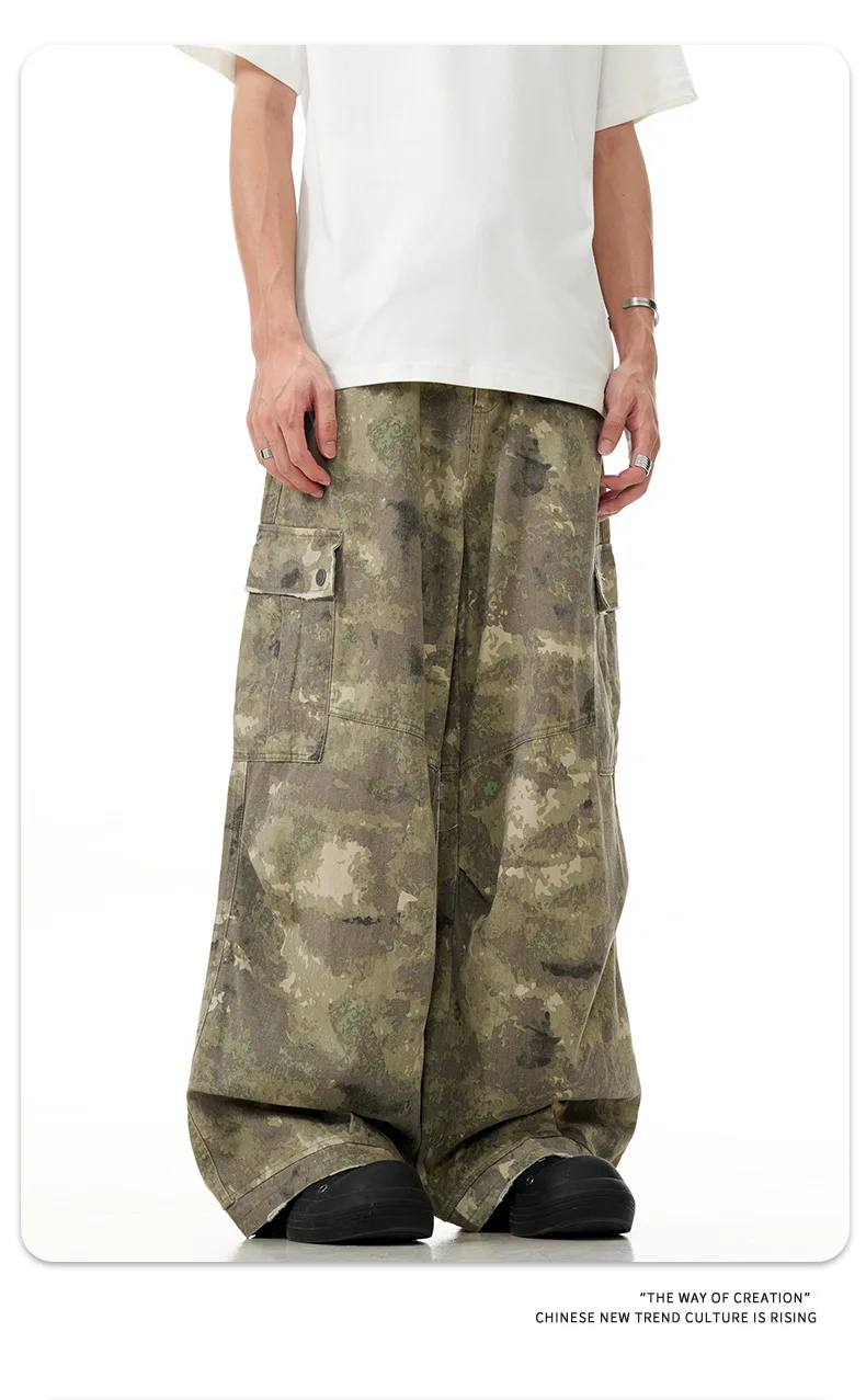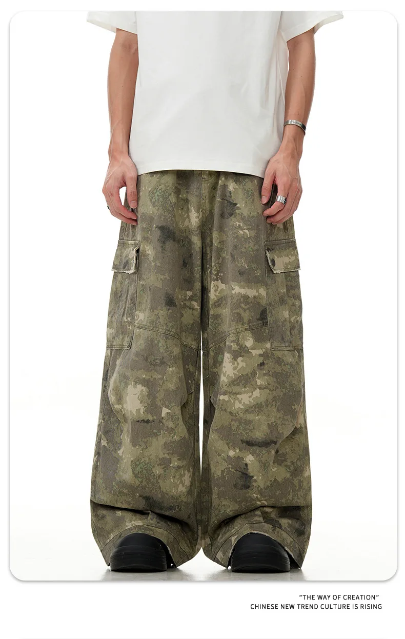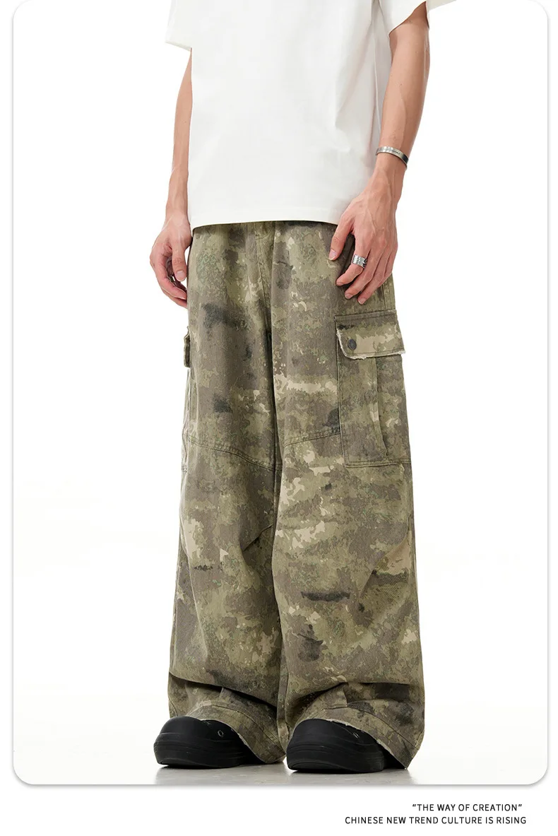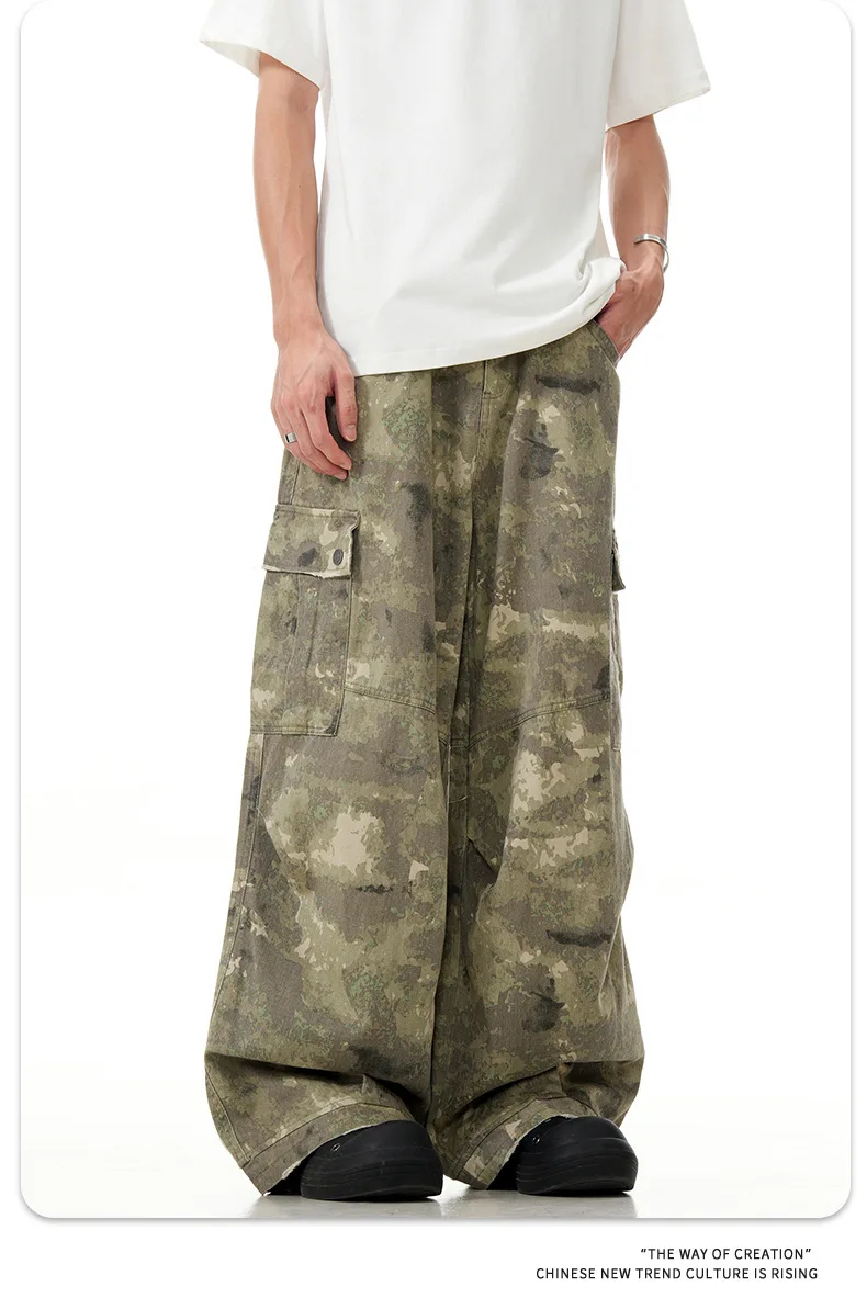 11KN American retro multi pocket overalls camouflage wide leg China-Chic sweatpants lovers casual pants cross-border