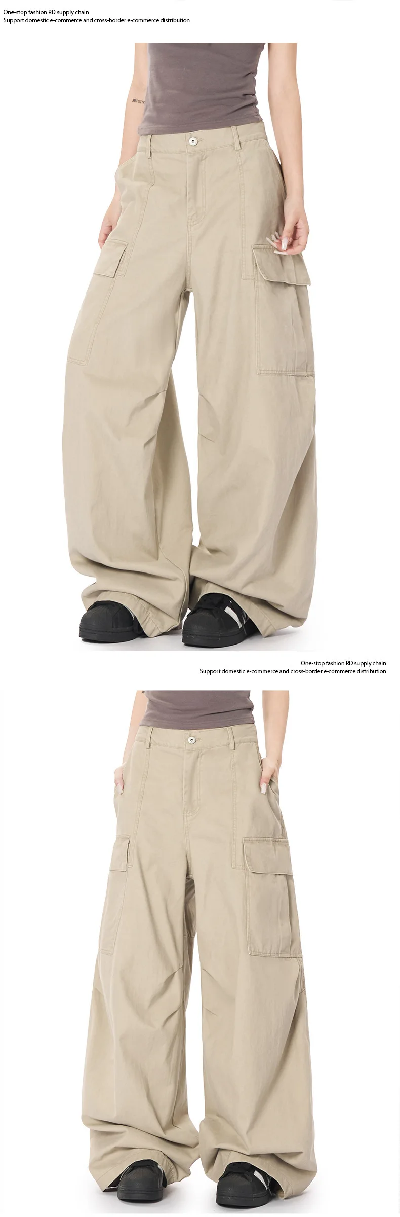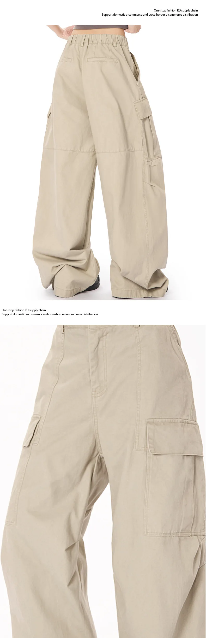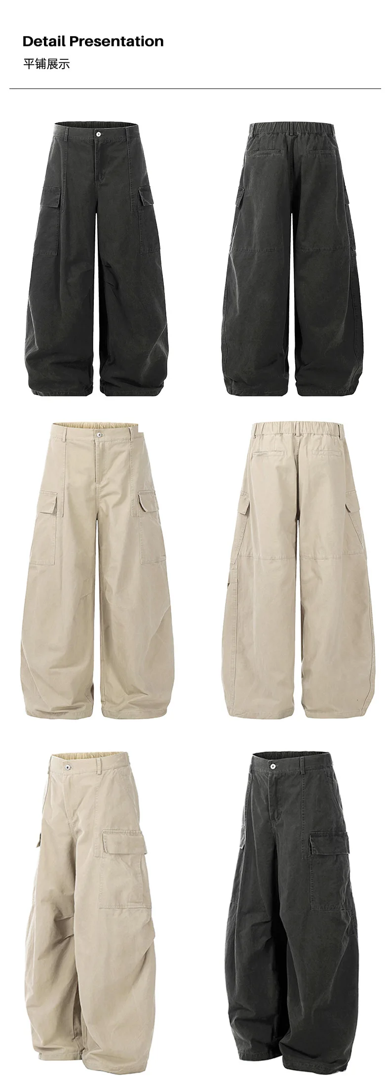 Men's Cargo Pants New American Style Straight Wide Leg Stylish Solid Color Multi Pockets Trendy Male Causal Bottoms 9W1930