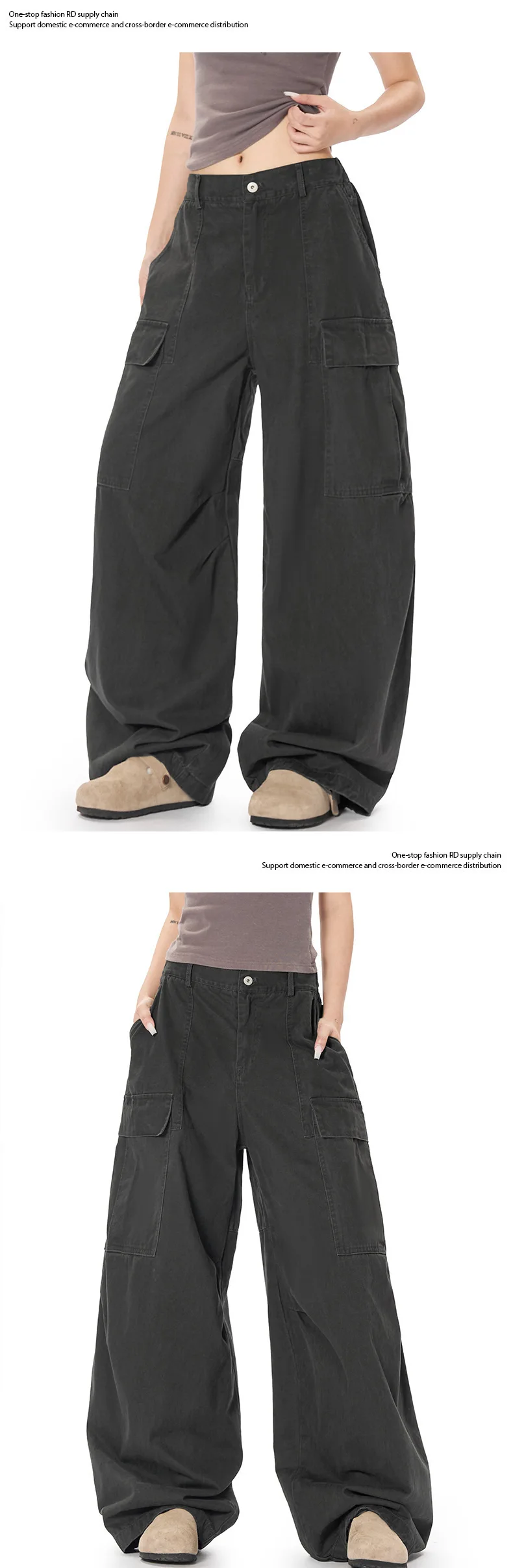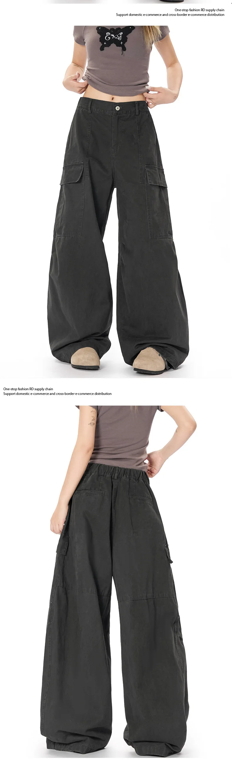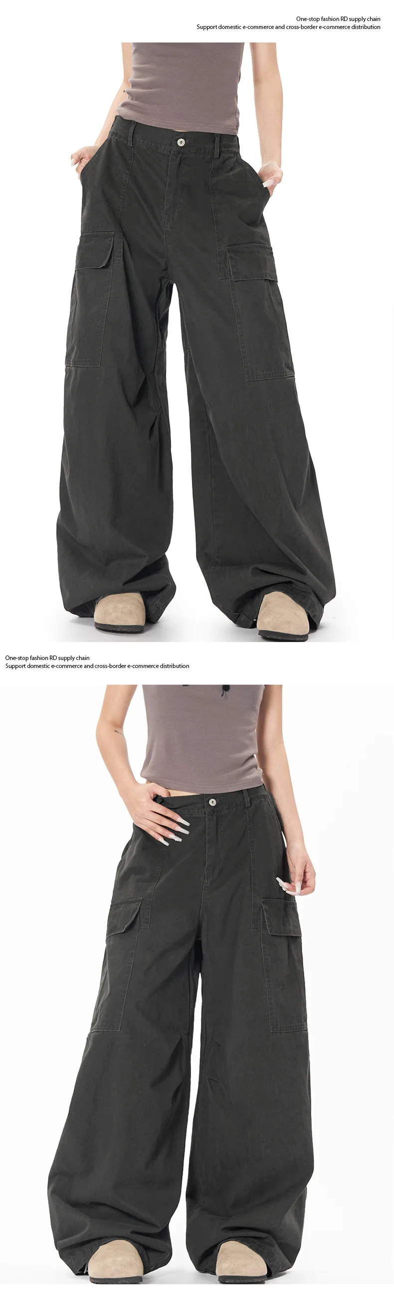 Men's Cargo Pants New American Style Straight Wide Leg Stylish Solid Color Multi Pockets Trendy Male Causal Bottoms 9W1930