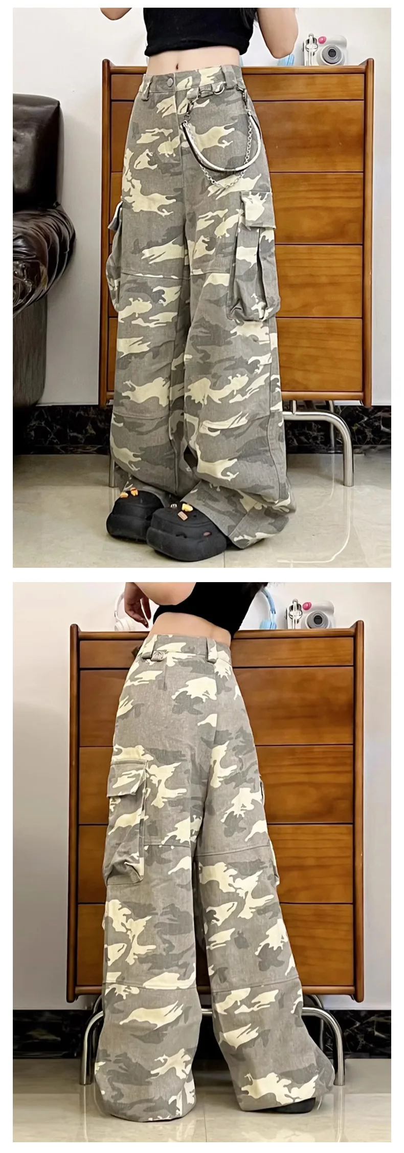Men's Cargo Pants New High Street Trendy Straight Leg Multi Pockets Design Patchwork Loose Male Summer Bottoms 9W1956