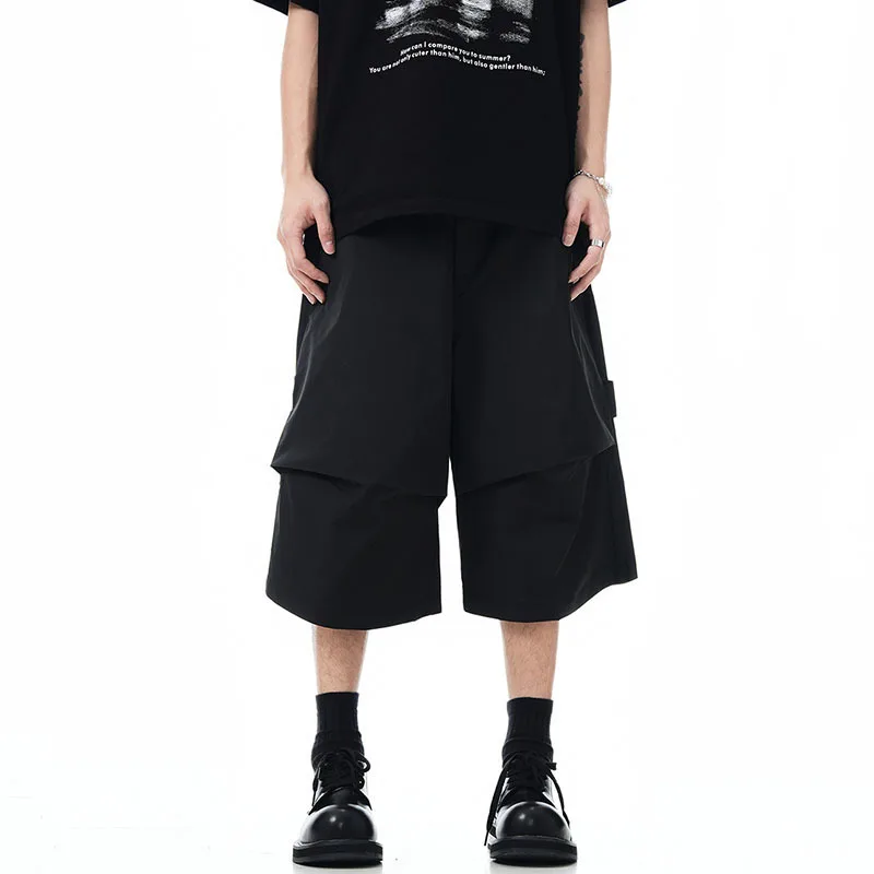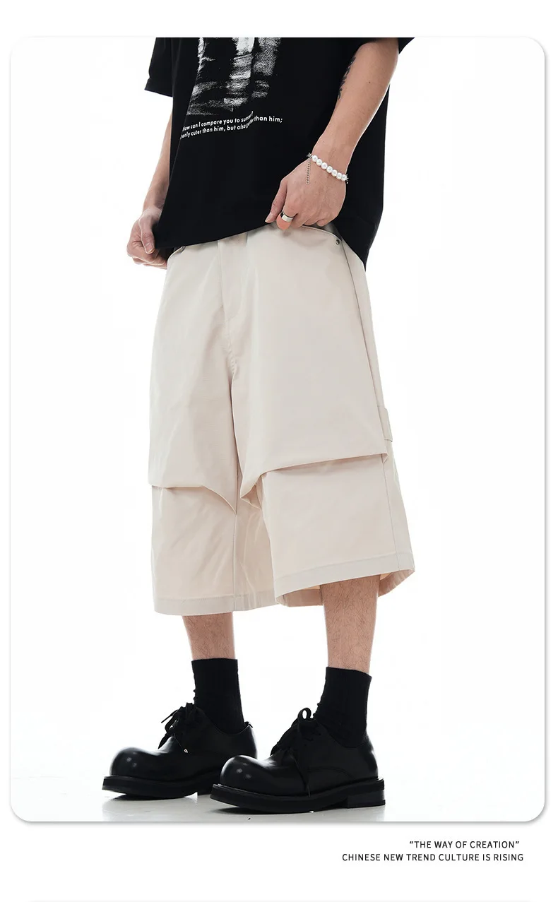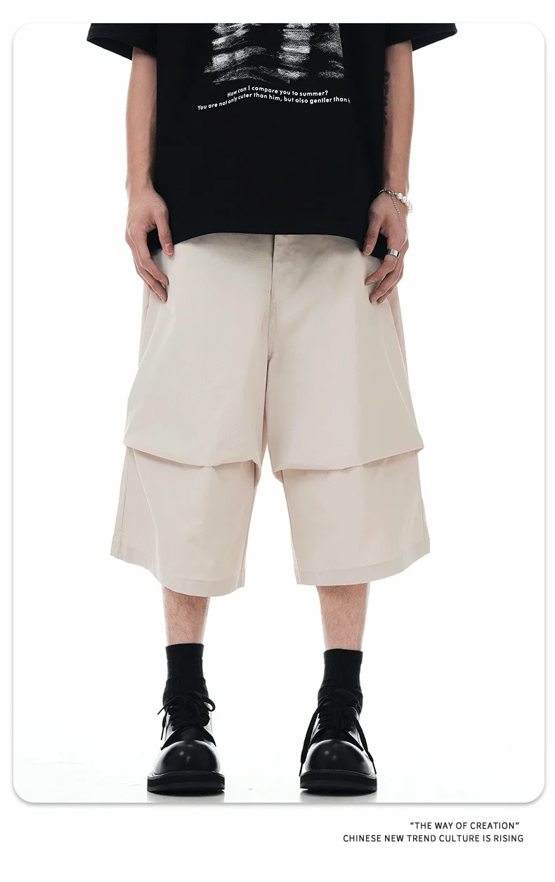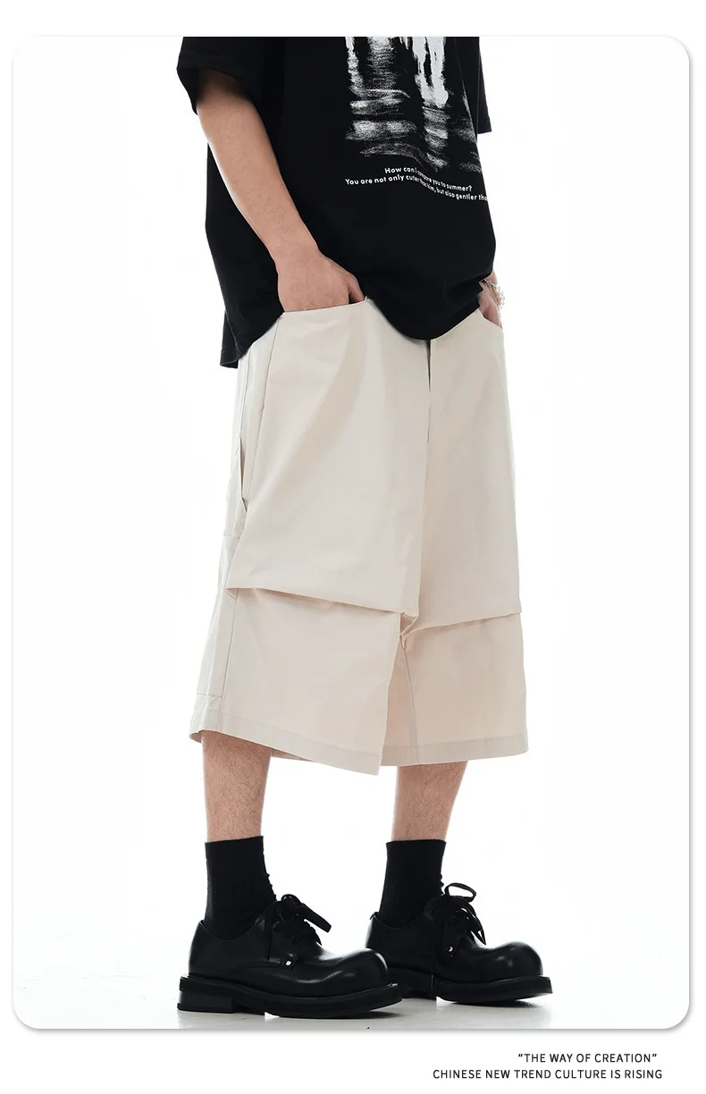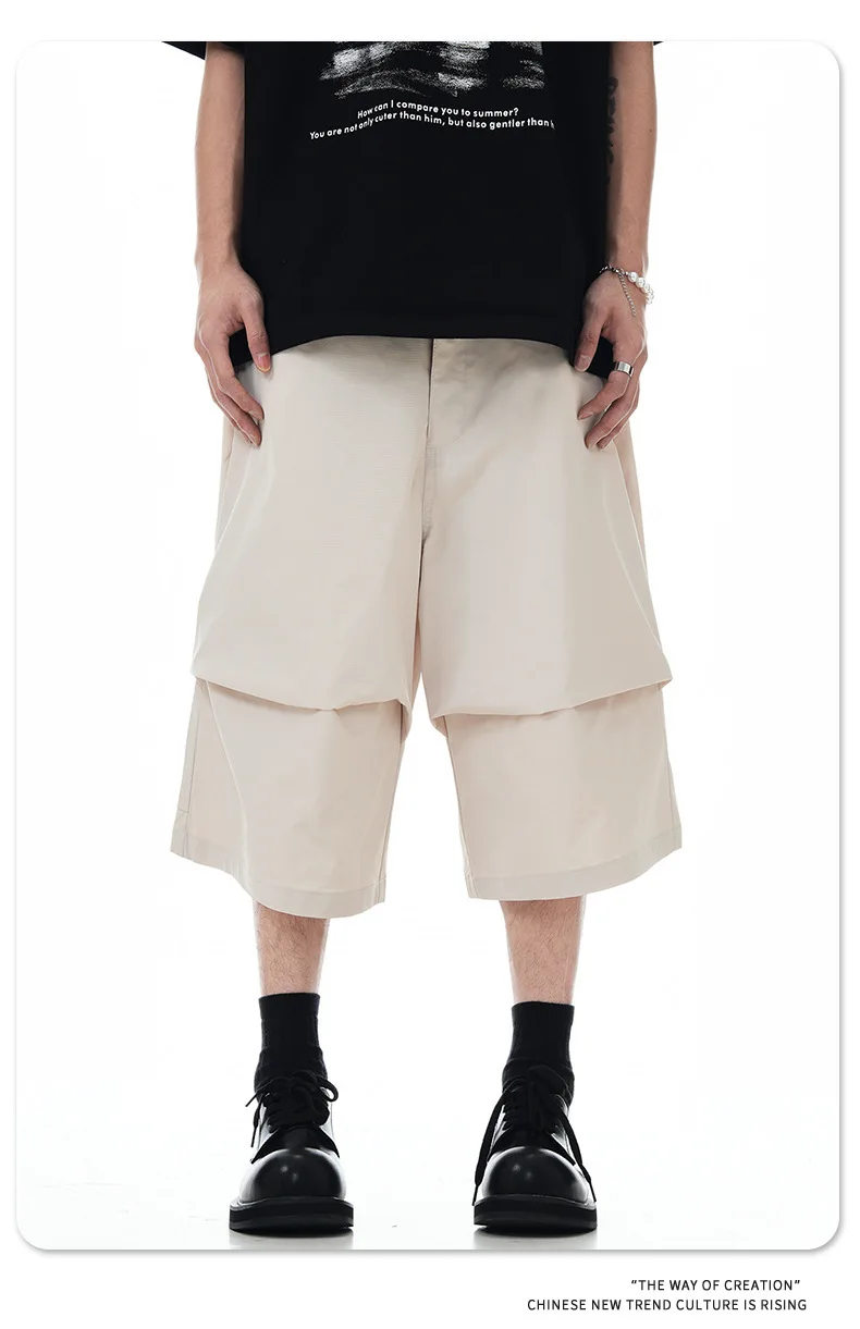 11KN American retro pleated curved knife logging workwear shorts loose casual pants versatile cleanfit cropped pants
