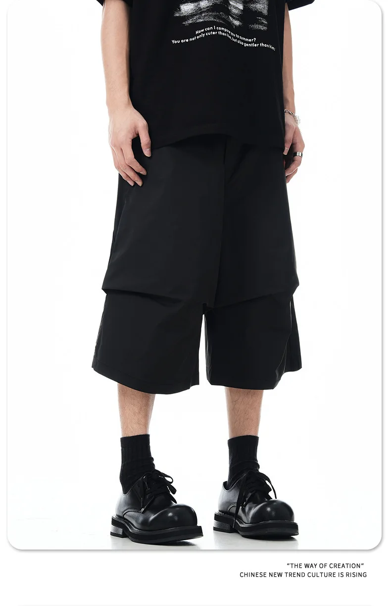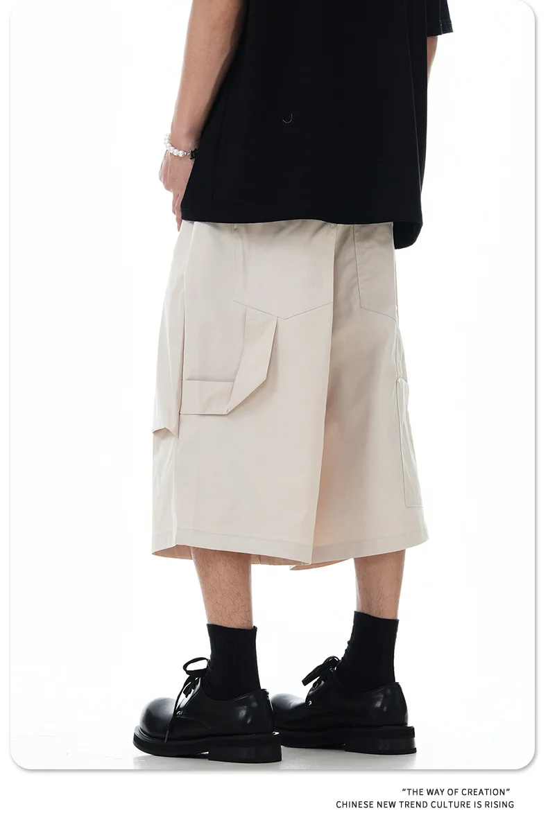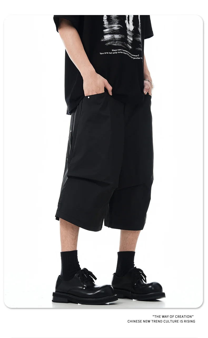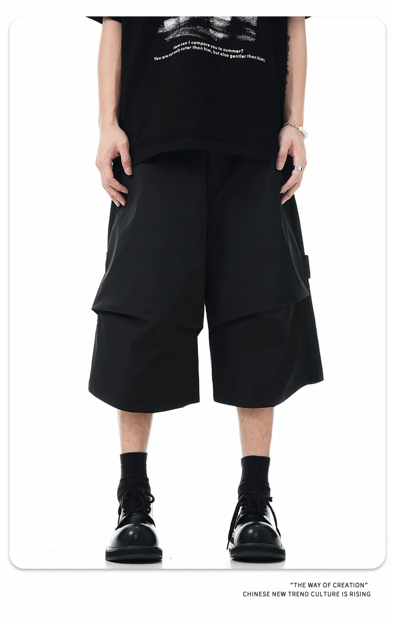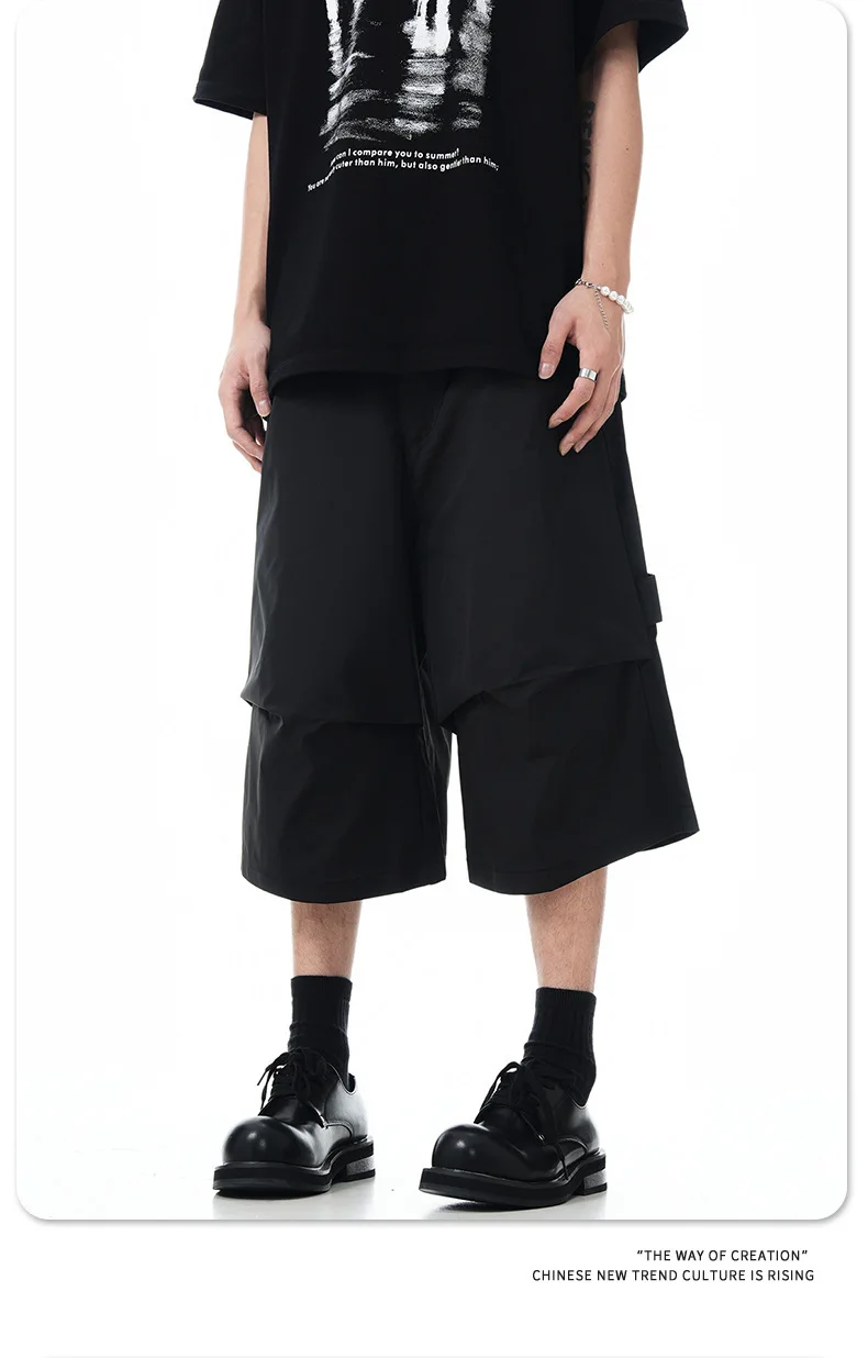 11KN American retro pleated curved knife logging workwear shorts loose casual pants versatile cleanfit cropped pants