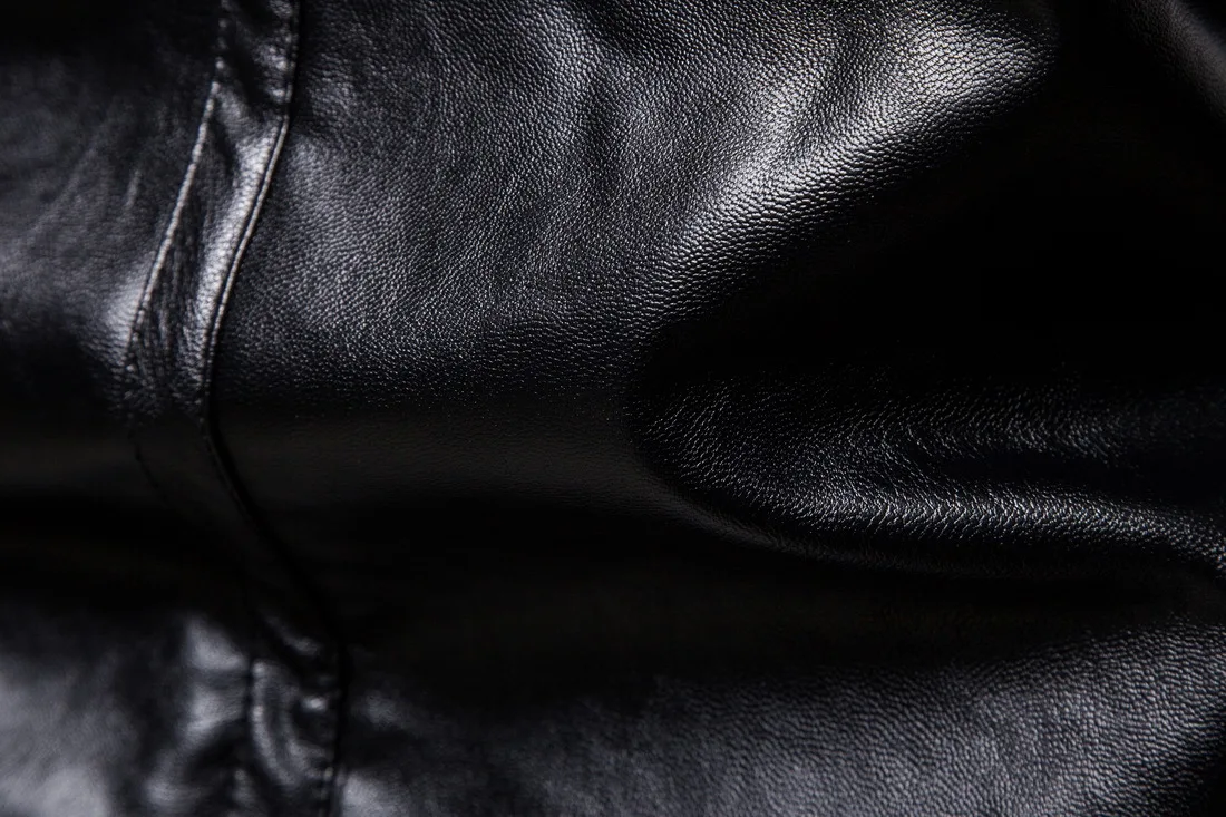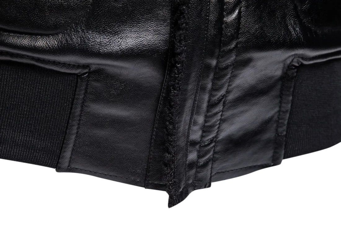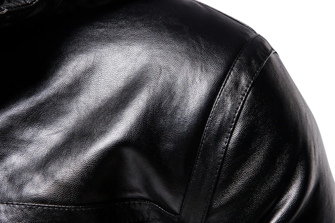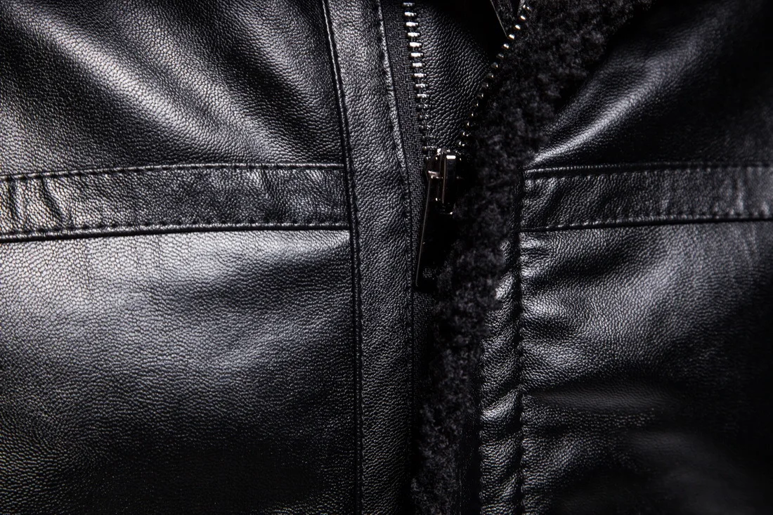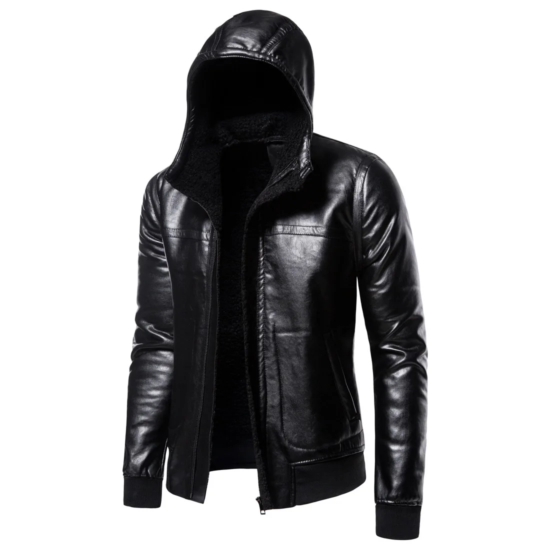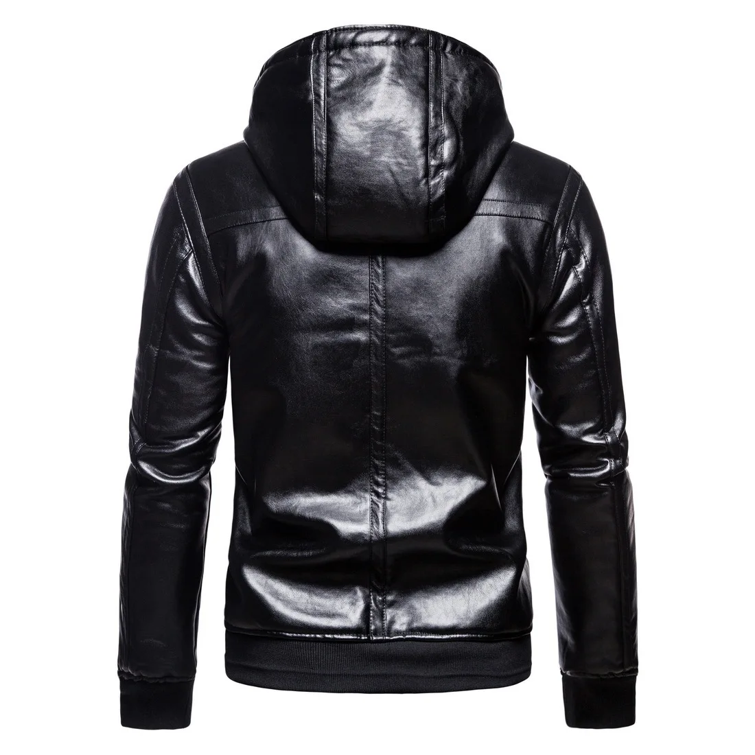 Men's Casual Hooded Slim Fur Coat Men's Slim Solid Color Leather Jacket Men Winter Zipper Patchwork Faux Leather Coats