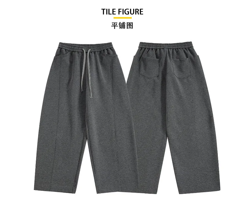 Men's Casual Pants New American Style Solid Color Sweatpants Straight Wide Leg Elastic Waist Trendy Male Trousers 9W1767