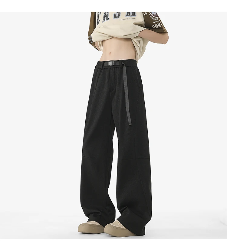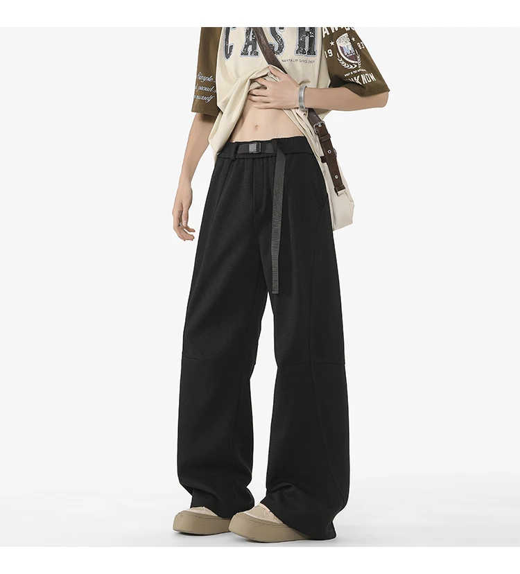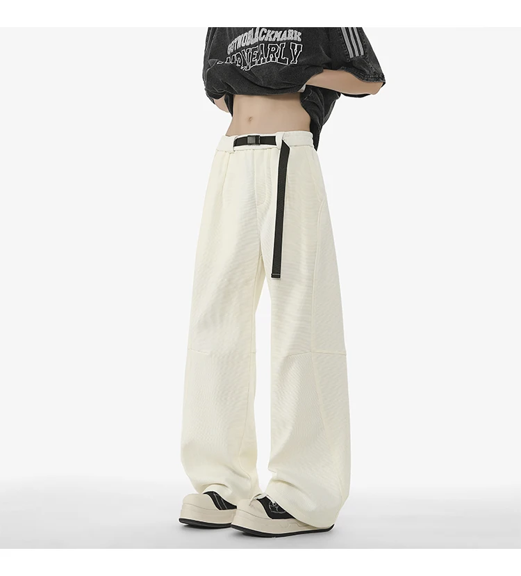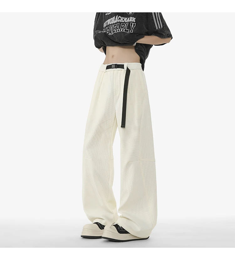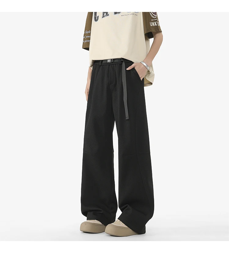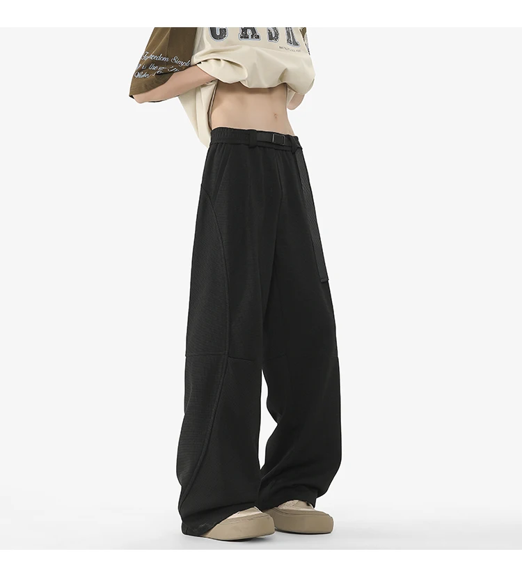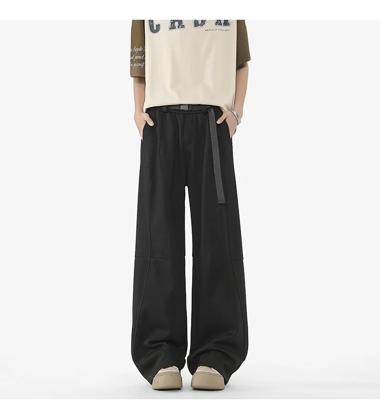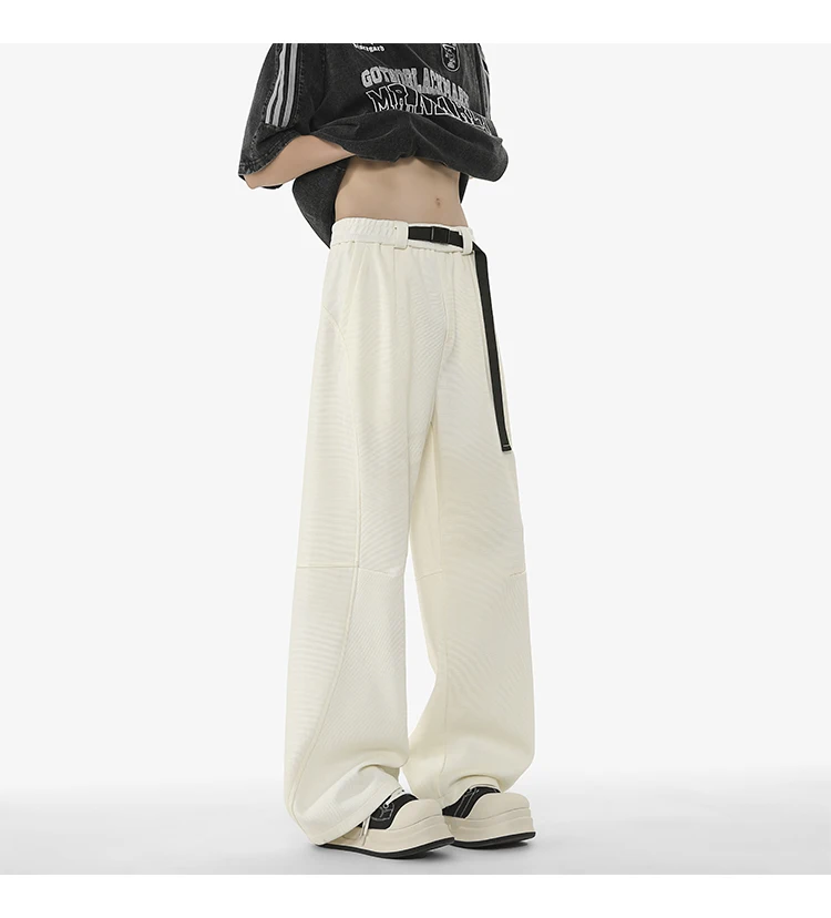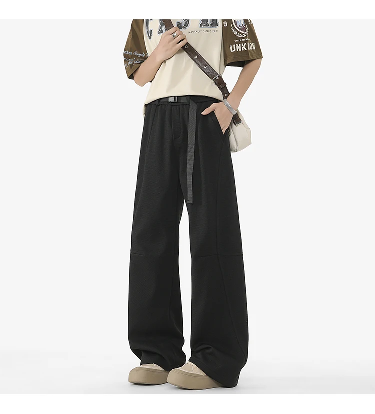 Men's Casual Pants New Summer Fashion Trend Elastic Waist Belt Splicing Full Length Male Trousers Spring 2025 9W1390