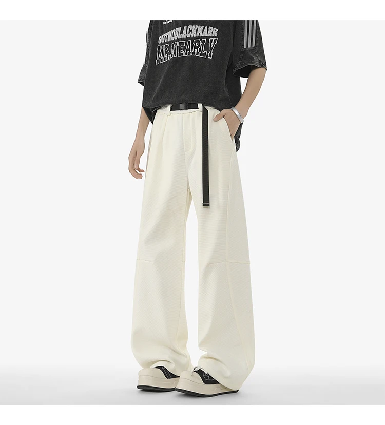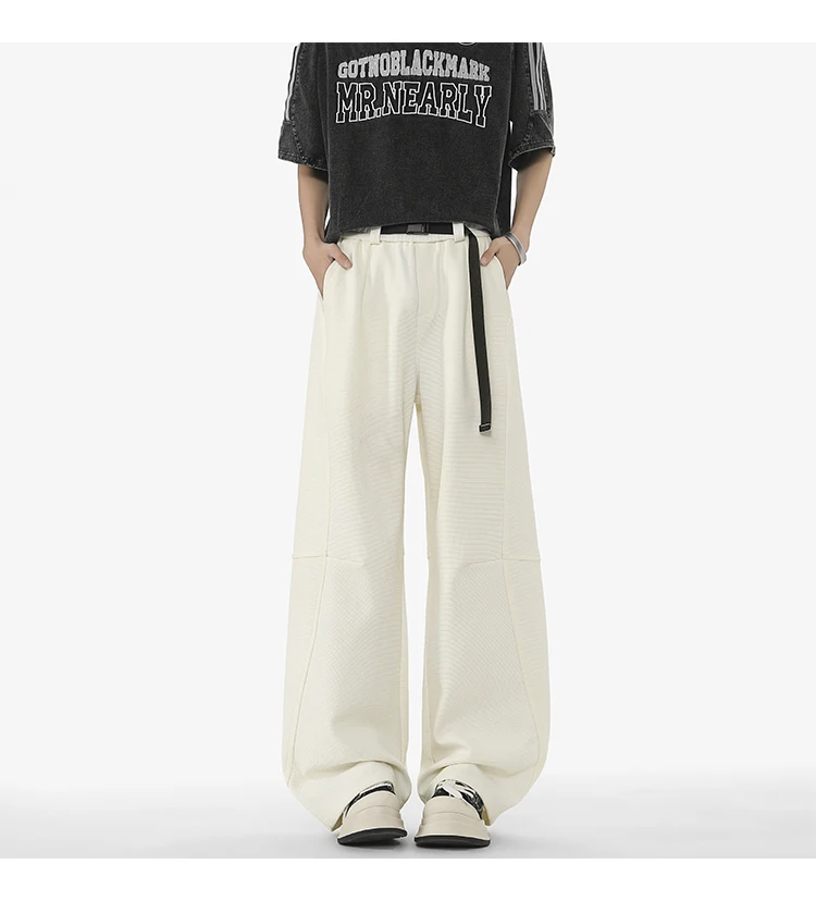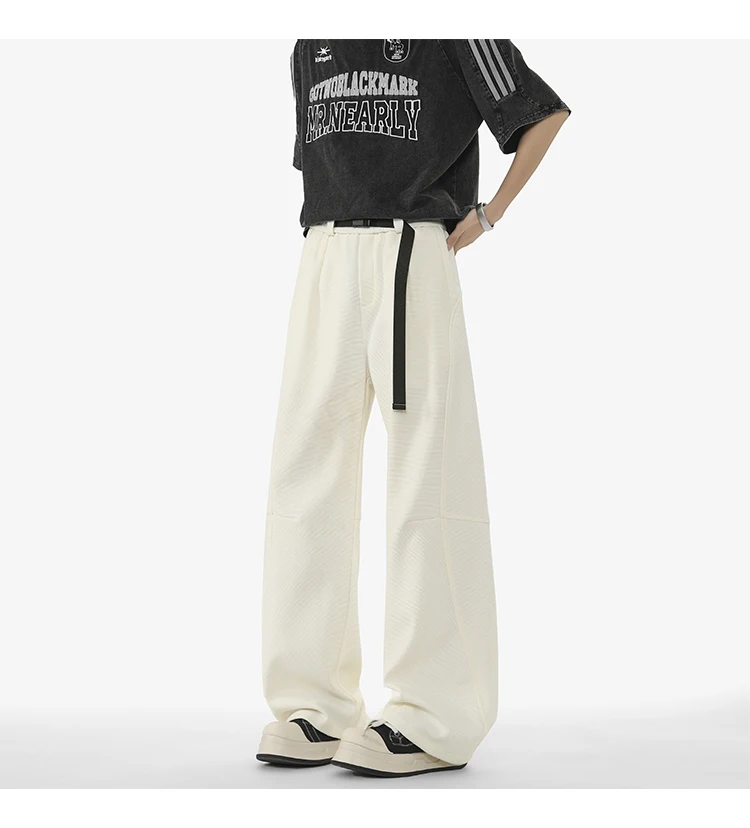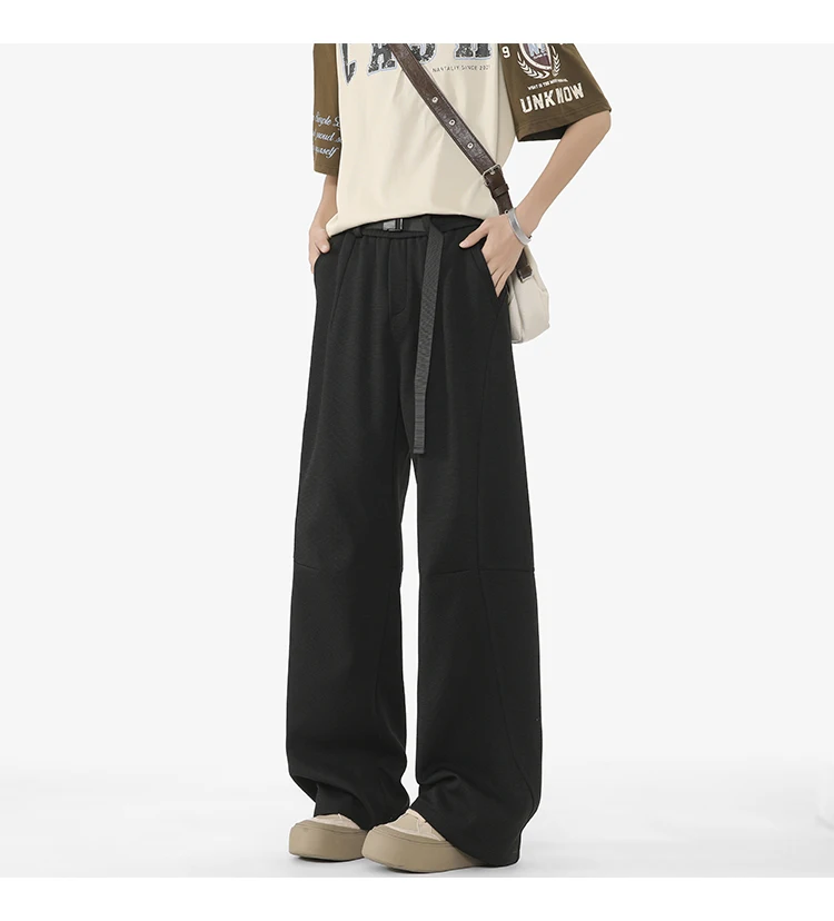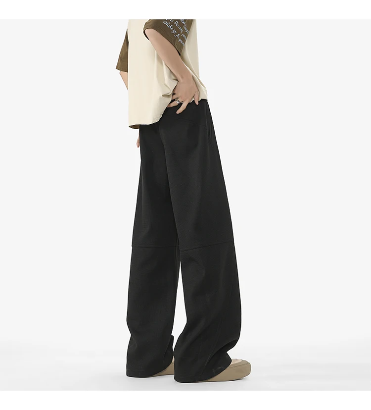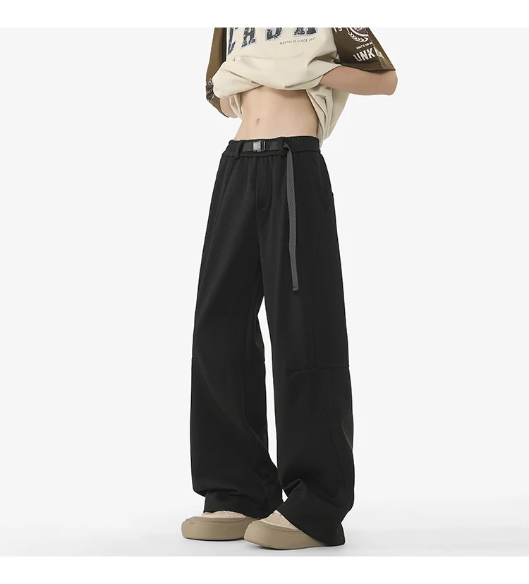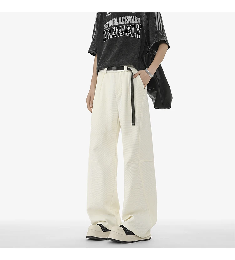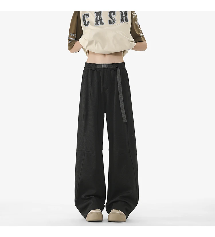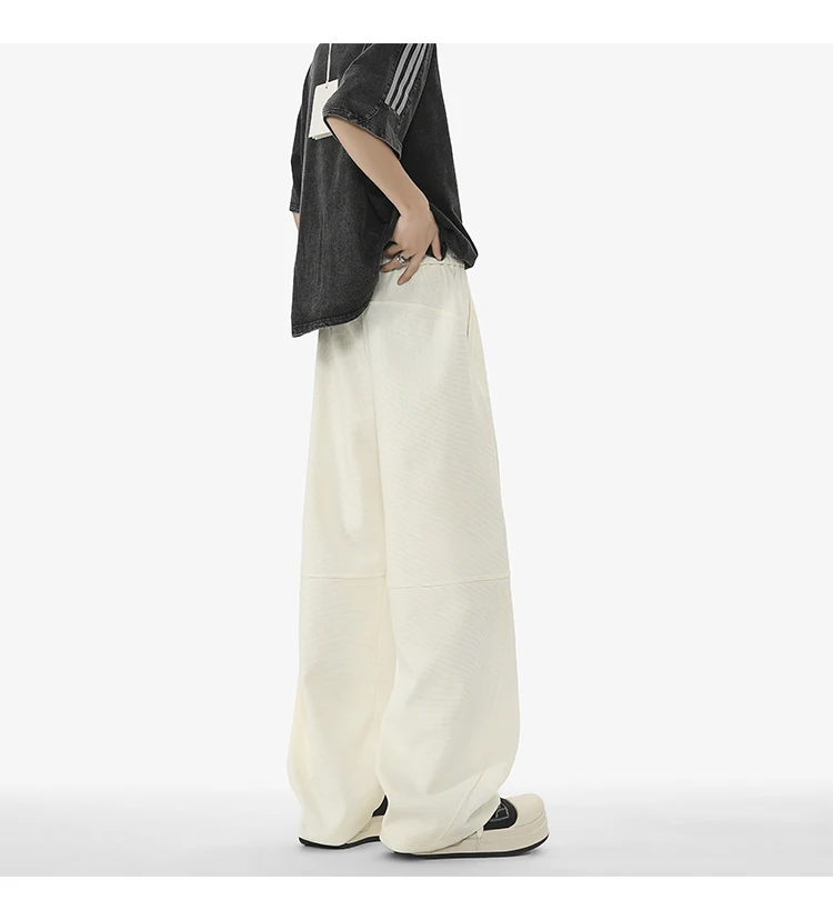 Men's Casual Pants New Summer Fashion Trend Elastic Waist Belt Splicing Full Length Male Trousers Spring 2025 9W1390