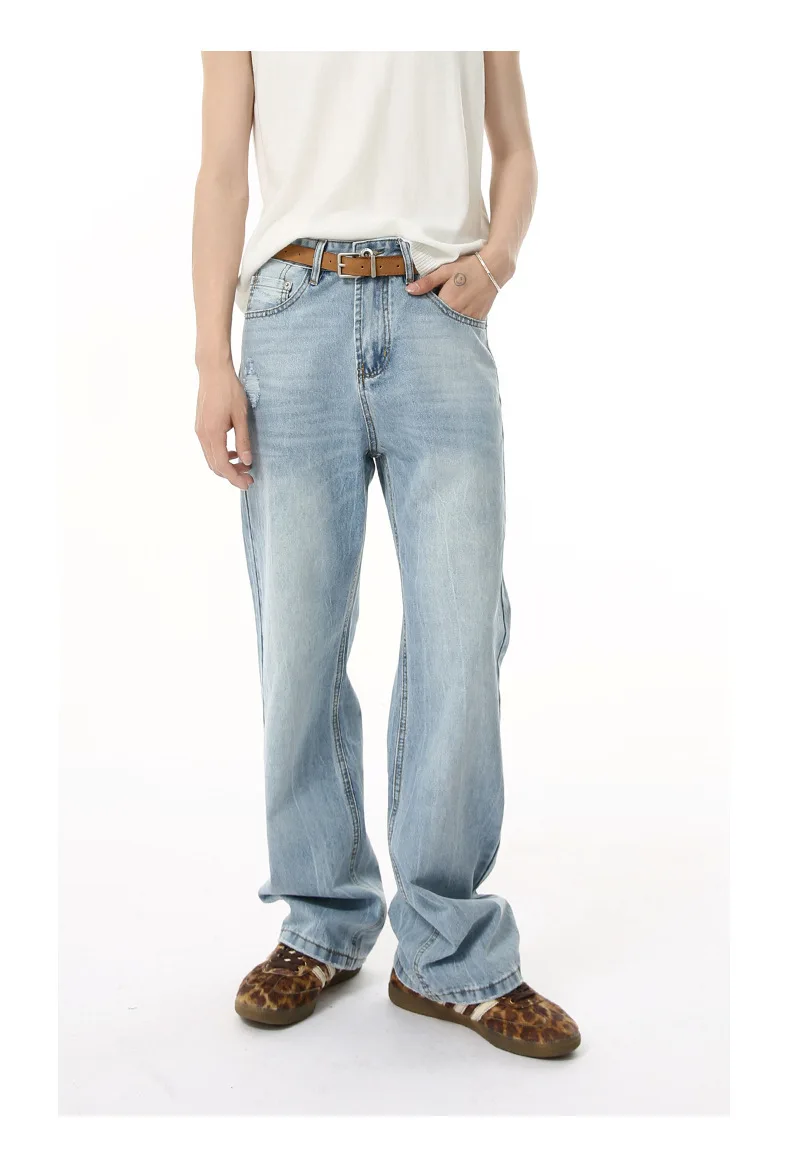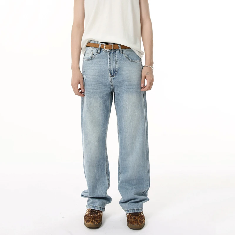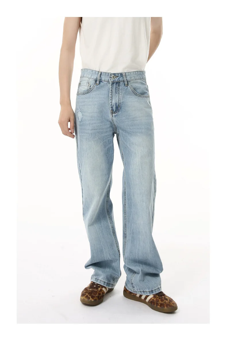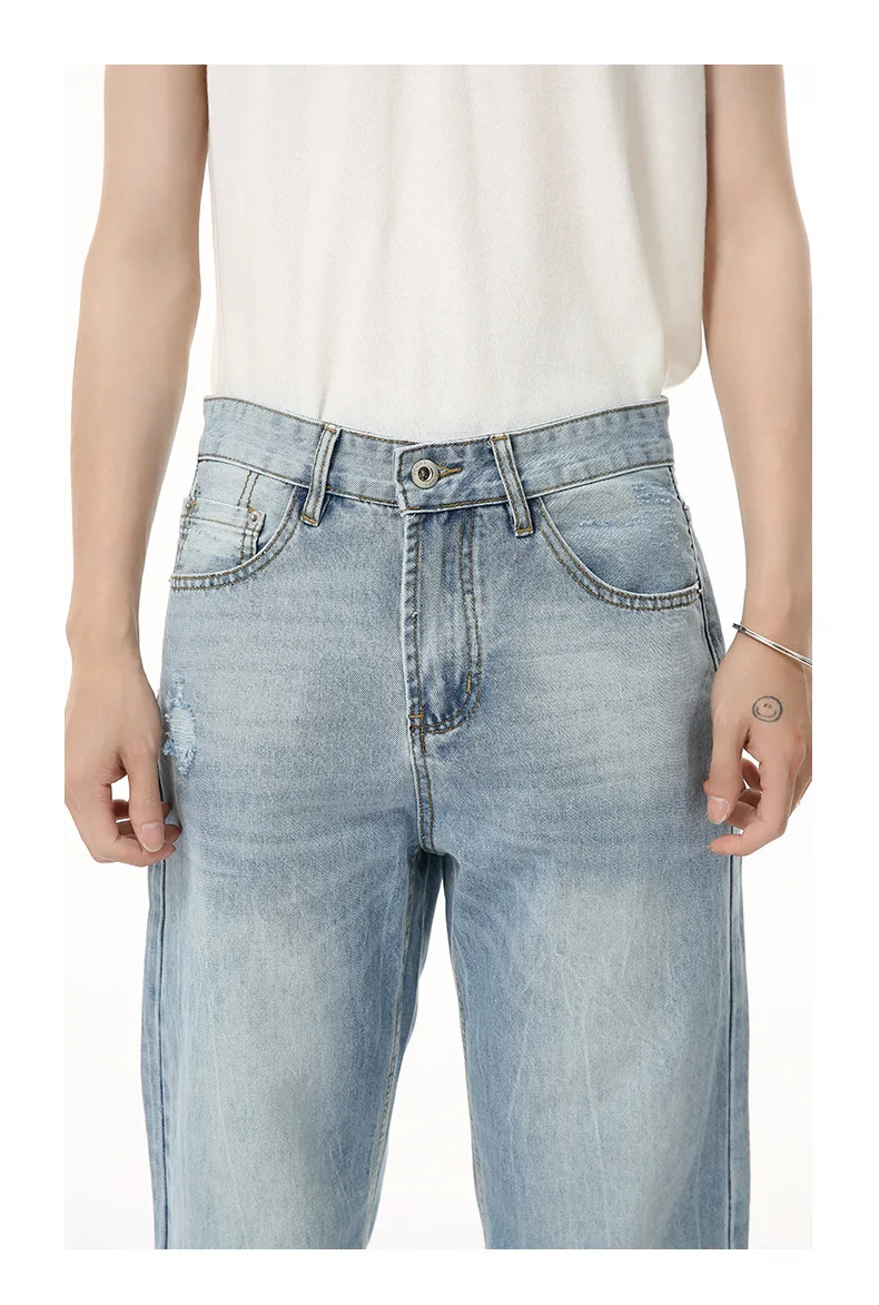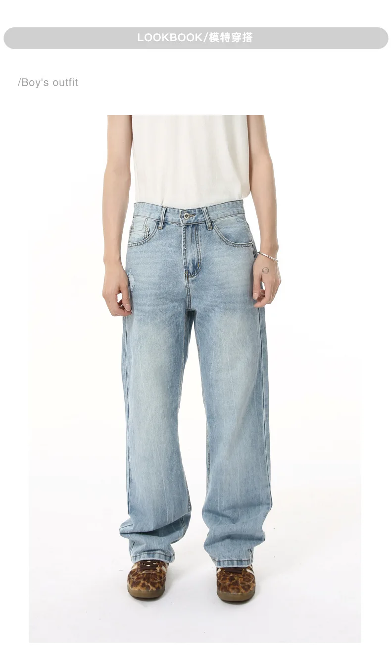 Men's Denim Pants New American Style Hole Design Casual Straight Wide Leg Gradient Color Trendy Male Loose Jeans 9W1840