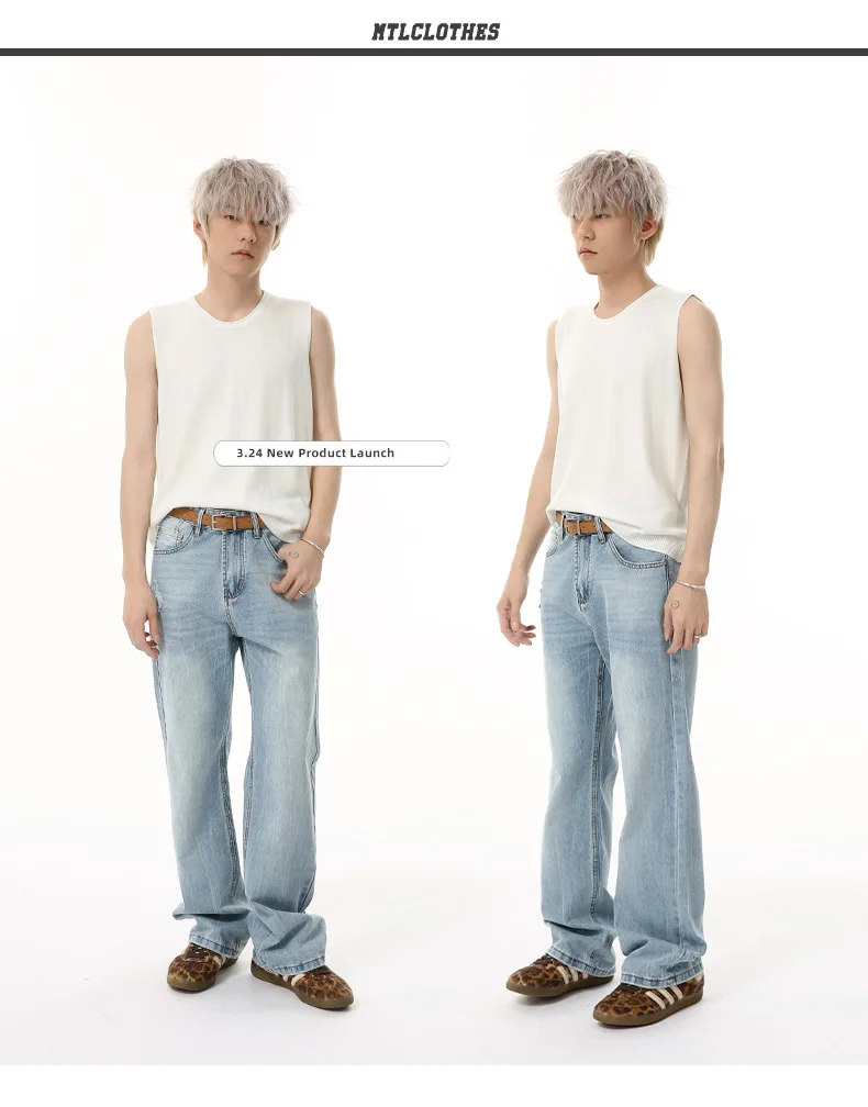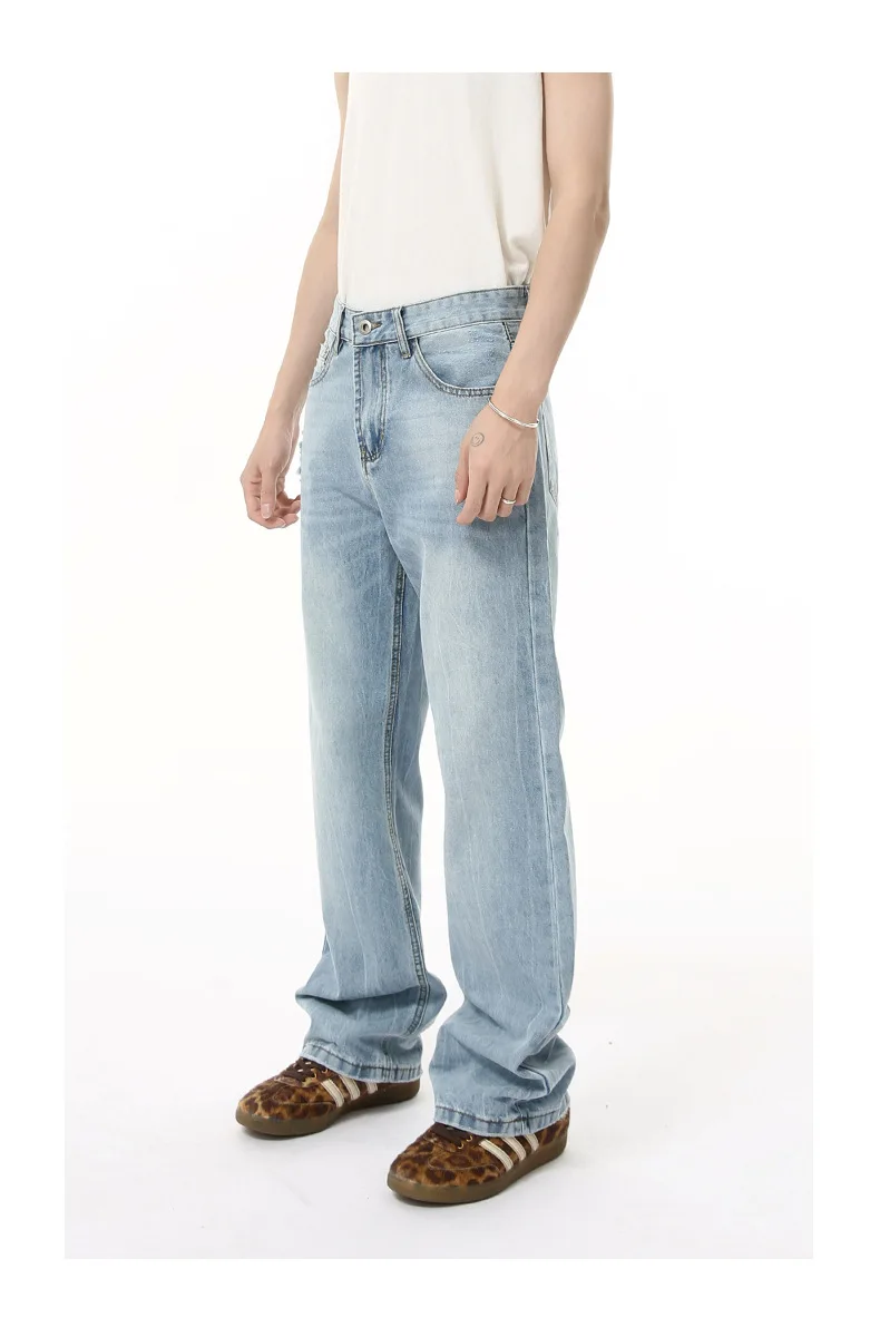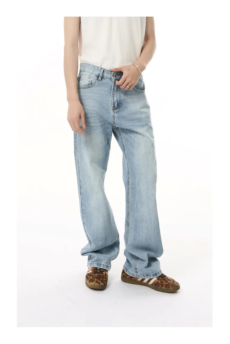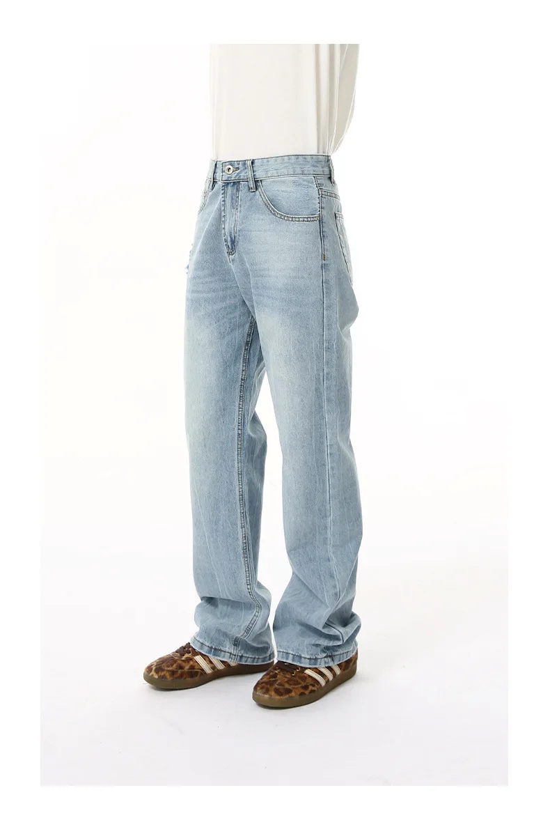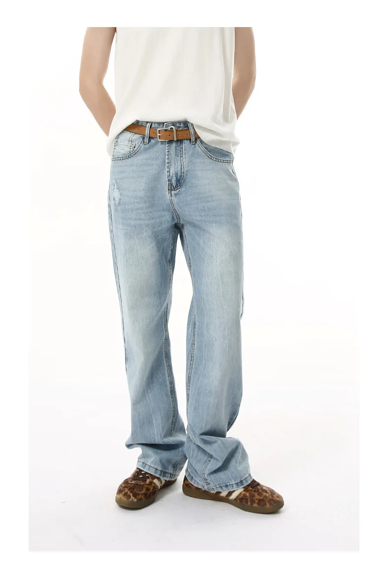 Men's Denim Pants New American Style Hole Design Casual Straight Wide Leg Gradient Color Trendy Male Loose Jeans 9W1840