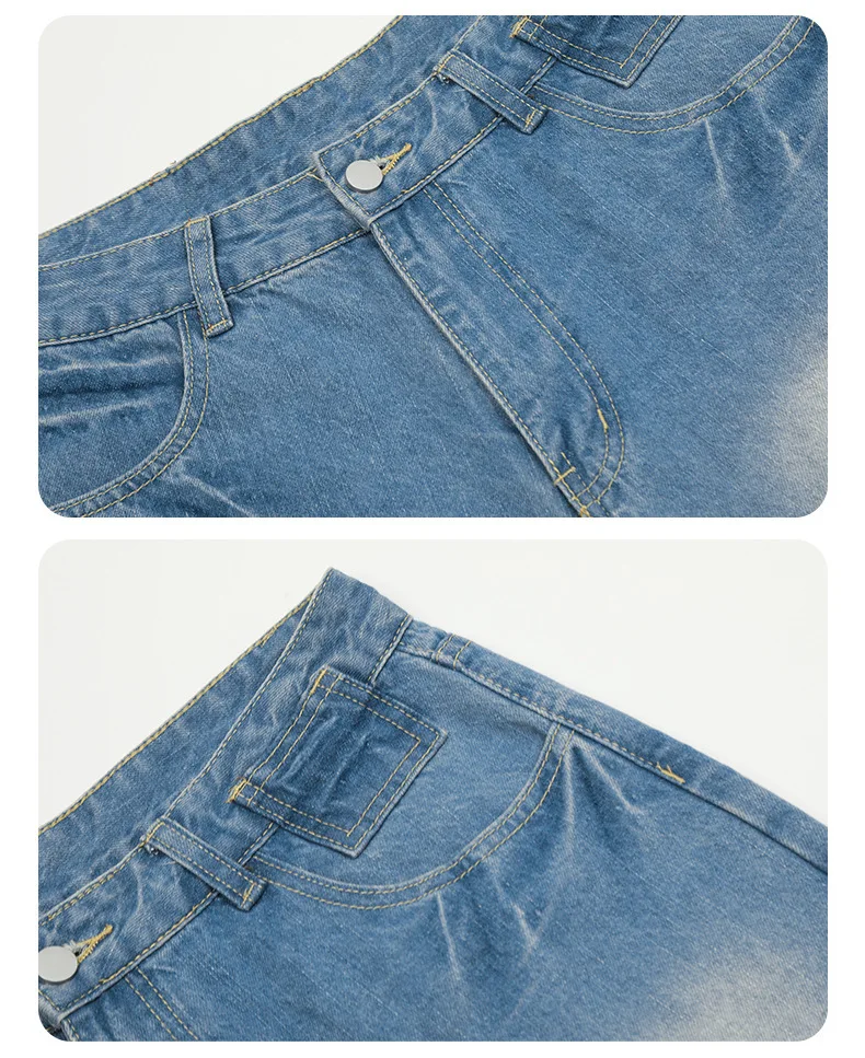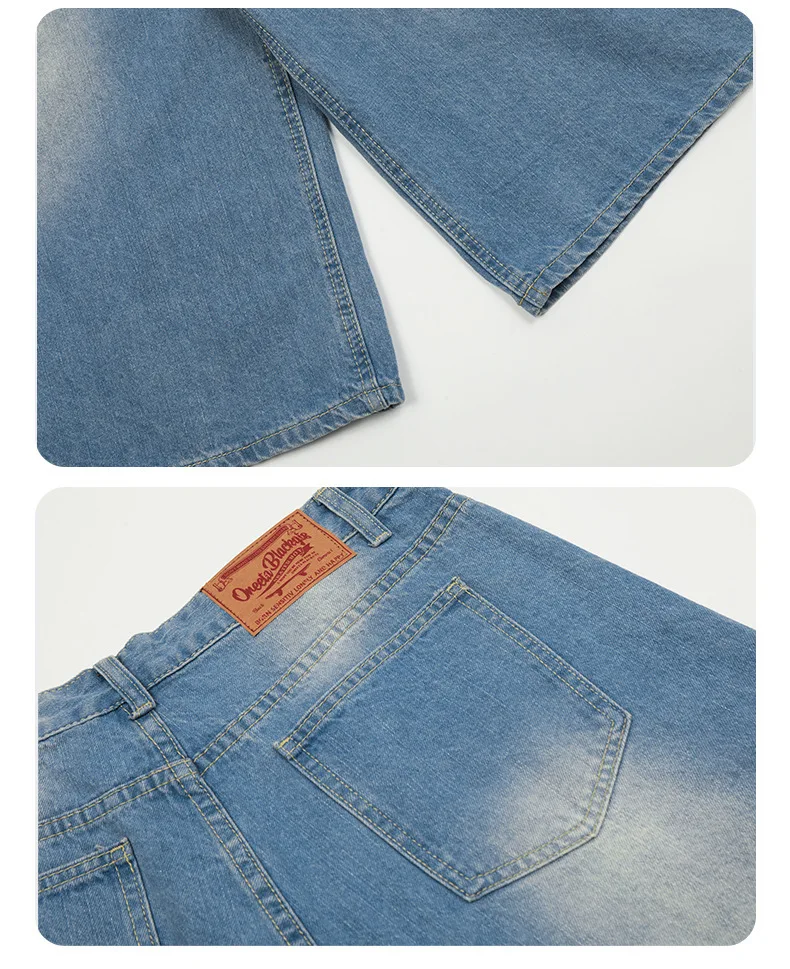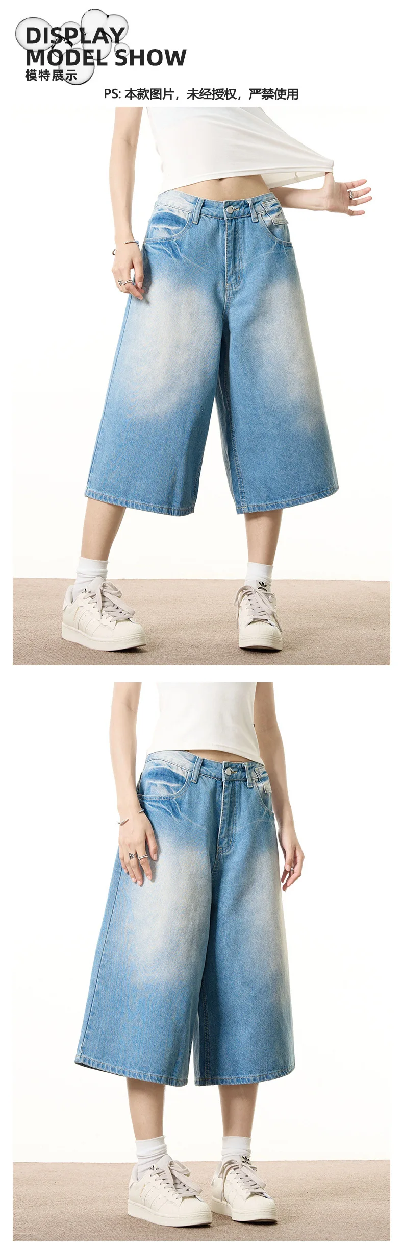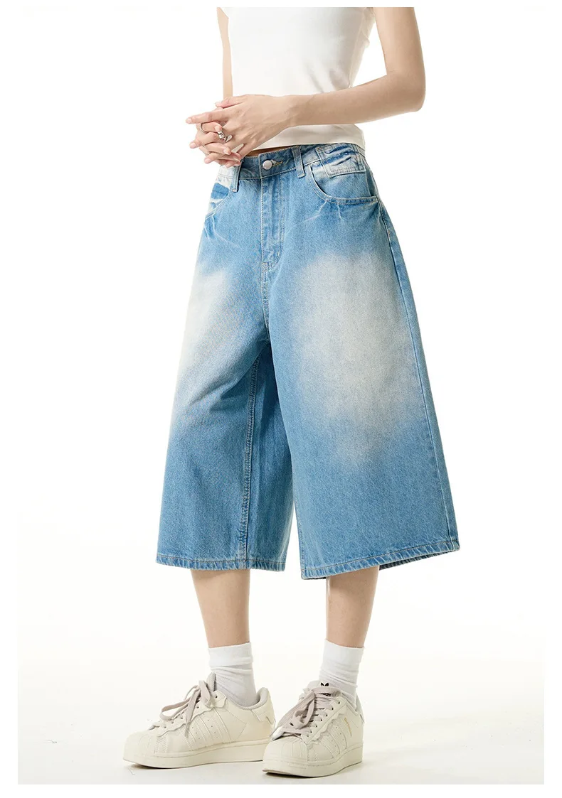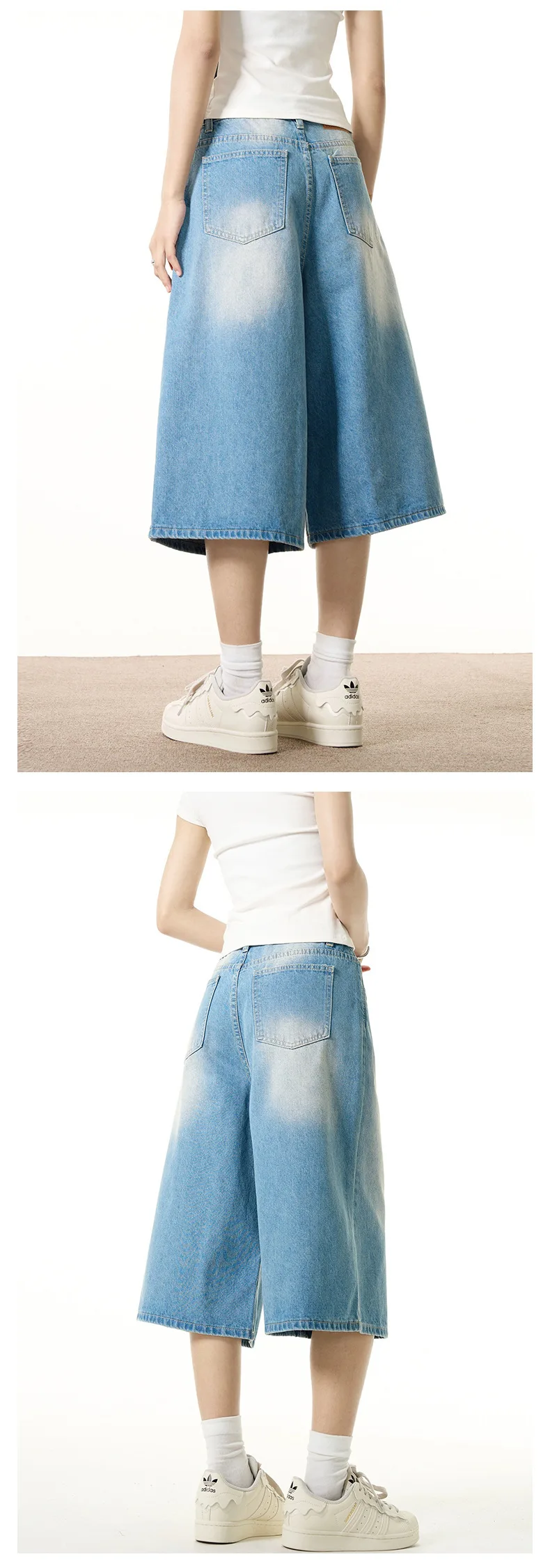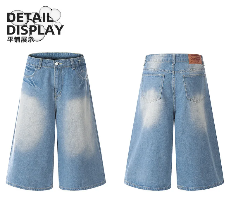 Men's Denim Shorts Cropped Jeans Solid Color New Summer Fashion Trendy Wide Leg Loose Male Clothing Men Clothing 9W1346