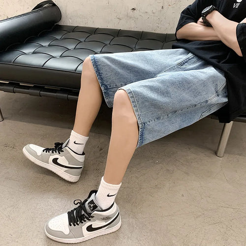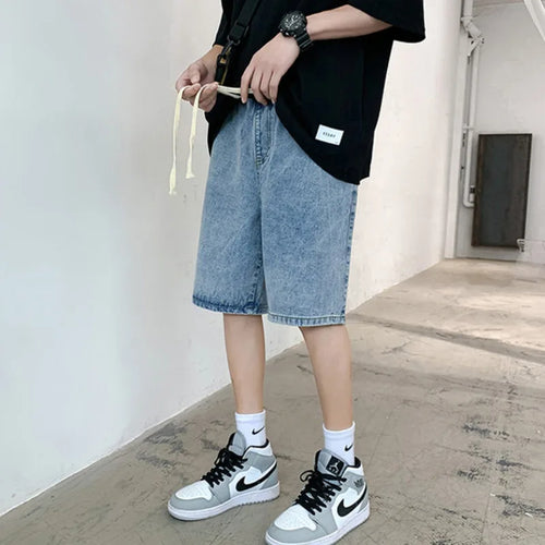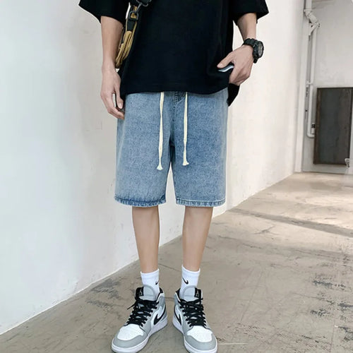 Men's Denim Shorts Solid Color New Summer Loose Straight Short New Fashion Trendy Short Pants Elastic Waist 2025 9W1323