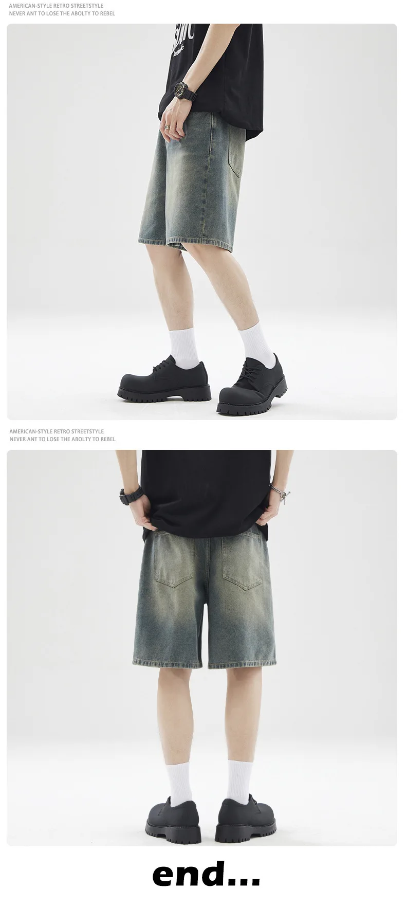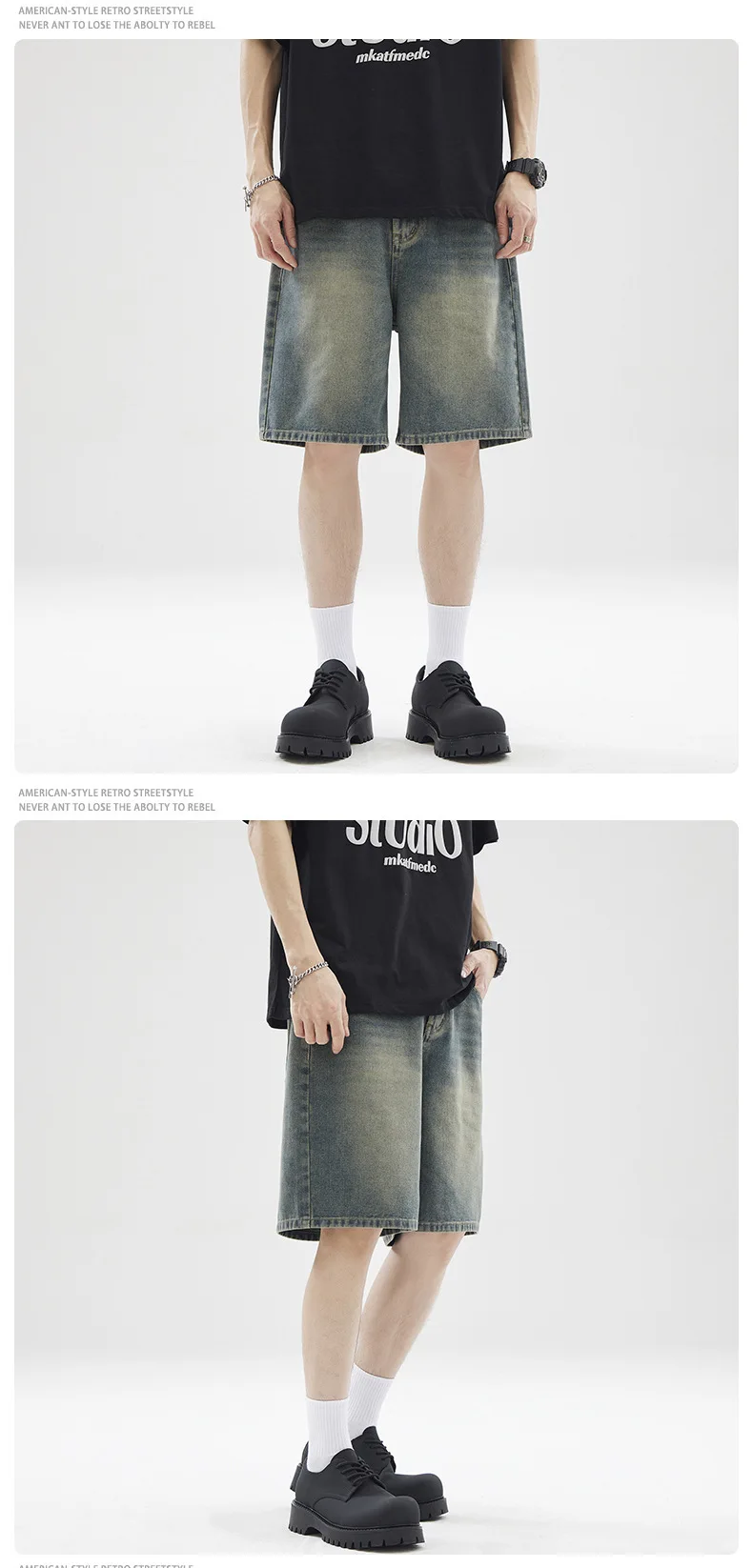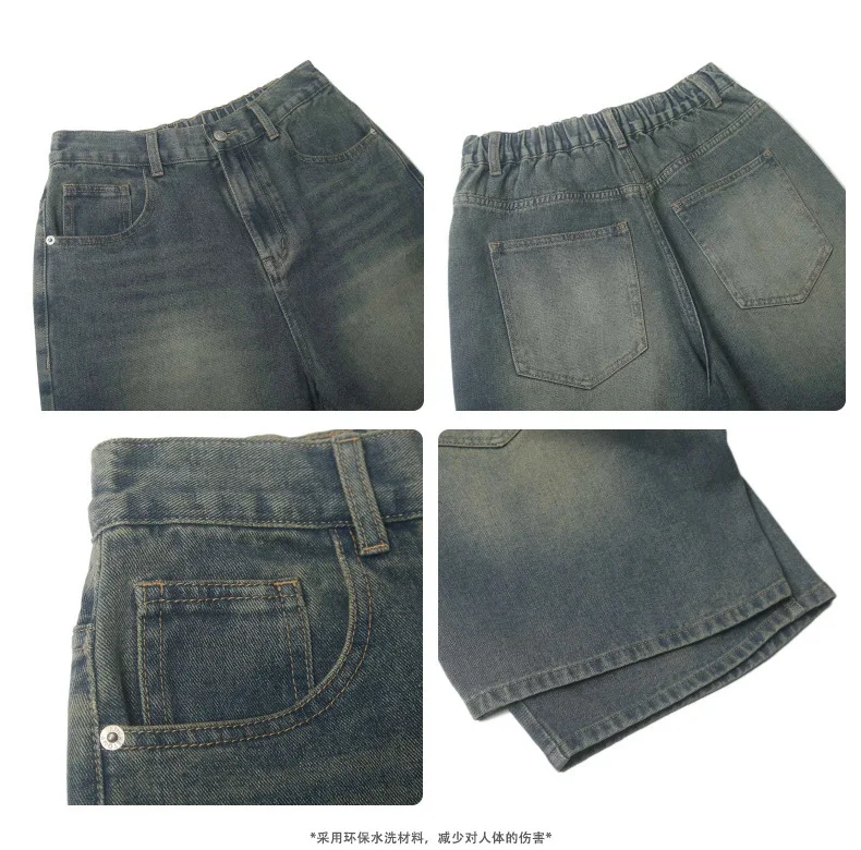 Men's Denim Shorts Solid Color Summer American Fanshion Style Cleanfit Five Quarter Jeans Male Loose Clothing 2025 9W1354