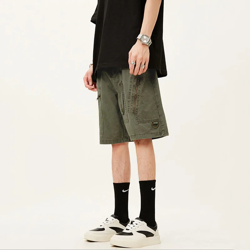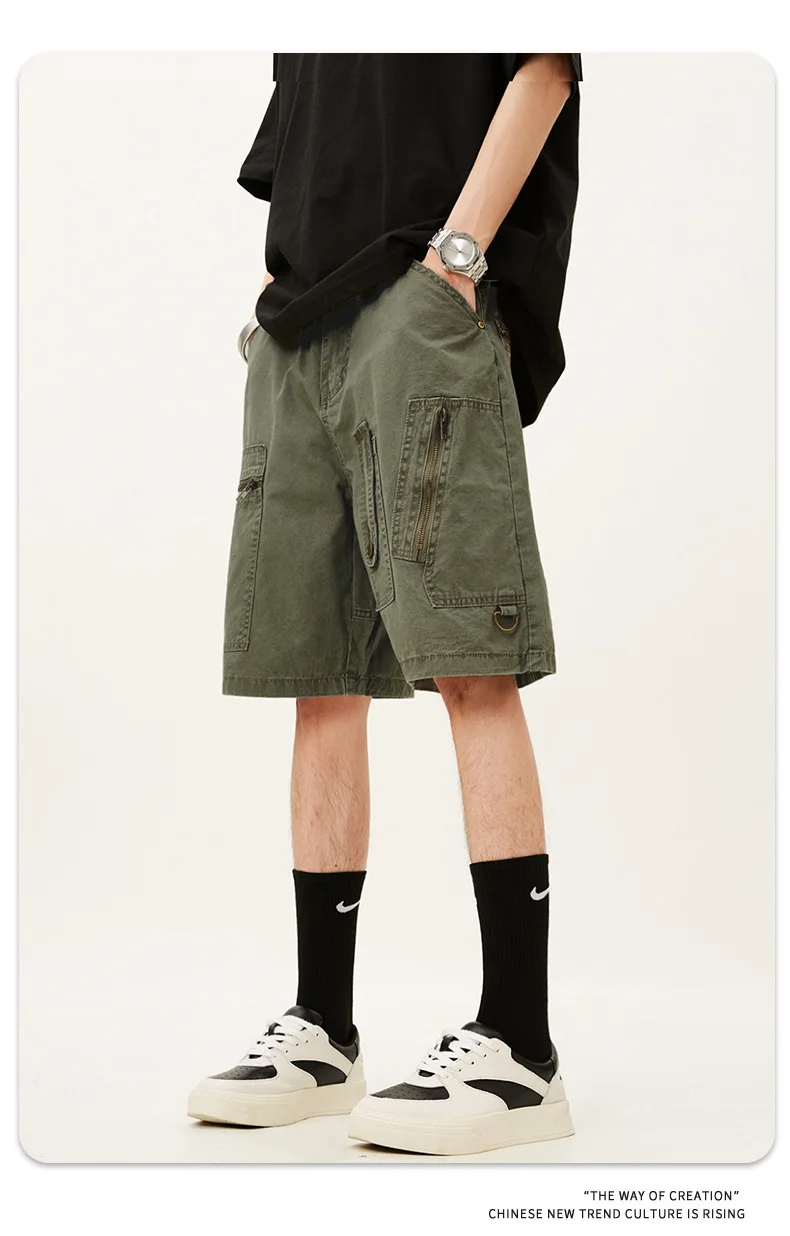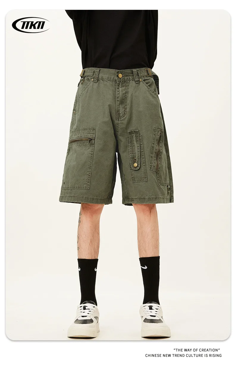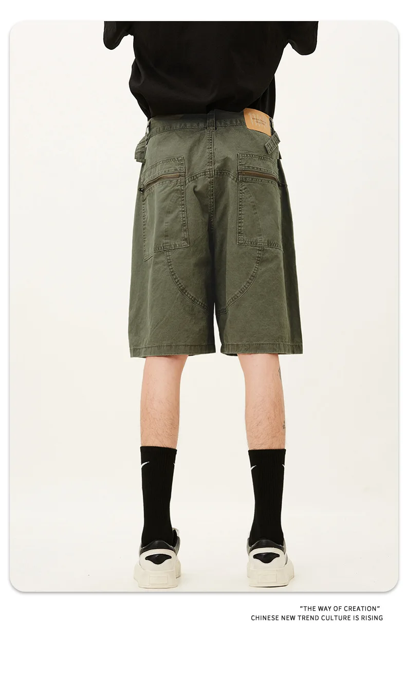 Men's Denim Shorts Summer Multi Pockets Zippers Design Straight Leg Trendy Casual Handsome Male Loose Pants 9W1713