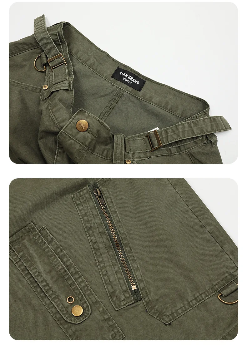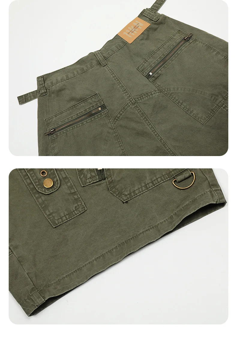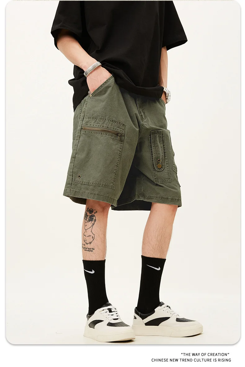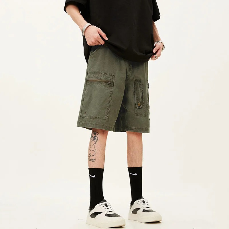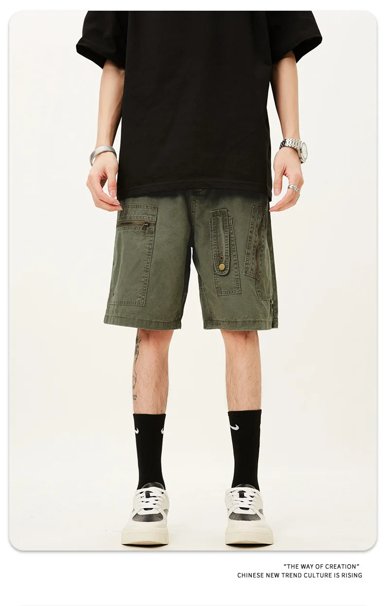 Men's Denim Shorts Summer Multi Pockets Zippers Design Straight Leg Trendy Casual Handsome Male Loose Pants 9W1713