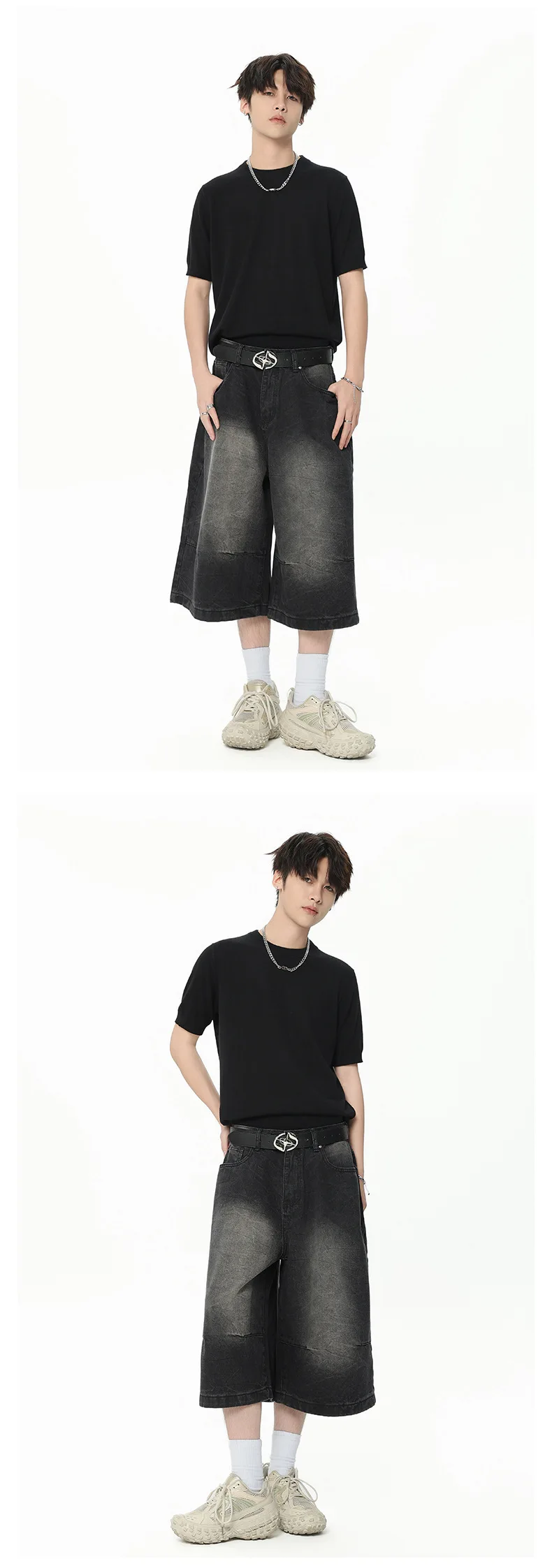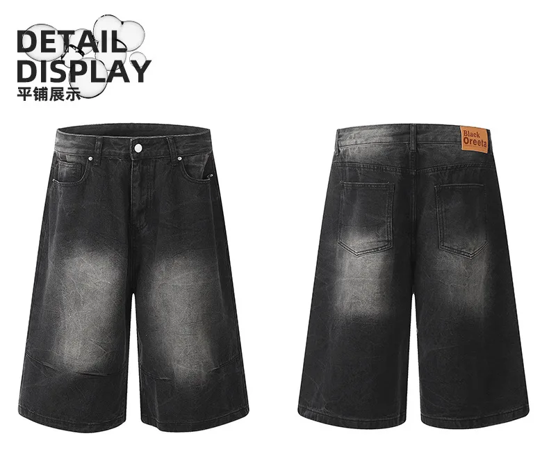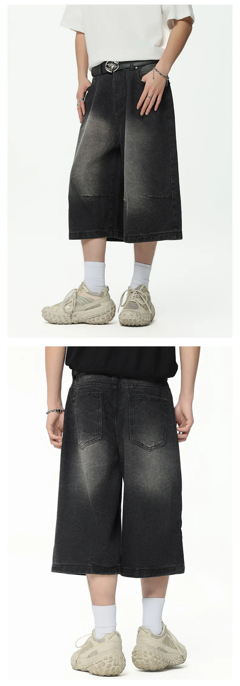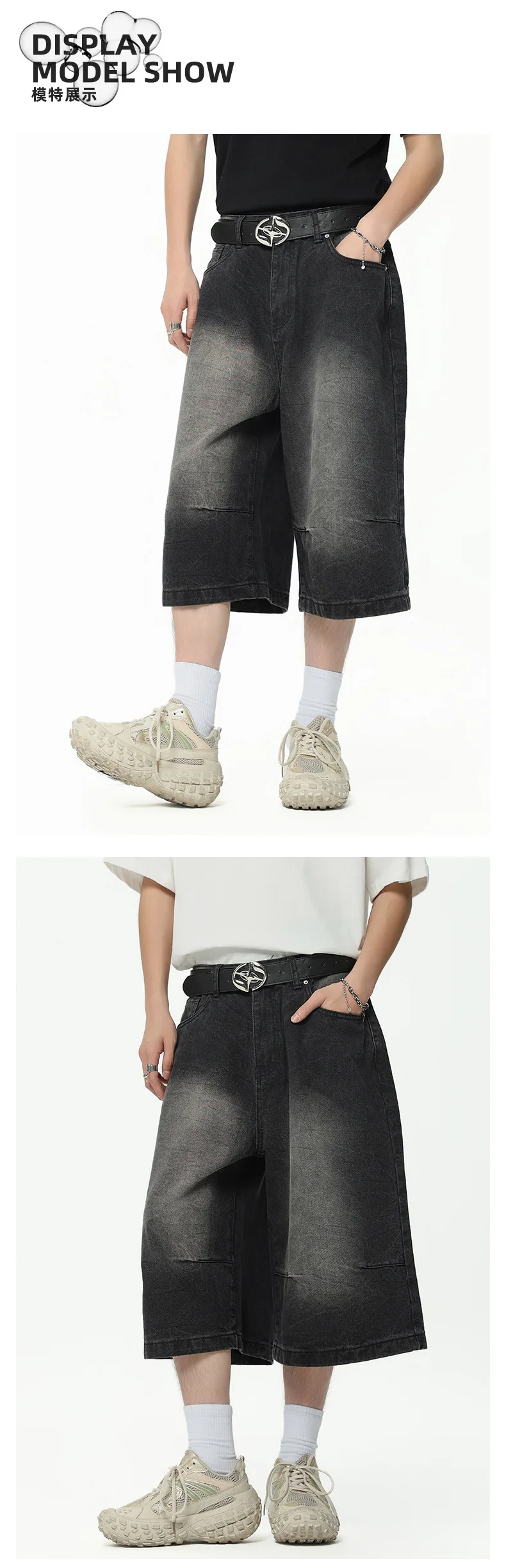 Men's Denim Shorts Washed American Style Gradient Color Multi Pockets Trendy Fashion Loose Male Clothing 2025 9W1725