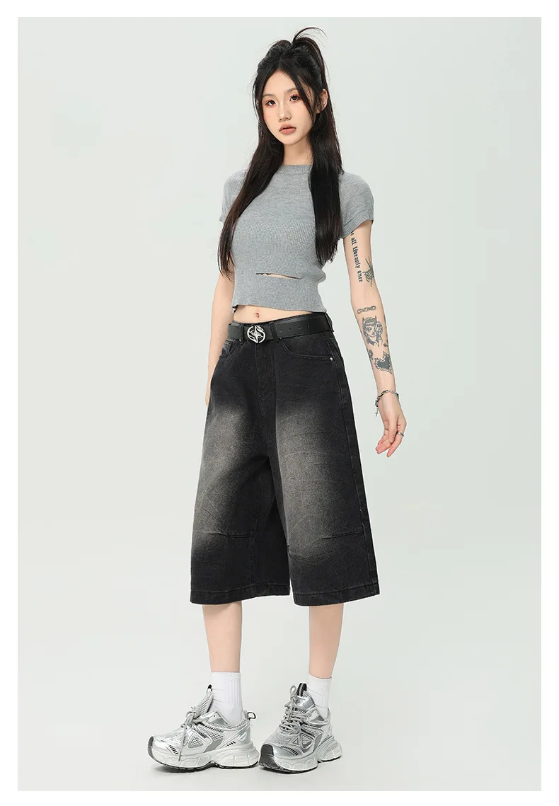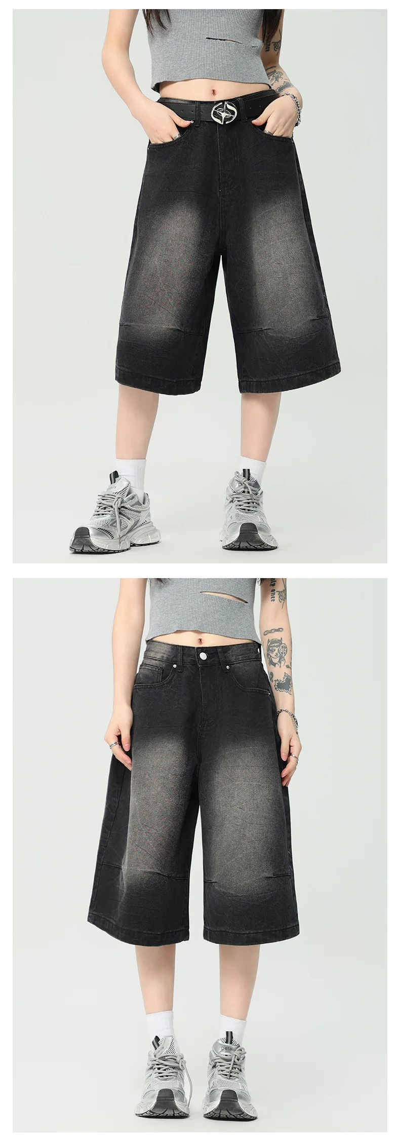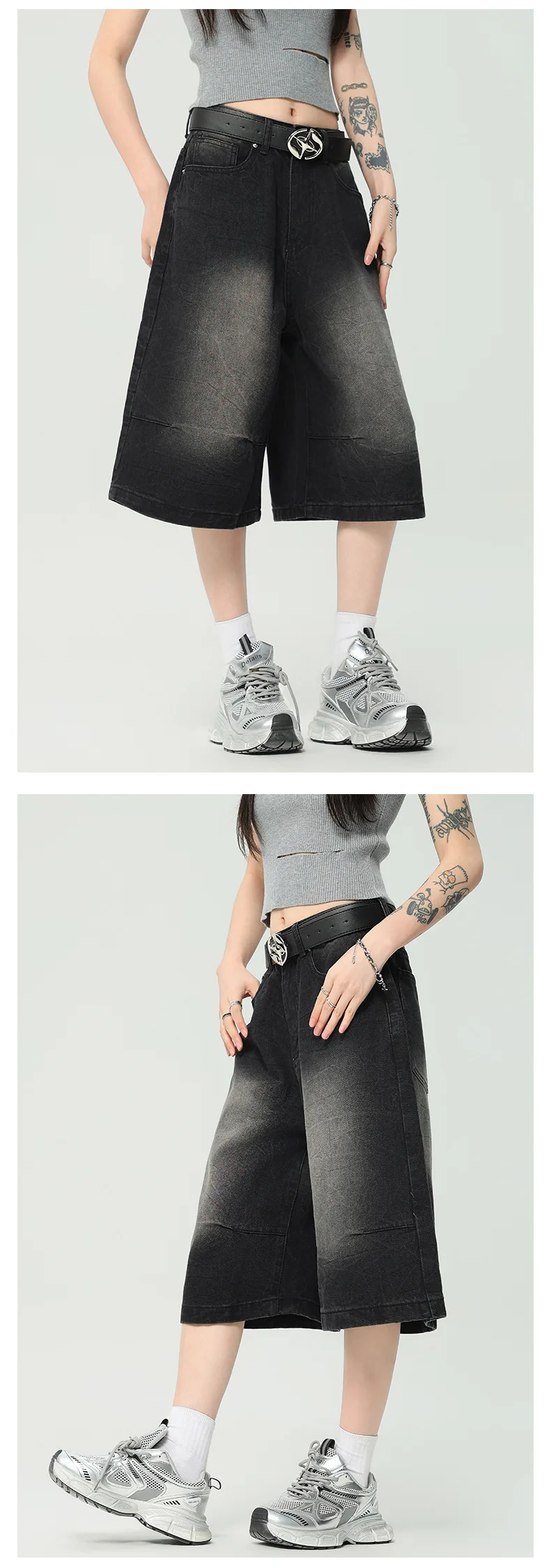 Men's Denim Shorts Washed American Style Gradient Color Multi Pockets Trendy Fashion Loose Male Clothing 2025 9W1725