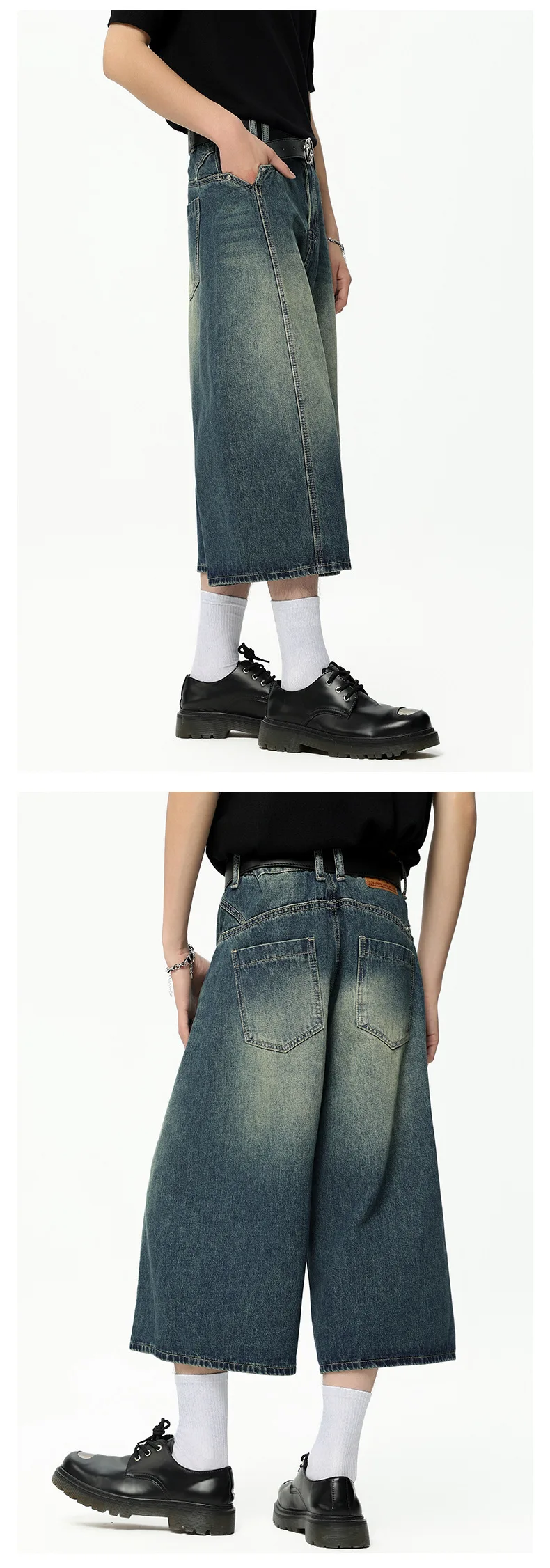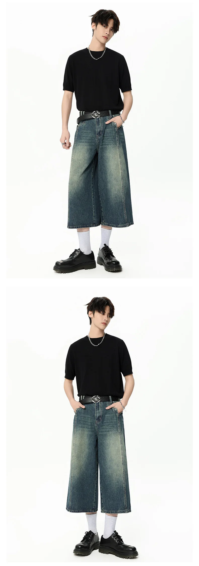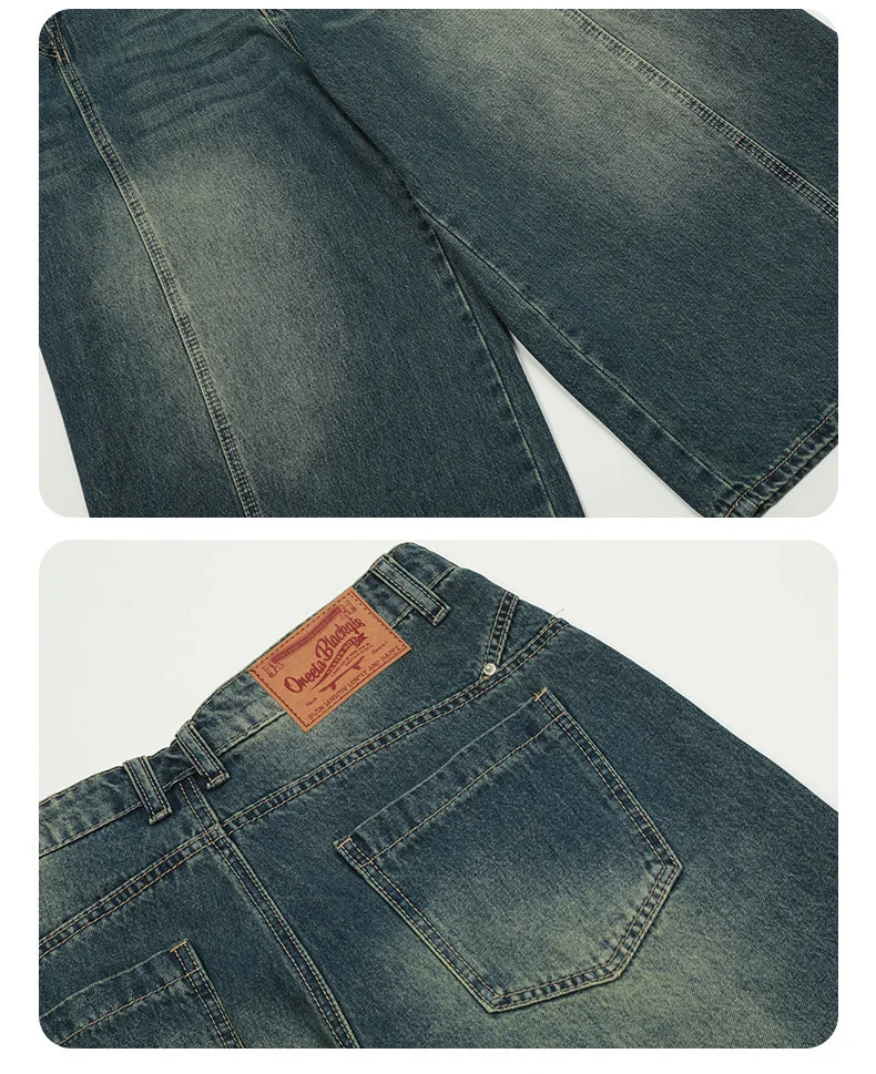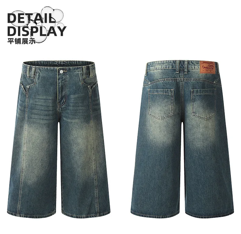 Men's High Street New American Style Casual Washed Cropped Male Denim Shorts Straight Leg Gradient Color Summer 9W1724